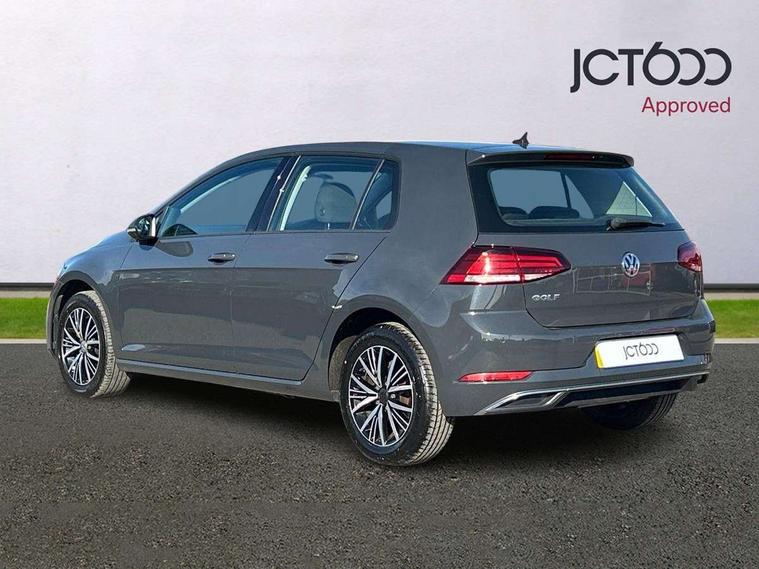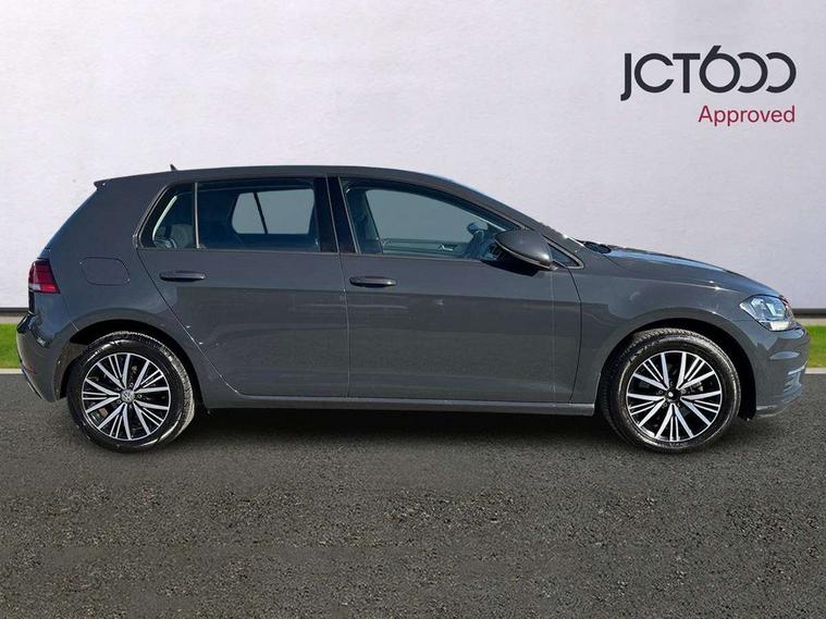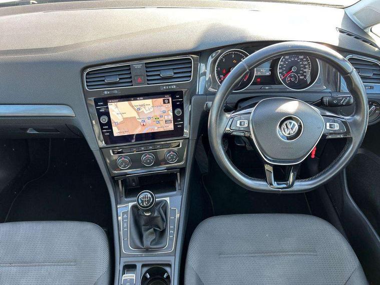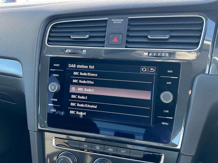 'Lights On' Reminder warning buzzer, 8" colour touch screen, ACC - Adaptive cruise control with front assist, forward collision warning, distance monitoring, city emergency brake and speed limiter, App-Connect, Bluetooth telephone and audio connection for compatible devices, Brake pad wear indicator warning light, Drive mode selector, Driver alert system, Driver profile selection, Front assist, radar sensor controlled distance monitor, city emergency braking + predictive pedestrian protection, Front assistant collision mitigation, Instrument cluster in white, Misfuelling protection device, Multifunction computer with visual gear change recommendation for fuel consumption, Power assisted speed sensitive electro-mechanical steering, Speedo, rev counter, electronic odometer, trip, service interval display, exterior temperature and fuel gauge, Stop/start system, Ultrasonic front and rear optical and audible parking sensors, Warning buzzer and light for front seatbelts unfastened, Battery regeneration during braking, Diesel particulate filter, XDS electronic differential lock, 8 Speakers, CD/MP3/WMA, USB and SD card reader, aux-in, Composition media system, DAB Digital radio receiver, SMS Functionality, Automatic coming/leaving home lighting function, Automatic dimming rear view mirror/rain sensor, Black front air intake and radiator grille with chrome insert, Black rear diffuser, Body colour bumpers, Body colour door handles, Body colour door mirrors with integrated indicators, Electric front windows, Electric rear windows, Electrically adjustable and heated door mirrors, Glavanised body, Heated rear windscreen, High level 3rd brake light incorporating LED Technology, Range adjustable headlights via infotainment system with LED daytime running lights, Rear number plate lights incorporating LED technology, Rear window aerial, Rear window wash/wipe with intermittent wipe, Reflectors in all doors, Remote electrically foldable door mirrors, door mirror puddle lights and reverse activated kerb-view adjustment on passengers door mirror, Tailgate with integrated rear roof spoiler, Windscreen wipers/ intermittent wipe + 4 position delay, 12V socket in luggage compartment, 3 rear headrests, 4 load lashing points in luggage compartment, 60/40 split folding rear seat backrest, Bag hook in luggage compartment x 2, Cooled glovebox, Dust/pollen filter, Front and rear reading lights incorporating LED technology, Front centre armrest with storage compartment and two rear air vents, Front seat back storage pockets, Grab handles front x 2, rear x 2 with integrated coat hooks, Height and reach adjustable steering wheel, Illuminated vanity mirrors, Instrument lighting white adjustable panel illumination, Interior light delay, Isofix preparation for 2 rear child seats, Load through provision with rear centre armrest and cupholders x2, Luggage compartment light, Multifunction leather steering wheel with leather trimmed gear knob, Overhead storage box, Pearl grey headlining, Storage box in luggage compartment, Storage compartment in roof console with cover, Storage compartments in front doors, Storage compartments in rear doors, Stowable luggage compartment cover, Sun visors, Three spoke multi-function leather trimmed steering wheel and gearknob, Variable boot floor, height adjustable and removable, Mirror pack - Golf, 3 rear three point seatbelts, Airbags - Driver's and front passenger's, curtain airbag, Driver's knee, front side impact and passenger's airbag deactivation switch, Anti-lock Braking System (ABS) with Hydraulic Brake Assist (HBA), Automatic post collision braking system, Child locks on rear doors, Driver/Passenger optimised head restraints, Electronic parking brake with auto hold, Electronic stability control (ESC) including Electronic differential lock (EDL) and ASR (Traction control) with deactivation via infotainment system, Pre crash preventive occupant protection, Three point height adjustable front seatbelts with tensioners, Tyre pressure loss indicator, Alarm with interior protection, Electronic engine immobiliser, Remote central locking with 2 remote folding keys, Brushed dark silver decorative inserts in dash and door panels, Chrome plated air vent surround, Chrome-plated light switch surround, Polar night black centre console, Steel space saver spare wheel,