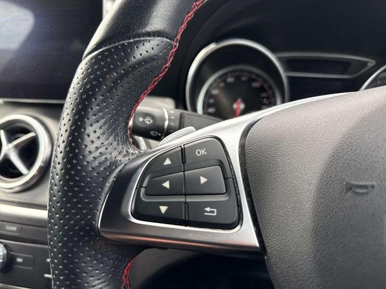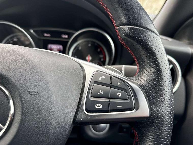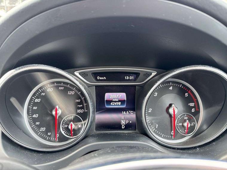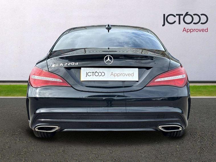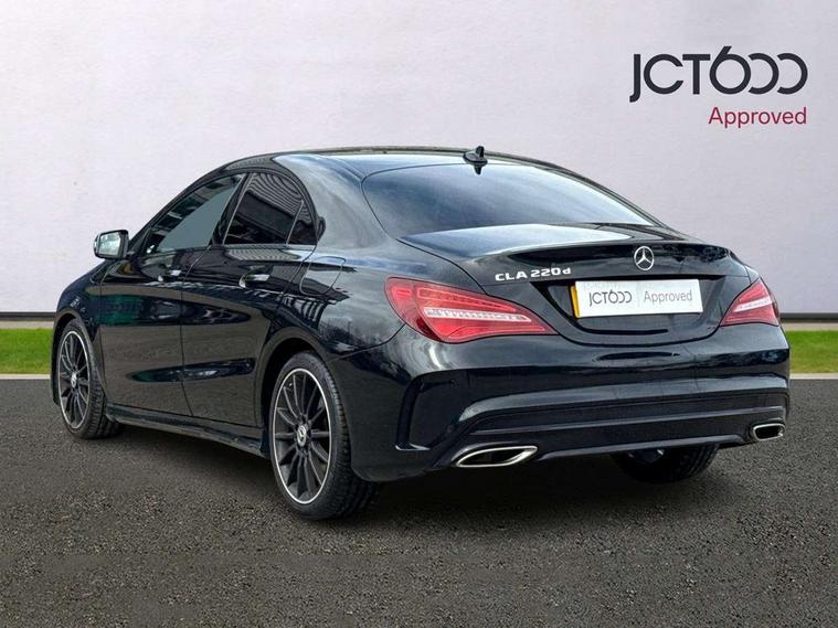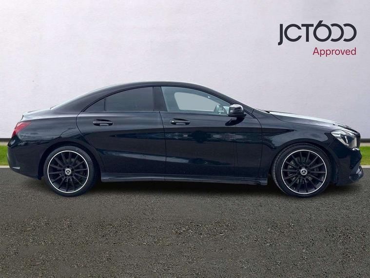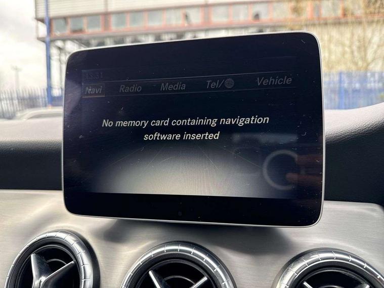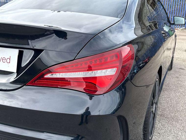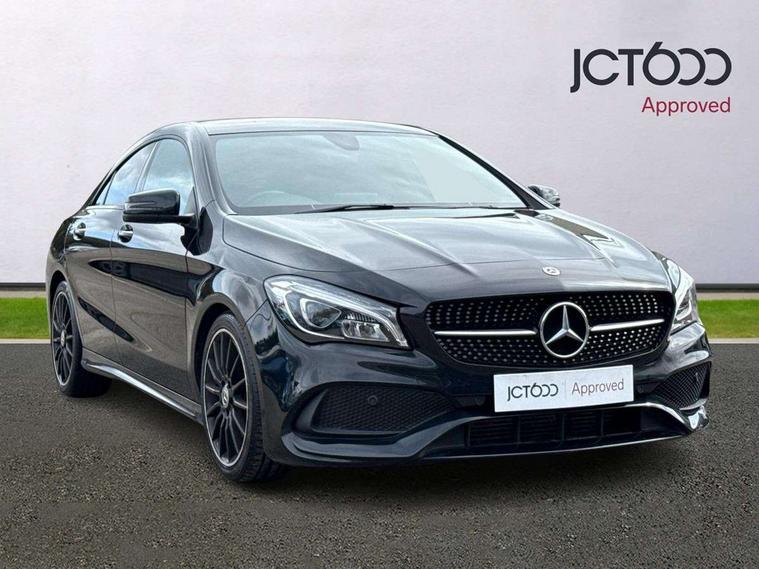 8" colour display screen, Attention assist, Bluetooth system, Direct steering, Door/boot open warning light, DYNAMIC SELECT with a choice of driving modes (ECO, Comfort, Sport, Sport+ and Individual), ECO start/stop function, Lamp failure indicator, Low fluid warning light, Outside temperature gauge, Reversing camera, Service indicator (ASSYST), Trip computer, Diesel particulate filter, Lowered comfort suspension, Media interface, Mercedes Audio 20 radio/single CD, USB connection, Adaptive brake lights, AMG body styling, Auto dimming driver's door mirror, Auto dimming rear view mirror, Automatic headlights, Automatic rain sensing wipers, Black high gloss beltline, Body colour bumpers, Body colour door handles, Body colour side skirt, Diamond grille with pins in chrome and single louvre in high-gloss black with chrome inserts, Electric adjustable heated door mirrors, Electric folding door mirrors, Front and rear electric windows, Heated rear window with timer, High gloss black door mirror housing, LED headlights with LED daytime running lights, LED Indicators, LED tail lamp, LED third brake light, Privacy glass, Rear fog lights, 1/3 to 2/3 split folding rear seats, 3 spoke flat bottom multi-function sports leather steering wheel in black with topstitching in red, Auto Mercedes-Benz child seat recognition sensor, Brushed stainless steel sports pedals with rubber studs, Centre console with cupholders, Courtesy light in boot, Door sill illumination, Front centre armrest with storage box, Front door courtesy lamps, Front footwell lights, Front head restraints, Front seat cushion length adjustment, Front sports seats, Height adjustable front seats, Height/reach adjustable steering column, Illuminated glovebox, Illuminated storage compartment, Isofix rear child seat fastenings, Load securing rings in luggage compartment, Reading lights, Rear footwell lights, Rear head restraints, Seat cushion angle adjustment, Sunvisors with illuminated vanity mirrors, Thermotronic luxury automatic two zone climate control, Mirror pack - CLA, 3x3 point rear seatbelts, ABS with Brake Assist, Active bonnet, Adaptive brake system, ASR, Brake pad warning light, Child lock for rear electric windows, Child proof door locks, Crash responsive emergency lighting, Drivers knee airbag, Dual stage driver/passenger airbags, Electronic parking brake, ESP curve dynamic assist, Front and rear seatbelt reminder, Front brake callipers with Mercedes Benz lettering, Front passenger airbag deactivation, Front passenger seat occupancy sensor, Front side airbags, Hill start assist, Tyre pressure monitoring system, Warning triangle and first aid kit, Window airbags, Anti theft alarm system, Chrome surround electric key, Immobiliser, Keyless Go, Remote central locking, Chrome air vent surrounds, 18" AMG 10 spoke alloy wheels, Tirefit,