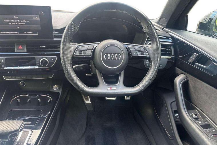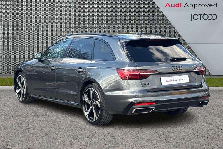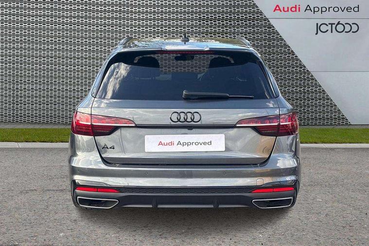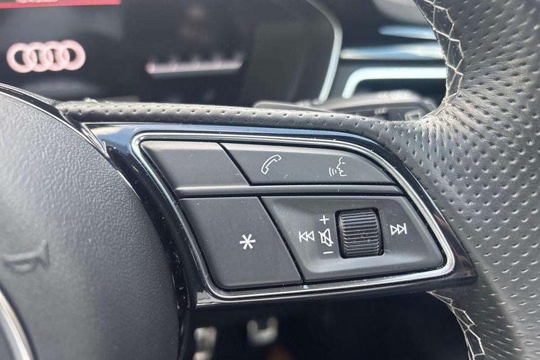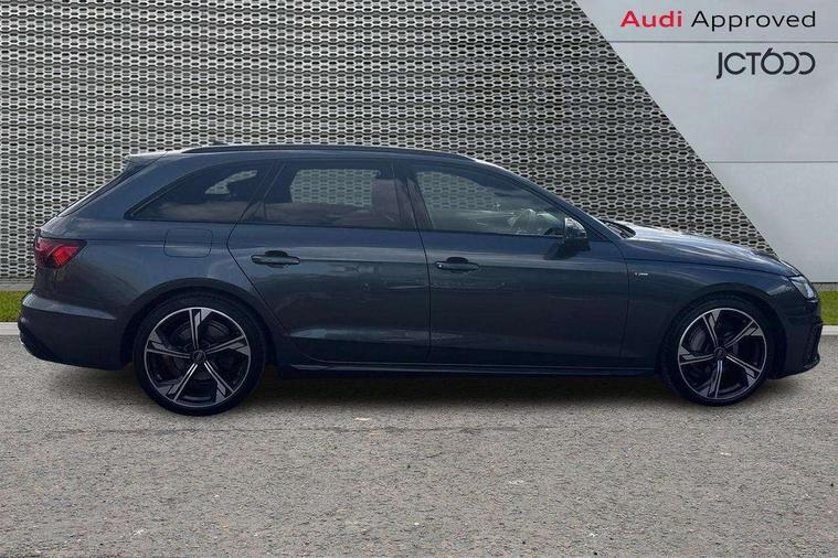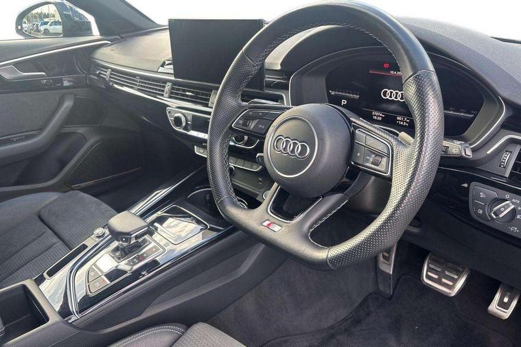 Audi connect safety and service (e-call), Audi connect with Amazon Alexa Integration, Audi drive select, Audi parking system plus with front and rear sensors, Audi smartphone interface, Audi virtual cockpit, Automatic start-stop system with coasting functionality and efficiency programme, Bluetooth interface, Electromechanical power steering, Email, calendar and text messages displayed via MMI, MMI Navigation plus with MMI touch includes 10.1" high resolution colour MMI display, 3D map, Power operated tailgate, Rear view camera, Voice control system, 54 litre fuel tank, Sports suspension lowered by 23mm, 2 USB charging ports, 8 passive loudspeakers, DAB digital radio reception, Auto dimming rear view mirror, Black Audi rings and black badging (model name in black badging, no engine badging), Black audi rings decal above rear sills, Body colour door handles, Body colour front spoiler lip, Body colour side sill trim, Electrically folding auto dimming/adjustable/heated door mirrors with LED side indicators and kerb view function for passenger side, Front and rear bumpers with side skirts, Front wing badges, Grained matt black side air inlets with matt aluminium silver inlay, High beam assistant, High gloss black B pillar trims and triangular rear door trim, LED headlights with LED rear lights + dynamic rear indicators + headlight adjustment and high beam, turning light + LED daytime running lights, LED third brake light, Matt aluminium silver tailpipe trim, Privacy glass, Rain and light sensors, Rear diffuser in matt titanium black with trim strip in matt aluminium silver, Rear side wing doors, RS4 rear spoiler in body colour, S Line roof edge spoiler, Variable intermittent front wash/wipe, Windscreen with acoustic glazing, 4 way electric lumbar support for driver and front passenger, 40/20/40 split folding 3 rear seat bench in 3 parts with rear centre armrest, Black cloth headlining, Black perforated leather gearknob, Contrast stitching on seats, steering wheel and gear lever gaiter, Deluxe 3 zone electronic climate control, Door sill trims with aluminium inlay, Electric load area cover, Front and rear head restraints, Front centre armrest, Heated front seats, Illuminated door sill trims with S logo, ISOFIX child seat mounting and top tether, Manual seat adjustment, Single front passenger seat, Stainless steel pedals and foot rest, Black styling pack - A4 Avant, LED Interior light pack - A4/S4, 3 rear seatbelts, 6 airbags - Driver, front passenger, curtain and side windows, Electronic Stabilisation Control (ESC) including ABS, ASR and EDL, Hill hold assist, Multi collision brake assist, Pop-up bonnet for pedestrian protection, Pre sense city, Seatbelt monitoring, Warning triangle and first aid kit, Anti theft alarm, Anti theft wheel bolts, Central locking, Keyless Go, Piano black finish inlay, Tool kit, Tyre repair kit,