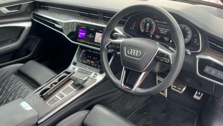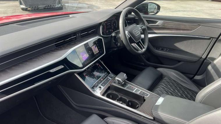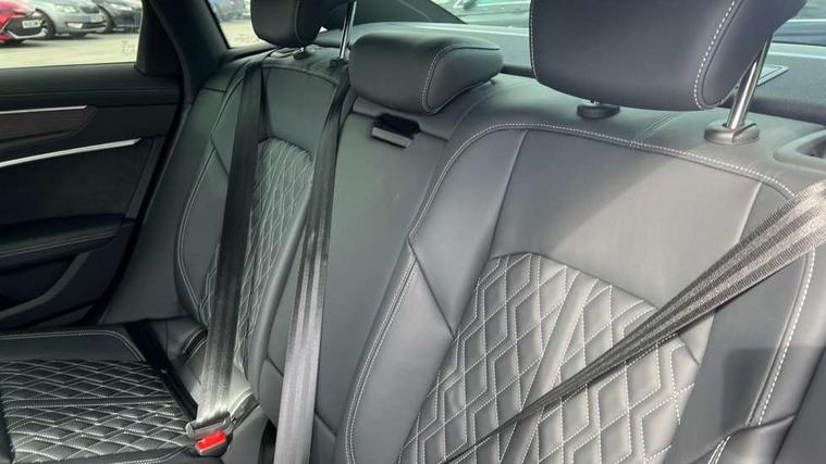 7" high resolution colour driver information display system, Audi connect with Amazon Alexa Integration, Audi drive select, Automatic start/stop system with coasting functionality, Bluetooth interface, Dynamic all wheel steering, Electric boot lid release, Head up Display, Lane departure warning system, Power door closure, Service interval indicator, Smartphone interface includes wireless Apple carplay/Android Auto, Voice control system, 12V Mild hybrid, 24 litre AdBlue tank, Diesel particulate filter, Quattro on demand, Suspension with damping control, 2 USB-C ports with charging functionality in the rear, Audi front music interface, Auxiliary input socket, DAB Digital radio, USB connection, Adaptive windscreen wipers with integrated washer jets, Audi beam projecting the word Vorsprung onto the floor from the driver and front passenger doors, Electric front/rear windows, Frameless auto dimming interior rear view mirror, Front intermittent wipers, Gloss black finish for the exterior audi rings without model and engine badging, Gloss black highlights on the exterior area of the Audi Single frame, Gloss black highlights on the front and rear bumpers, Gloss black highlights on the radiator grille, Gloss black highlights on the side windows trim strips, HD Matrix LED headlights with dynamic front and rear indicators, Headlight washers, Heat insulating darkened glass in side and rear windows, Heat insulating glass in windshield, LED rear lights, LED signature front daytime running light, LED third brake light, Matt black rear diffuser with diffuser strip and tailpipes in chrome, Matt black side air intake grille with inlay in matt aluminium, Panoramic opening glass sunroof, Privacy glass, Rain and light sensors, Rear boot, Rear side wing doors, Signature rear LED light design, 3 spoke sport leather steering wheel with multifunction, shift paddles and steering wheel heating, 4 way electric lumbar support for driver and front passenger, 4 zone deluxe automatic climate control, 40/20/40 split folding 3 rear seat bench in 3 parts with rear centre armrest, Black cloth headlining, Black front and rear carpet floor mat, Black steering wheel insert, Electrically adjustable front seats with driver memory, Front centre armrest, Front head restraints, Heated front and rear seats, Height/reach adjust steering wheel, Illuminated door sill trims with S logo, Illuminated sun visors with vanity mirrors, ISOFIX child seat mounting and Top Tether with front passenger airbag deactivation, Leather gear knob, Rear headrests, Single front passenger seat, Stainless steel pedals and foot rest, Tool kit and car jack, Valcona Leather with S embossing + front super sport seat + dinamica door insert, City assist pack - A6, Comfort and sound pack - A6, Extended LED Interior multi coloured light pack - A6, Full leather pack - A6, Non smoking pack - A6, Tour pack - A6, 3 point seatbelts on all seats, Airbags - Front side, front and rear including head, Audi pre-sense front, EBD - Electronic brakeforce distribution, Electromechanical parking brake, Electronic Stability Control (ESC) including ABS, ASR and EDL, Extended pedestrian protection measures, Manual child proof rear door locks, Seatbelt monitoring, Tyre pressure warning light, Warning triangle and first aid kit, Anti theft alarm with tow away protection, Anti-theft wheel bolts and wheel loosening detection, Immobiliser, Remote central locking, Black seatbelts, Fine grain ash natural grey brown upper inlay,