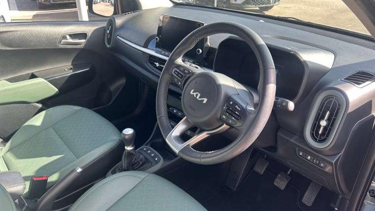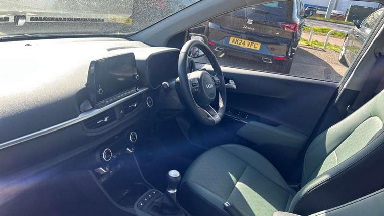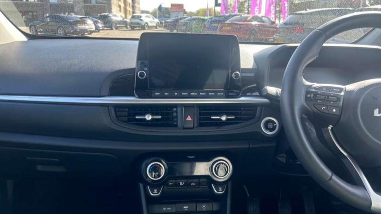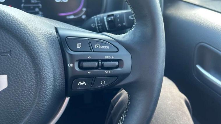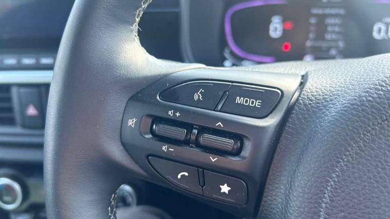4.2" driver display screen, 8" touchscreen navigation, Apple car play/Android Auto with voice control, Cruise control + speed limiter, Emergency call service, Emergency stop signalling system, External temperature gauge, Forward Collision-Avoidance Assist (FCA) 1.0 - City/Pedestrian/Cyclist, Intelligent speed limit assist, Kia Connect (UVO), Lane Follow Assist 1.0, Lane keep assist, Motor driven power steering, Rear parking sensors, Reversing camera system, Tachometer, Trip computer, Wireless Smartphone charger, 4 speaker audio system, Bluetooth with music streaming, USB ports for connection of a media device, Automatic defog system, Automatic headlight control system, Body colour bumpers, Body colour side sill mouldings, Body coloured door mirrors, Body coloured wheel arches, Electric adjustable/heated/folding door mirrors with LED indicators lights, Electric front and rear windows, Electric front touch drivers front window, Headlamp levelling, Heated rear window, High mount brake light, LED daytime running lights, LED Headlights, LED rear lights, Premium paint, Privacy glass - Rear windows and tailgate, Rain sensing front wipers, Rear fog lights, Rear side wing doors, Rear wiper, Silver window surround, Tinted windshield glass, Visible VIN plate, 12V power point front, 3 seat bench in 2nd row, 60:40 Split folding rear seats, All round height adjustable headrests, Artificial leather steering wheel, Artificial leather upholstery, Automatic air conditioning, Centre console storage box, Driver and front passenger sunvisors with driver's side illuminated vanity mirrors, Front and rear door storage, Front cabin lights, Front passenger USB-C charging port, Glovebox, Grey headlining, Heated front seats, Heated steering wheel, ISOFIX Child seat top tethers and anchor fixings, Luggage area light, Luggage board, Luggage net + hook, Manual adjust steering wheel, Manual adjustable driver and front passenger seat, Rear cabin lights, Rear USB charging port, Single front passenger seat, All round 3-point seatbelts, Anti-lock braking system (ABS), Electronic stability control, Front airbags, Front passenger airbag cut-off switch, Front seatbelt height adjusters, Hill hold control, Hill start assist control (HAC), Rear airbags, Seatbelt reminder warning, Seatbelt warning, Side airbags, Side impact protection, Torque vectoring brake based and straight line stability (SLS), Traction control, Tyre pressure monitoring system, Vehicle stability management, Anti theft alarm, Engine immobiliser, Folding key, Locking wheel nuts, Manual child locks, Rear occupant alert, Remote central door locking, Smart key with engine start/stop button, Smart key with motion sensor, Thatcham category 2 security alarm and immobiliser, 16" alloy wheels, Tyre mobility kit,