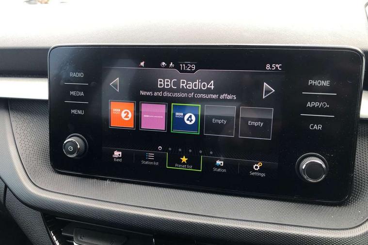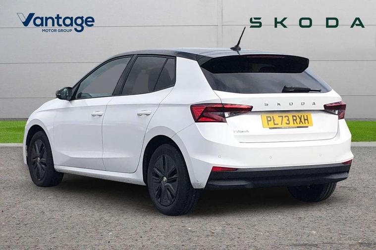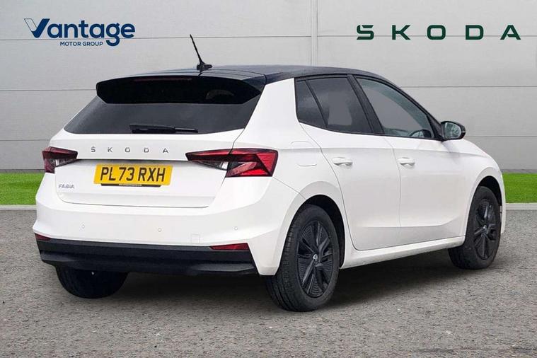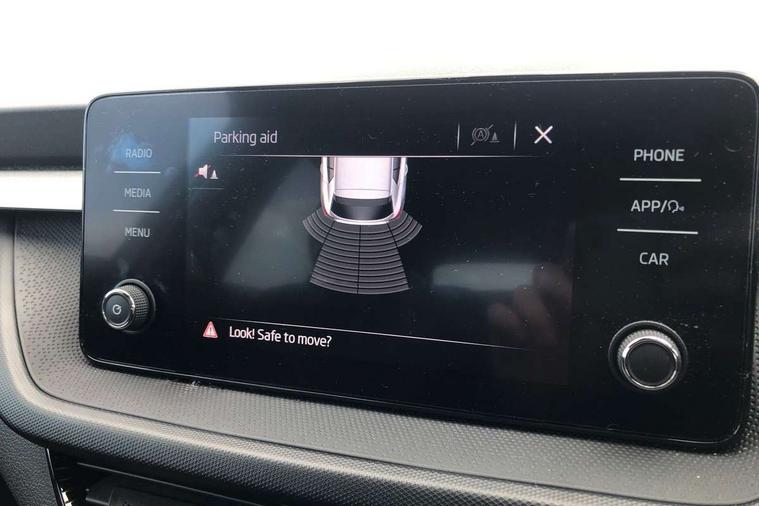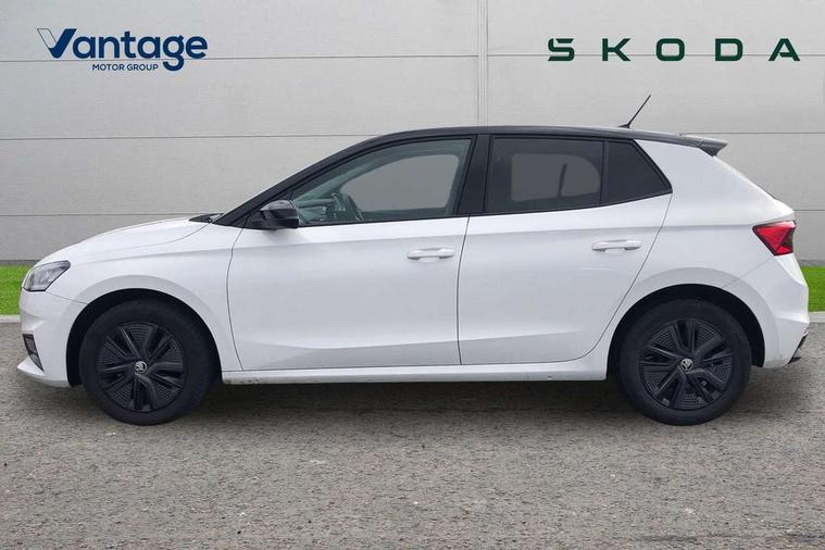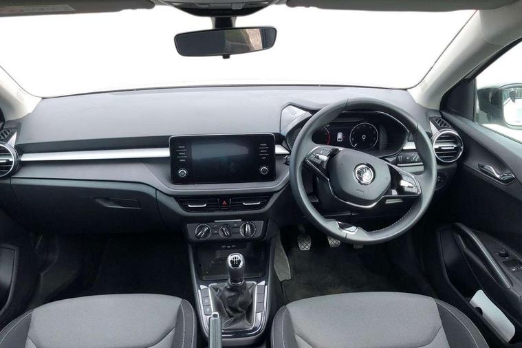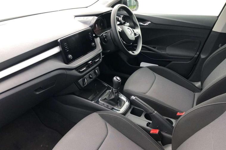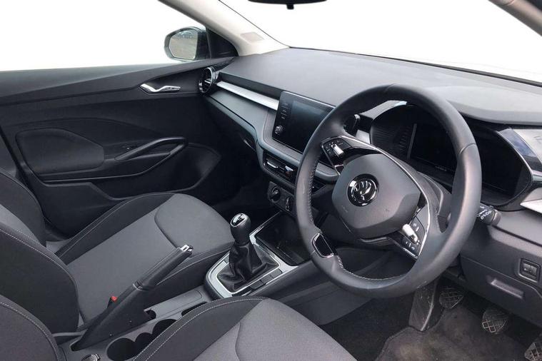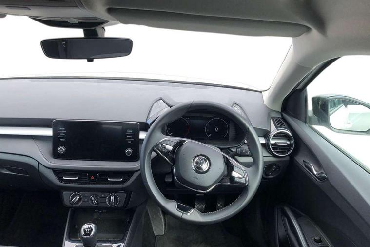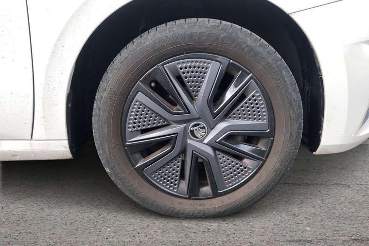Bluetooth connection, Driver alert system - DAS, Electromechanical power steering, Exterior temperature gauge, Lane assist including road edge detection, Service interval indicator, Virtual cockpit with 10.25" colour display, 2x USB-C in the front (for data transmission and charging), 6 Speakers (4 in front and 2 in rear), Auxiliary socket for external MP3 player, Bolero radio with 8" colour display, DAB digital radio reception, Basic LED Headlights, Body coloured bumpers, Dimming rear view mirror with black frame, Door mirror integrated indicators, Electrically adjustable and heated door mirrors, Electrically adjustable front windows with function auto up/down, Front fog lights, Front window wiper intermittent control, Headlight range control - Automatic, Ice scraper in fuel cap, LED daytime running lights with coming and leaving home feature, Mechanical adjustable rear windows, Privacy glass, Rain sensor, Rear LED fog light, Rear side wing doors, Rear window wiper with washing nozzles, Roof mounted spoiler, SKODA tailgate lettering in chrome, Third brake light, 2 reading lights in front and 2 reading lights in rear, 3 rear headrests, Backrest split and folding, Central console with fixed cup holder and storage box, Chrome handbrake release button, Fabric upholstery, Gearshift knob/handle in leather, Grain satin black interior door handles, Hand brake lever handle in leather, Height adjustable drivers seat, Height adjustable front headrests, Height adjustable steering wheel, ISOFIX and TopTether anchorage points to the outer rear seats, ISOFIX and TopTether on the front passenger seat, Luggage compartment lighting, Pollen filter, Rear seat bench unsplit, Single front passenger seat, Storm grey headlining, Sun visors with mirror and airbag label on passenger side, Ticket holder, Umbrella in drivers door, 3-point height adjustable front seats belts with pretensioner and force limiter, Automatic warning lights in case of crash, Driver and passengers airbag with switch off function, e-Call+, ESC including ABS, MSR, ASR, EDS, HBA and XDS, Front and rear seat belt warning, FRONT ASSIST (AEB City and AEB Inter Urban), Front side airbags, Head airbags, One tone horn, Pedestrian protection, Three rear 3-points safety seat belts with pretensioner and force limiter including stop function for outer rear seat belts, Tyre pressure monitoring system, Anti-theft alarm system including immobiliser, interior monitoring, backup horn, and towing protection, Central locking with radio remote control, interior controls, SAFE function and 2 foldable keys, KESSY - Keyless engine start/stop, Anodized cross line upper decorative trim, Colour Edition air vents, Grain satin black central console cover, Grain satin black lower decorative trim, Satin black door and side trim panel in front, Anti-theft wheel bolts protection, Super-low rolling resistance tyres,