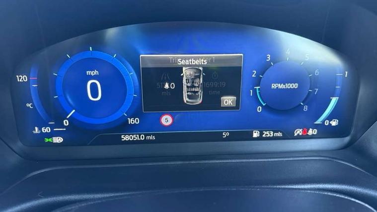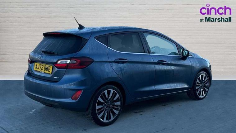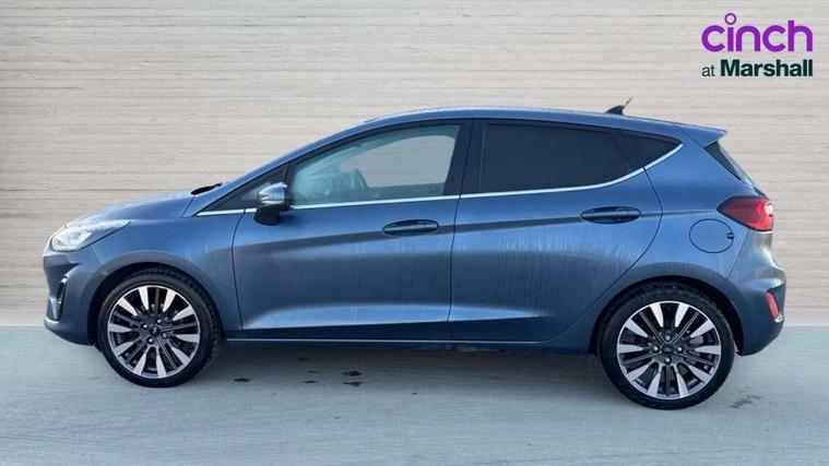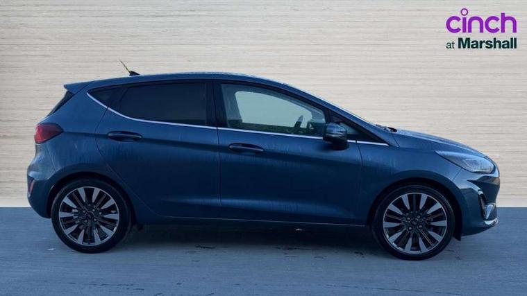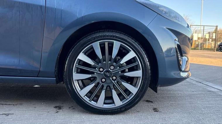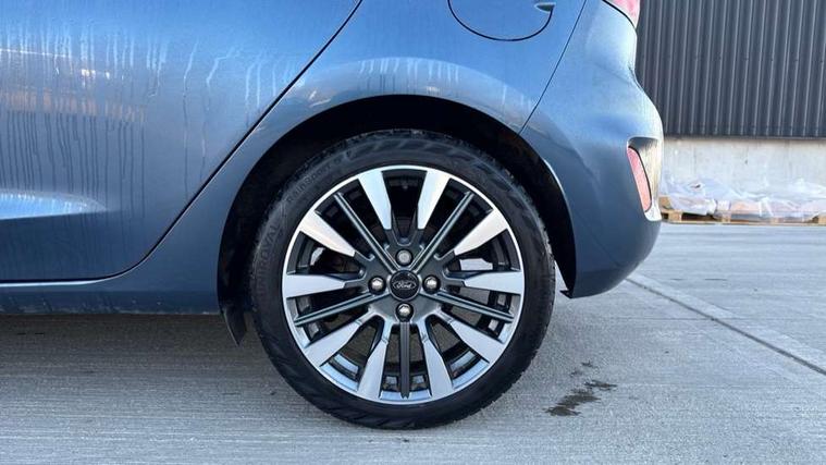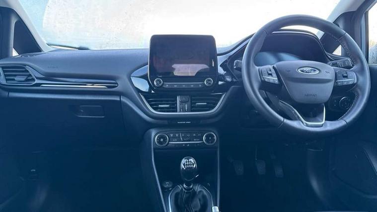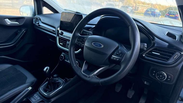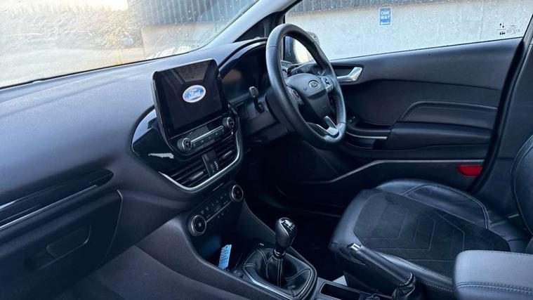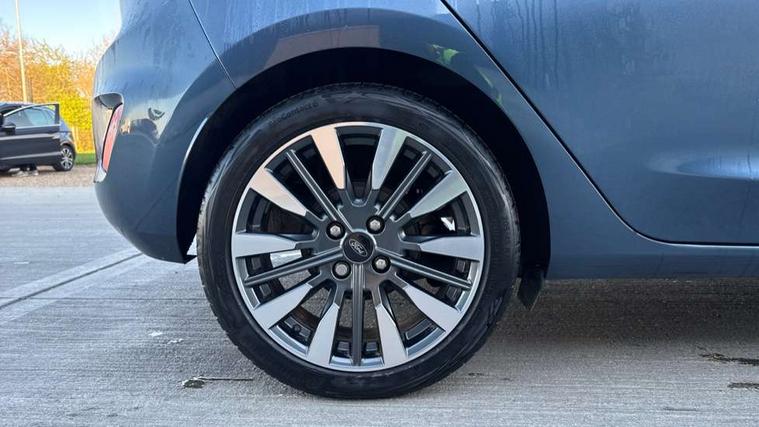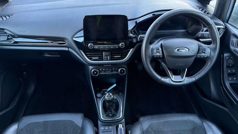 4.2" TFT instrument cluster screen, Bluetooth system, Electric power steering, Ford easy fuel, Rear parking distance sensors, Selectable drive modes (Normal, Sport, Track), Traffic sign recognition, Trip computer, 2 USB ports, Auxiliary input socket, B&O Premium audio system with 8" touchscreen, 10 speakers, 360 degree sound system, Ford SYNC 3 navigation system and Ford pass connect, DAB Digital radio, Steering wheel mounted controls, Auto high beam, Body colour bumpers, Body colour door handles, Body colour rear spoiler, Body coloured electrically operated and heated door mirrors with side indicators, Chrome beltline trim, Chrome front grille, Chrome lower window surround, Cornering front fog lights, Electric front windows/one touch facility, Electric rear windows, LED Night signature to rear lights, Power foldable door mirrors with puddle lights, Quickclear heated windscreen, Rain sensing wipers and auto dimming rear view mirror, Rear privacy glass, Rear wiper, 3 spoke leather trimmed steering wheel with audio control, 60/40 split folding rear seat, Adjustable head restraints, Boot carpet, Centre console with opening armrest, 2x cupholders, 12v and USB, Chrome inner door handles, Drivers and Passenger lumbar support, EATC - Electronic Auto Temperature control, Footwell illumination, Front floor mats in velour, Front map reading lights, Front seat and rear pockets, Height adjustable passenger seat, Illuminated glovebox, Leather gaiter, LED ambient lighting, Load area light, Luxury woven headliner, Manual 4-way driver seat adjust, Overhead console with sunglasses holder, Pollen filter, Rake/reach adjustable steering wheel, Sensico partial premium upholstery, Sensico wrapped steering wheel, NCAP Pack - Fiesta, 3 point seatbelts on all rear seats, ABS+EBA, Curtain airbags, Driver and passenger airbags, Drivers knee airbag, Electronic stability control with hill start assist, Front passenger airbag deactivation, Front side airbags, Seatbelt warning, Two tone horn, Tyre pressure monitoring system, Ford keyfree system with Keyless entry and keyless start, MyKey system, Remote central locking & engine immobiliser, Thatcham Cat.1 alarm, 17" 8 spoke alloy wheels,