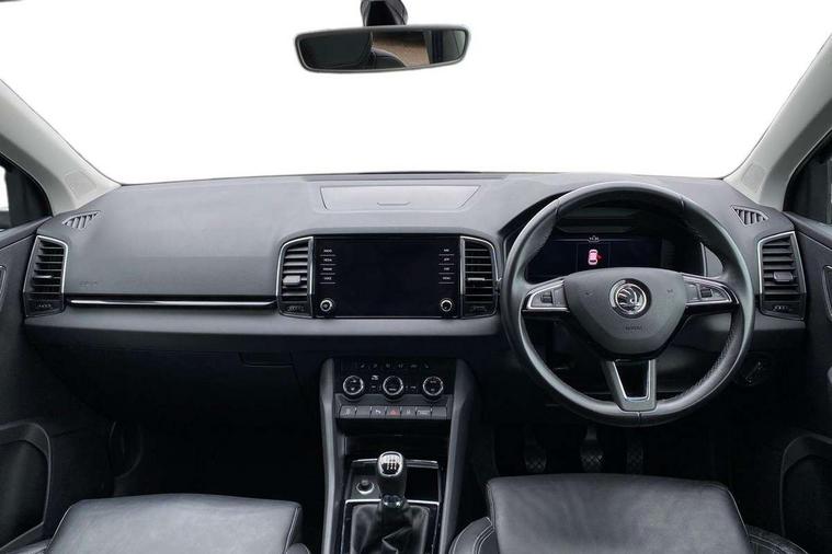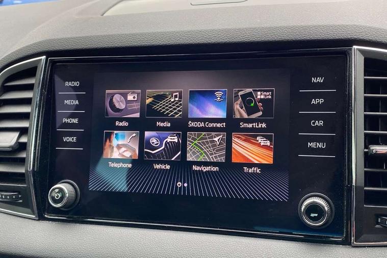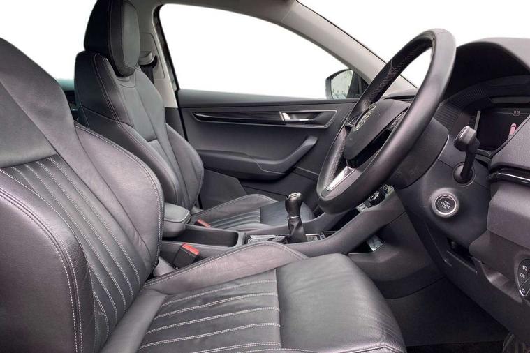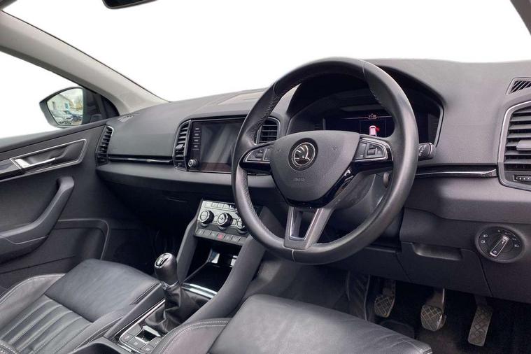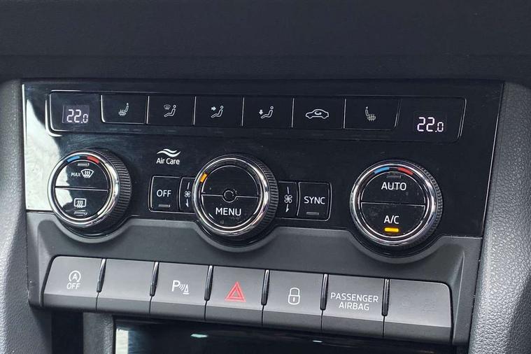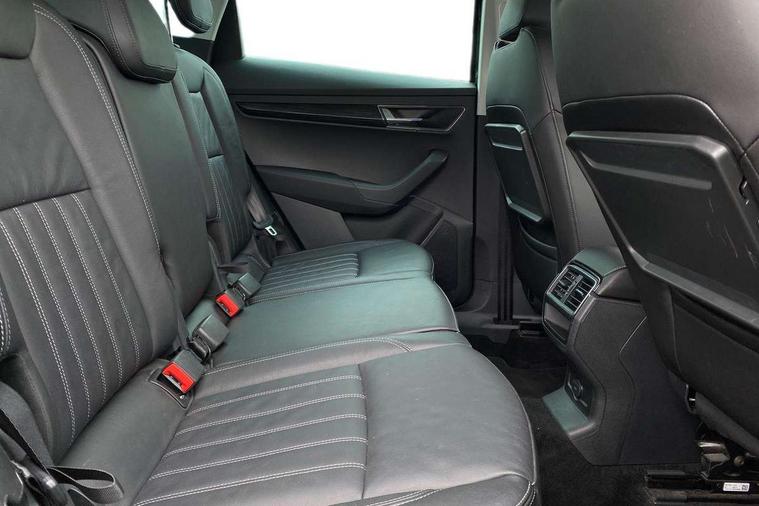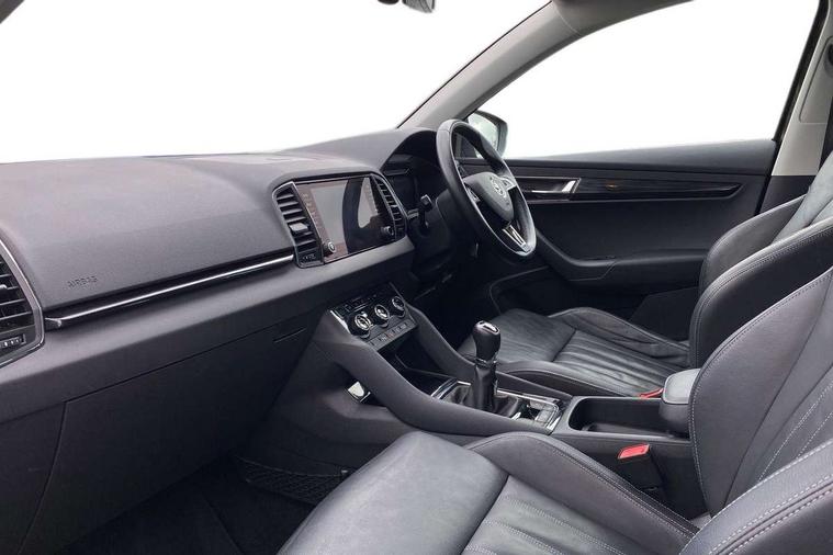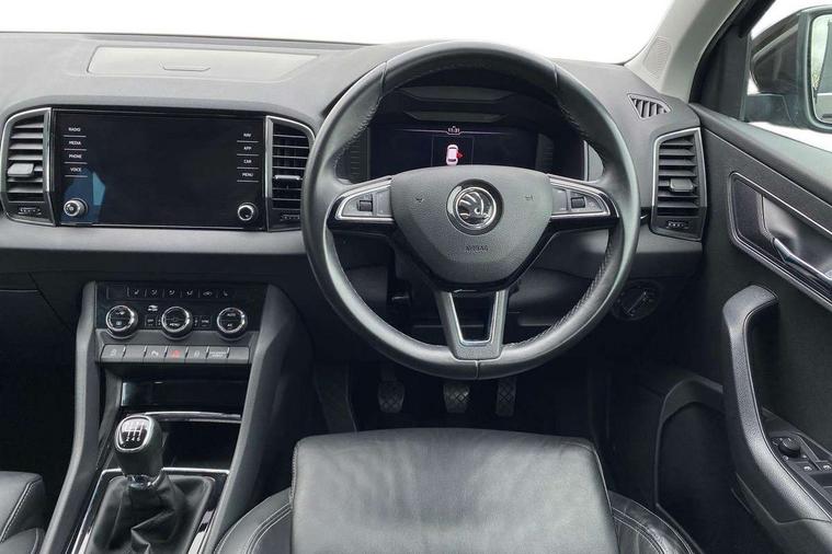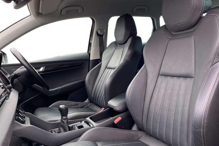 Drive mode selector, Driver alert system, Driver fatigue sensor, Driver profile selection, Multifunction colour trip computer, Outside temperature gauge, Rear view camera, Service interval indicator, Start/stop system with regenerative braking, DAB radio with Bluetooth, SD card slot, USB connection, Acoustic glass, Aero front windscreen wipers with intermittent function, Automatic headlight control system, Black electric window control buttons, Body colour door mirrors and handles, Body coloured bumpers, Electric front and rear windows with child proof lock, Full LED headlights + adaptive front light system + LED daytime running lights and front cornering fog lights, Headlight washers, Heated rear windscreen, LED rear lights with high functionality, Light assistant (coming/leaving home/tunnel light), Privacy glass, Safety reflectors on front doors, Third brake light, 1.5 litre bottle holders in driver and front passenger door panels, 12V socket in boot, 12v socket in front centre armrest with storage compartment and rear air vents, 2 Folding hooks and nets in boot, 2 Front readings lights for driver and passenger, 3 rear height adjustable headrests, 4 foldable roof handles with rear coat hooks, 4 lashing points on luggage floor, Backrest release, Cargo elements in boot, Chrome inner door handles, Dual zone climate control, Folding tables on the front seat backrests, Front head restraints, Front seat and rear pockets, Height adjustable front three point seats belts with tensioners, Height adjustable passenger seat, Height/reach adjust steering wheel, Ice scraper, Illuminated and cooled glovebox, Illuminated luggage compartment, Isofix child seat preparation outer rear, Net programme in boot, Pen holder, Pollen filter, Rear boot cover, Rear reading lights, Rear seats fixed folding and divided 60:40, Removable LED torch in the boot, Retractable parcel shelf attachable to tailgate, Safety vest holder, Storage box in upper central dashboard closed, Storage compartment below the passenger seat, Sunvisors with illuminated vanity mirrors, Textile floor mats, Umbrella under passenger seat, VarioFlex seats with retractable parcel shelf, Chrome roof rails + chrome pack - Kodiaq, Airbags - Front side, head, knee and curtain, Automatic door unlocking in case of crash, Automatic fuel cut off in case of crash, Driver airbag, Electronic parking brake with auto hold function, Emergency rear braking signal, ESC including ABS, MSR, ASR, EDS, HBA, DSR, RBS, MKB and traction control, Front assist radar scanning of the space in front of the car with automatic braking, Hill hold control, Passenger airbag with switch-off function, Pedestrian monitor, Seatbelt reminder signalisation and pretensioner for all seats, Three point seatbelts rear, Two tone horn, Tyre pressure display, Tyre pressure monitor, Alarm with interior monitoring, back up horn and tilt sensor with safe function, Electronic engine immobiliser, Keyless entry and keyless start with safe system, Remote central locking with 2 remote folding keys, Chrome framed air vents, Storage on wheel cover,