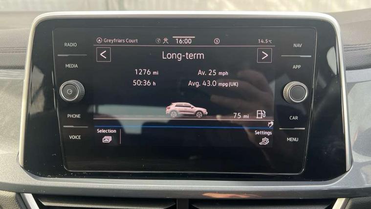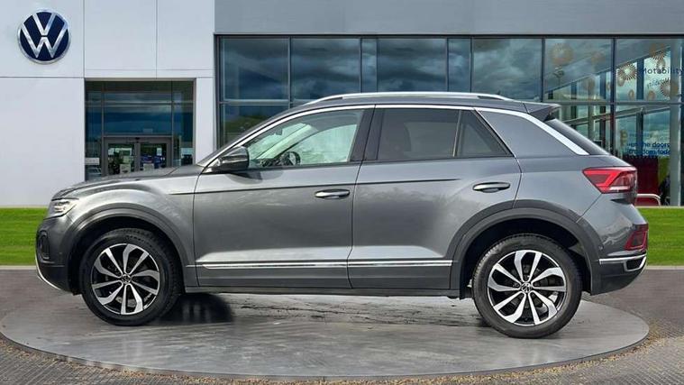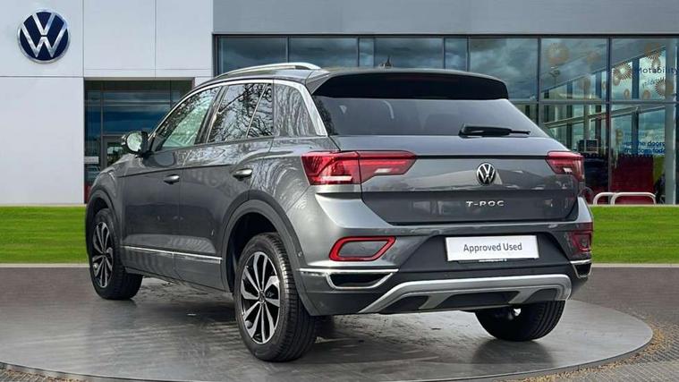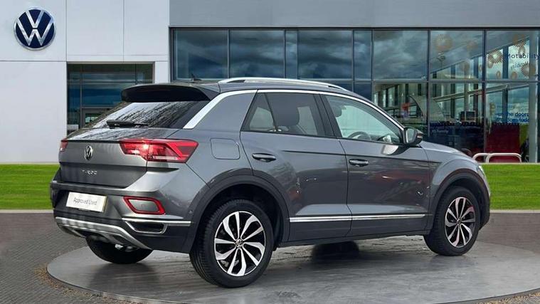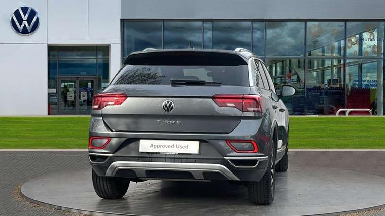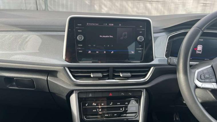 10.25" Digital cockpit pro, Bluetooth mobile phone interface, Driver alert system with fatigue detection, Driver tips and journey analysis, Dynamic road sign display, Emergency call service, Lane keeping system Lane Assist, Modified key software - reduce switch off time for key status change to Long no motion, Online services, Park assist including front and rear parking sensors, Power assisted speed sensitive steering, Service interval indicator, Tailgate/trunk lid release from outside, Think blue trainer driver tips and journey analysis, Warning sound and light for front seatbelts unfastened, Wireless app connect, Battery regeneration during braking, Front shock absorption, Rear shock absorption chassis with increased ride height, Start/stop function with battery regeneration, Diversity antenna for FM reception, Front and rear 6 speakers, Music playback - MP3, WMA and AAC files, Premium USB cable in choice of either Apple or Android smartphone compatibility, SD card slot, Simultaneous pairing of 2 compatible mobile devices, Title and cover art display, We Connect and We Connect Plus functionality, 3rd brake light, Auto dimming interior rear view mirror, Automatic hazard lights activation under emergency braking, Automatic headlight control with LED separate daytime running lights with coming/leaving home function, Body colour sports bumpers with silver metallic underbody fascia, Dynamic headlight range control with self adjusting whilst driving, Extended roof spoiler, Exterior mirrors aspherical on driver side, convex on front passenger side, External USB type C socket and charging sockets, Front windscreen wiper with intermittent wipe and 4 position delay, Heated rear window, LED Plus headlamps, LED rear combination lamps, LED rear number plate lights, LED tail lamp rear comination lamps, Light mode for poor weather, rain, fog or snow, Power windows with comfort operation and circuit breaker, Rain sensor, Rear exhaust tailpipe, Rear fog light on one side and reversing lights on both sides, Rear side wing doors, Rear wash/wipe with intermittent wipe setting, Remote electrically foldable door mirrors, puddle lights and reverse activated passenger's door mirror, 12V power socket in centre console, 3 rear head restraints, 3 seat bench in 2nd row, 4 load lashing points in luggage compartment, Air care climatronic air conditoning system with active combination filter and 2-zone temperature control, Chrome plated radiator grille inserts, air vent surrounds and light switch surrounds, Door and side trim panel with leatherette insert, Drawer under drivers seat, Front + rear carpet mats, Front centre armrest, Front comfort sports seats, Front cupholders x 2, Front footwell illumination, Instrument lighting, white adjustable panel illumination, Interior ambient lighting and surround lighting, Interior light delay, Isofix child seat preparation, Leather gearshift handle, LED interior light with switch off delay/dimmer and 2 front/rear LED reading lights, Load-through provision with cup holder when folded down ('Unsplit rear seat bench, split folding backrest, with centre armrest), Luggage compartment lighting, Non-folding front passenger seat backrest, Single front passenger seat, Storage compartment in left and right luggage area, Storage compartment in rear doors, Storage compartments in driver and front passenger doors, Sunvisors with illuminated vanity mirrors, Variable boot floor, height adjustable and removable, Driver assistance pack without proactive passenger protection - T-Roc, 3 point height adj front seatbelts + pretensioners, 3 point seatbelts in outer rear with ECE label, ABS, Child locks on rear doors, Driver and front passenger airbag with front passenger airbag deactivation, Driver and front passenger safety-optimised head restraints, Drivers seatbelt reminder, Electronic parking brake, Electronic Stability Control (ESC) inc EDL (Electronic Differential Lock) and ASR (Traction Control), Front and rear passengers curtain airbag system including front side airbags, Front assist with city emergency braking and pedestrian monitoring, Front disc brakes, Front seat side impact airbags, Predictive pedestrian protection, Rear disc brakes, Single tone horn, Tyre pressure loss indicator, Volkswagen roadside assistance, Alarm with interior protection, Anti-theft alarm system with interior monitoring, backup horn, and towing protection, Remote central locking with SAFELOCK, radio remote control with 2 remote control folding keys, Trims for alloy wheels,