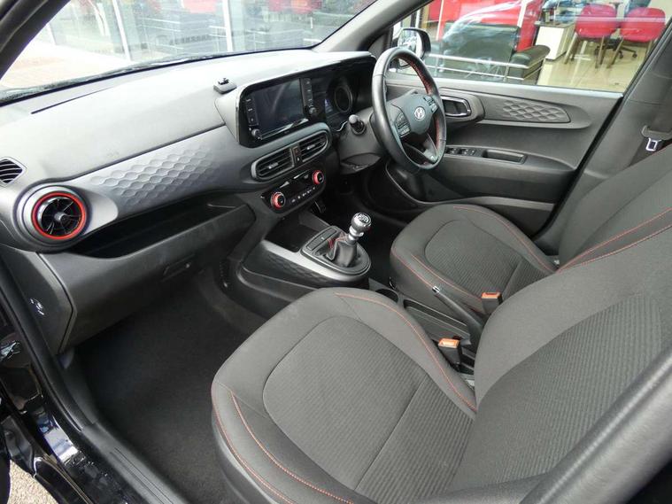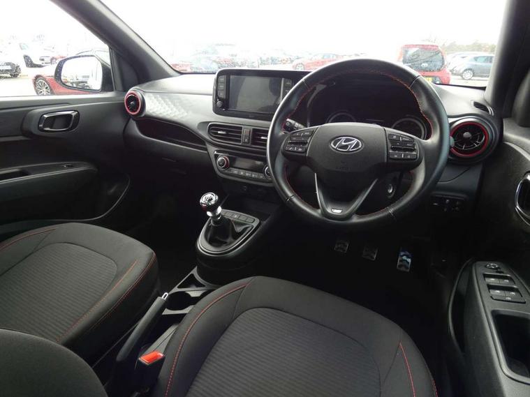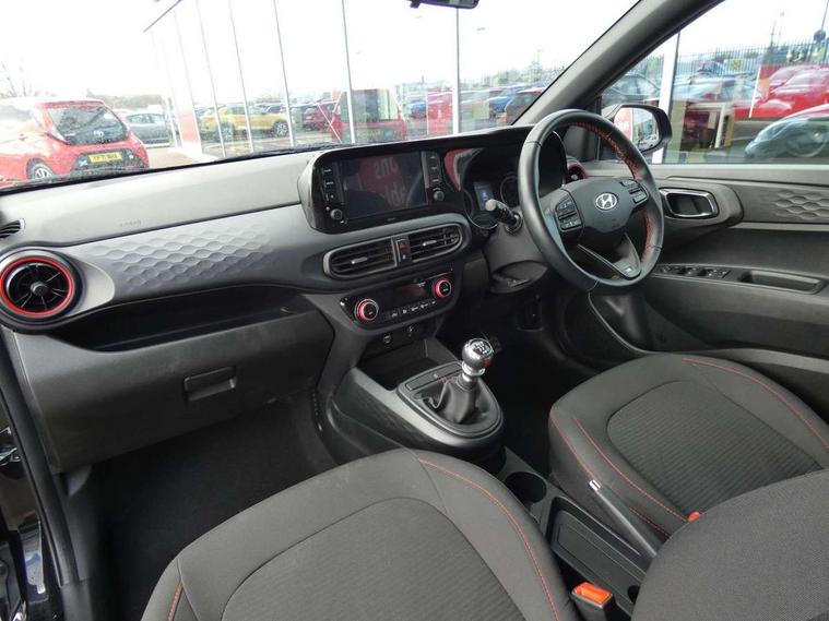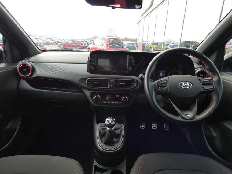 8" Touchscreen centre console display audio with smart device integration and DAB, Apple car play/Android Auto, Bluetooth connectivity with voice recognition, Cruise control + speed limiter, Driver attention alert system, eCall emergency call system, ISG - Idle stop and go, Lane departure warning system with lane keep assist - LKAS, PAS, Rear view camera, Roadside assistance, Trip computer, 2 front/2 rear speakers, Steering wheel audio, phone and cruise controls, USB socket, 1 speed non intermittent rear windscreen wiper, Bi-function projection headlights, Black finish on B pillars, Body colour door handles, Body coloured bumpers, Body coloured door mirrors, Differentiated DRL design with red stripe detail, Dual exhaust tailpipe, Electric front windows, Electric rear windows, Electrically adjustable and heated door mirrors, Front fog lights, Front intermittent wipers, Halogen headlights, Heated rear window, High beam assist, Indicator light on door mirrors, N Line Badging, N Line design front grille, Privacy glass - Rear windows and tailgate, Rear combination lights - LED, Rear roof spoiler with integrated LED brake light, Rear side wing doors, Unique LED daytime running lights, 12v power outlet - front, 3 seat bench in 2nd row, 60/40 split folding flat to floor rear seats, Auto light control, Black roof liner, Bottle holders in front/rear doors + front centre console, Cabin and luggage compartment interior lighting, Climate control, Cloth upholstery, Driver + passenger vanity mirrors, Driver's seat height adjustment, Driver/passenger sunvisors with ticket holders, Front door pockets, Front Head Restraints - Vertical and Horizontal Adjustment, Glove compartment, Height adjustable steering column, Isofix child seat preparation, Metal paint effect interior door handles, N Line branded leather gear stick, N Line branded leather steering wheel, Rear door pockets, Single front passenger seat, Vertical adjustment rear head restraints, 3x3 point rear seatbelts, Airbags - front, front side and curtain airbags, Anti-lock brake system (ABS), Autonomous emergency braking (AEB) with forward collision warning system, Brake assist function, Childproof rear door locks, Electronic stability control, Front and rear seatbelt reminder, Front seatbelt pretensioners, Hill start assist control (HAC), Passenger airbag deactivate switch, Rear disc brakes, Traction control, Tyre pressure monitoring system, Immobiliser, Perimeter alarm, Remote central locking, Second remote key, Speed sensitive auto door locking, Honeycomb design in dashboard and door, 16" N Line design alloy wheels, Tyre repair kit,