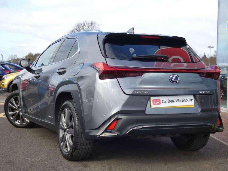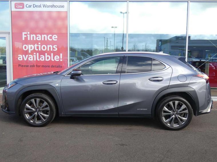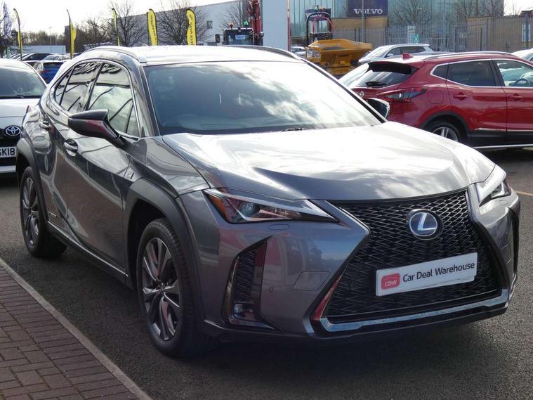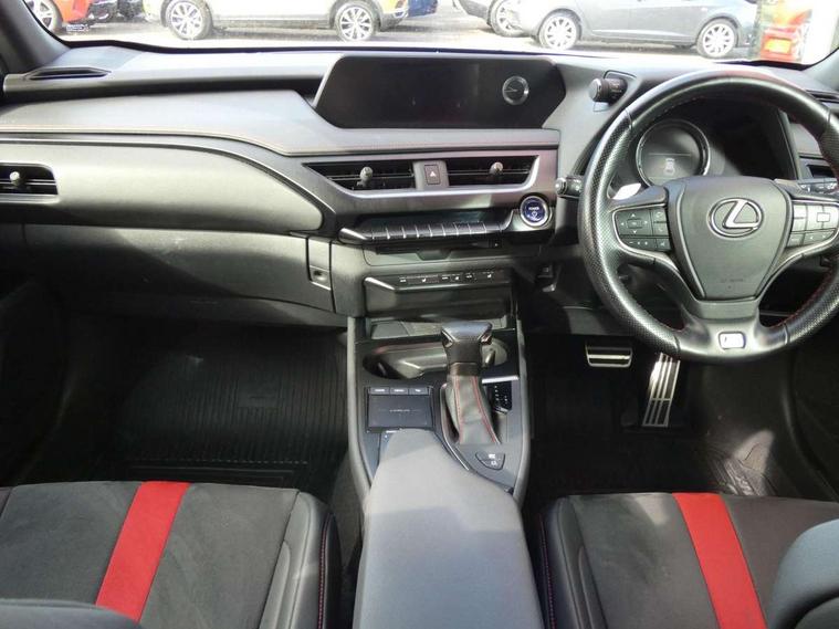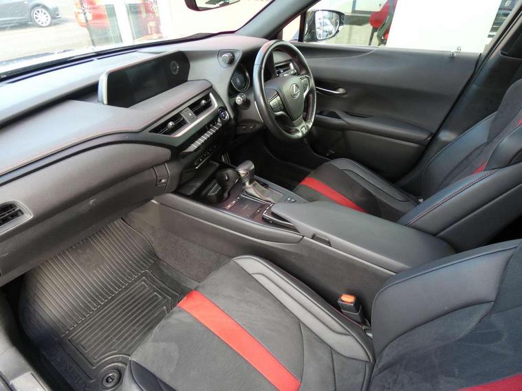 4 driving modes EV/Eco/Normal/Sport, 7" Lexus media display, 8" LFA inspired TFT meters with movable meter ring, Analogue clock with GPS function, Apple car play/Android Auto, Compatible mobile phone bluetooth with audio streaming, E-call, Electric power steering (EPS) with speed sensitive features, Lane change flasher function, Lexus link connected services, Lexus navigation system, Lexus safety systems + includes dynamic radar cruise control, pre collision system day and night, lane tracing assist, road sign assist, Parking assist sensors, 4 front and 4 rear, Push button start, Remote touch interface, Reversing camera with back guide lines, Trip computer, F Sport suspension tuning and rear performance dampers, Vehicle Dynamics Integrated Management (VDIM), Vehicle Stability Control (VSC), 2 front USB and 2 rear USB charging points, 6 speakers, AM/FM and DAB radio, AUX socket with VTR compatibility, CD player, Acoustic windscreen, Aero stabilising arch mouldings, Aero stabilising rear lights, Aero ventilated wheels, Aluminium roof rails, Auto dimming interior rear view mirror, Bi-LED (low and high beam) headlights with Auto High Beam (AHB), Black roof drip mouldings, Body adhesive, laser screw welding and laser brazed roof structure, Body coloured bumpers, Electric adjustable/heated door mirrors, F SPORT exterior styling consists of black Mesh front grille, enhanced side rockers, metallic coated front bumper and F SPORT badging, Front and rear one touch power windows, with anti-jam protection, Headlight cleaners, LED cornering headlights, LED daytime running lights, LED front and rear fog lights, LED tail lights, Privacy glass, rear doors and tailgate, Rain sensor windscreen wipers, Rear wiper, Shark fin roof aerial, Single hidden exhaust pipe, Towing preparation, 12V accessory port centre console and luggage compartment, 2 cup holders in the front and rear centre console, 2 way electrical lumbar adjustment for driver, 2 x folding shopping bag hooks in boot, 2 x sun visors with vanity mirror and lamp, 4 x tie down hooks in the boot, 5 headrests, 60/40 split folding rear seat, 8 way driver/passenger electrically adjustable front seats, Active sound control, Card holder installed in driver and passengers sun visors, Centre armrest with storage, Driver and passenger door pocket, Dual zone electronic climate control + Nano-E humidity sensor, F SPORT Aluminium front scuff plates, F Sport aluminium sports pedals, F SPORT dimpled leather gear lever, F SPORT front seat headrest adjustable forwards and backwards, F Sport interior styling, F Sport leather steering wheel with paddle shifts, Fabric/Tahara leather upholstery, Glovebox, Heated front seats, Heated steering wheel, LED interior illumination, Map pockets in the rear of passenger's front seat, Rear air vents with 2 USB chargers, Rear armrest with 2 cupholders, Storage tray under audio panel, Textile carpet mats, Tilt/reach adjustable steering column, Under deck storage, Under desk side storage, 2 x Isofix child rear seat restraints, 3x3 point rear seatbelts, Anti-lock braking system (ABS), BAS (Brake Assist System), Driver and front passenger 2 stage airbag, Driver and front passenger knee airbag, Driver/front passenger side airbags, EBD - Electronic brakeforce distribution, ECB (Electronically Controlled Brake System), Electric parking brake, Front adjustable seatbelt anchor points, Front and rear curtain shield airbags, Front outer seatbelt+pre-tensioners, force limiter+tension reduction: 3-point with active safety link to PCS, Hill start assist control (HAC), Passenger airbag cut-off device, Rear outer seatbelt+pre-tensioners, force limiter+tension reduction: 3-point with active safety link to PCS, Centre belt w/o pre tensioner+force limiter, Secondary Collision Brake (SCB), TRC (Traction Control), Tyre pressure warning, 2 x remote key fobs, Anti theft system : Alarm instruction sensor, glass breakage sensor and engine immobiliser, Locking wheel nuts, Remote central door locking, Speed sensitive auto door locking, Two motion door lock with double lock, VIN Window etching, 18" F Sport alloy wheels with run flat tyres,