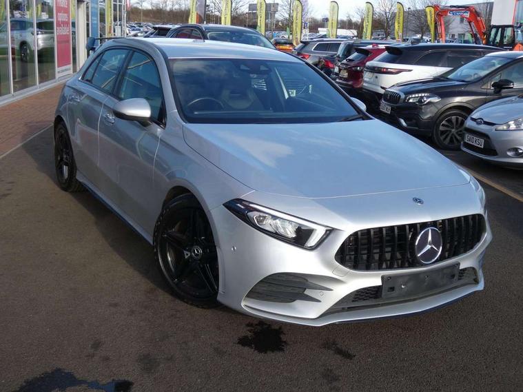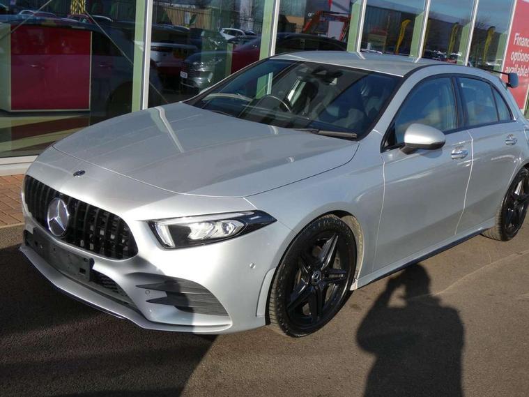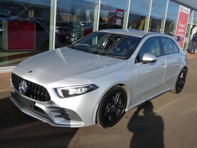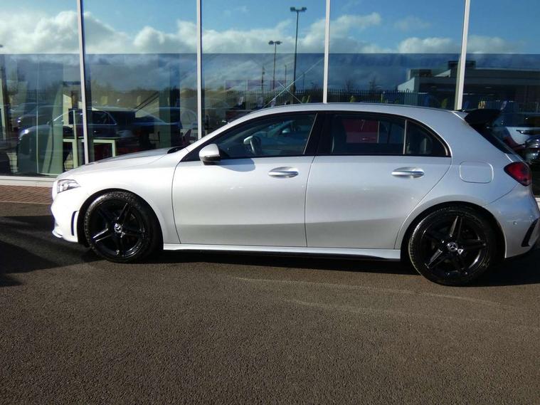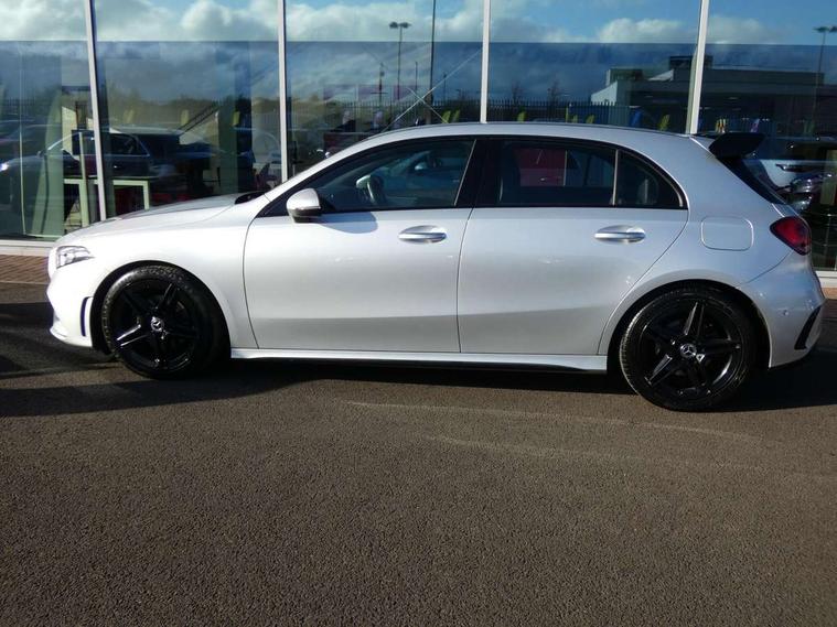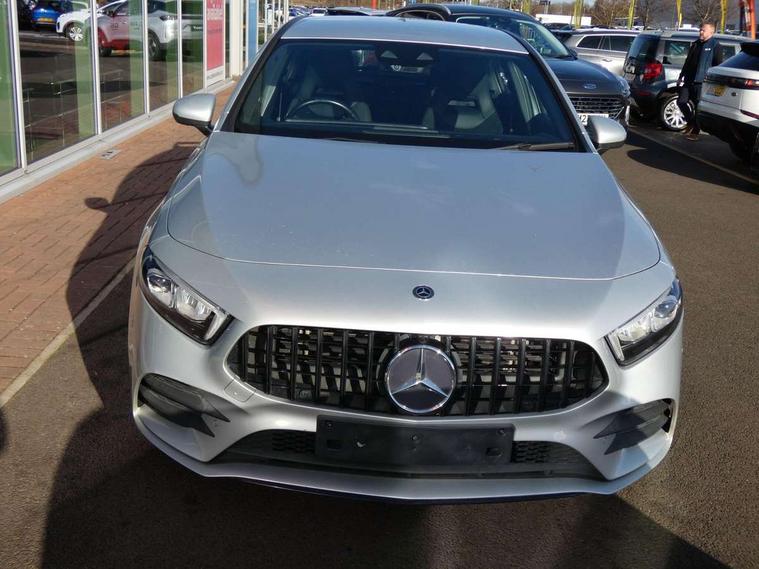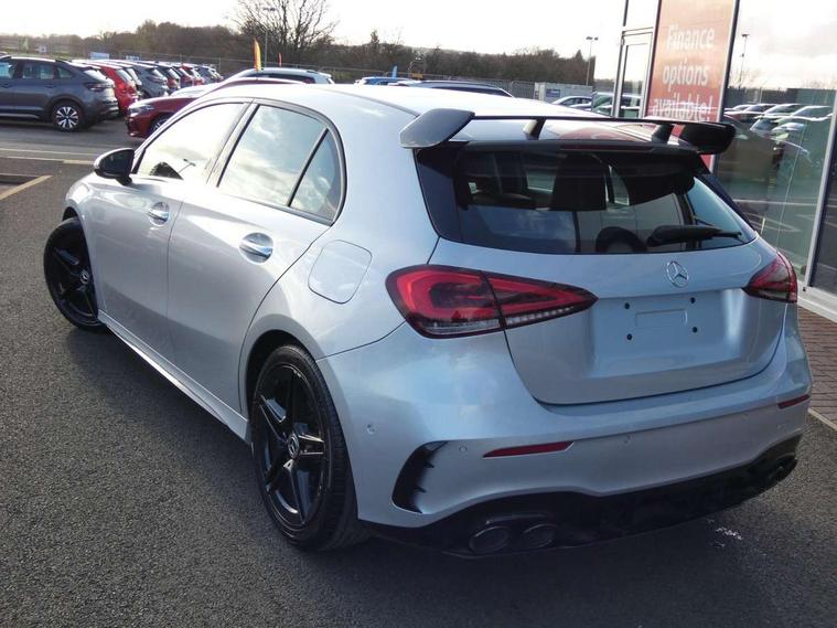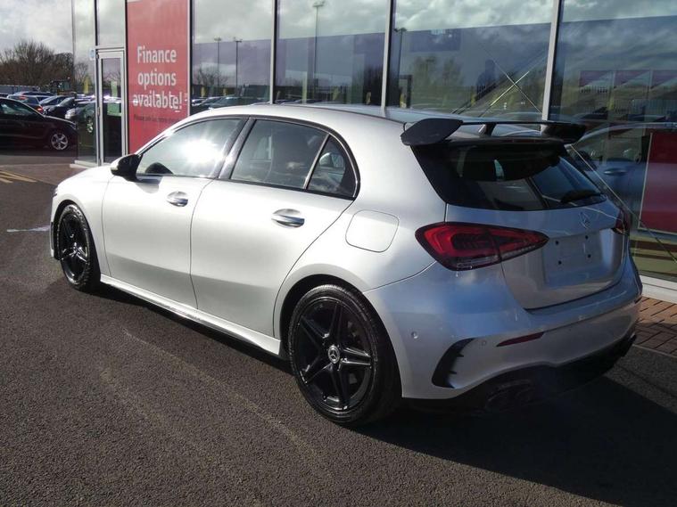 10.25" Digital instrument cluster display screen, 10.25" media display, 180 degree rear view camera with parking guidelines, Active lane keep assist, Active park assist with parktronic system including front and rear parking sensors, Attention assist, Brake pad wear indicator warning light, Direct steering, DYNAMIC SELECT with a choice of driving modes (ECO, Comfort, Sport and Individual), ECO start/stop function, Fluid level warning indicator for fuel, oil, coolant and washer fluid, Hard-disk navigation, Lamp failure indicator, Mercedes me connect including emergency call system, accident recovery, breakdown and maintenance management, Outside temperature gauge, Radio aerial integrated into roof spoiler, Service indicator (ASSYST), Speed sensitive power steering, Trip computer, Voice activation, Lowered comfort suspension, DAB Digital radio, Dual bluetooth interface, 2 USB ports (type C), MBUX multimedia system with DAB digital radio and touchpad including satellite navigation, Mid-range sound system, 4 Electric Front and Rear windows, Active aerodynamics with AIRPANEL in the front apron, Adaptive brake lights, AMG front, rear apron and side skirts, Blue tinted glass, Body colour bumpers, Body colour door handles, Body colour side skirt, Body coloured door mirrors, Chrome beltline trim, Diamond radiator grille with chrome pins and silver louvre + chrome insert, Electric adjustable and heated door mirrors with integrated LED side indicators, Exhaust system - Twin trapezoidal tailpipes in polished stainless steel, Headlamp assist automatic headlamp activation, Heated glass rear windscreen + timer control, LED high performance headlamps with integrated LED daytime running lights, LED tail lamp, LED third brake light, Rain sensor windscreen wipers, Rear fog lights, Rear wiper, 12V socket, 3 Spoke flat bottom leather multi function steering wheel with perforated leather in grip area, 40:20:40 split folding rear seats, Air vents surround and cruciform nozzle in silver chrome, AMG floor mats with red stitching, Artico man-made leather/Microfibre Dinamica upholstery with red contrast stitching, Auto Mercedes-Benz child seat recognition sensor, Black roof lining, Brushed stainless steel sports pedals with rubber studs, Controller on centre console with chrome surround, Cup holder and stowage compartment lighting, Freight packaging without tie-down hooks, Front centre armrest with storage compartment, Front door sills with Mercedes Benz lettering, Front footwell lights, Front reading lamps, Front seat backs luggage nets, Front seat cushion length adjustment, Front signal exit lamp, Front vanity lights, Gearshift paddles on steering wheel, Handle recess/closing light, Heated front seats, Height/reach adjustable steering column, Illuminated door sills, Illuminated glovebox, Interior lighting - 64 colour Ambient lighting, ISOFIX Child seat top tethers and anchor fixings, Luggage compartment cover, Manual height adjustable front seats, Oddments tray lighting, Rear armrest, Rear head restraints, Rear Reading Lamps, Seat occupancy sensor for front passenger seat, Spectacles compartment for driver, Sports seats with integrated headrests, Storage compartment under load area floor, Sunvisors with illuminated vanity mirrors, Touchpad, Touchpad illumination, Twin front cupholders, Two zone thermotronic luxury automatic climate control, Mirror package - A Class, Seat comfort pack - A Class, 3 rear 3 point seatbelts, ABS with Brake Assist, Active bonnet, Adaptive brake assist with hold function and hill start assist, Brake calipers with Mercedes-Benz lettering + perforated brake discs, Childproof locks manually operated for rear doors and electrically operated for rear power windows, Crash responsive emergency lighting, Driver and passenger head and side airbags, Drivers knee airbag, Dual stage driver/passenger airbags, Electronic parking brake, ESP curve dynamic assist, ESP with ASR, Front and rear seatbelt reminder, Tyre pressure monitoring system, Warning triangle and first aid kit, Window airbags, Alarm system/interior protection/immobiliser, Keyless Go Lock/Unlock function, Remote central locking and crash sensor with emergency opening function, Black seatbelts, 18" AMG 5 twin spoke light alloy wheels in titanium grey with highsheen finish, Summer tyres, Tirefit sealant kit,
