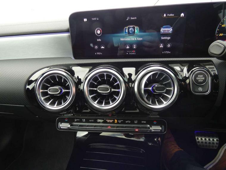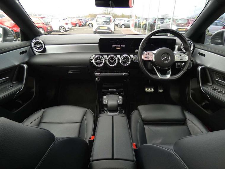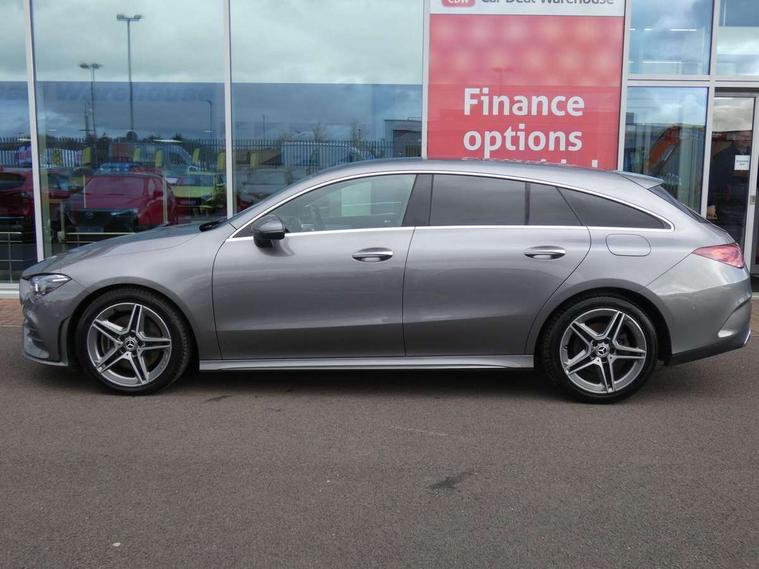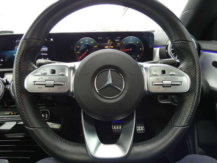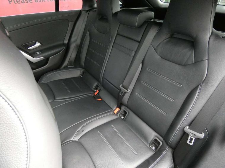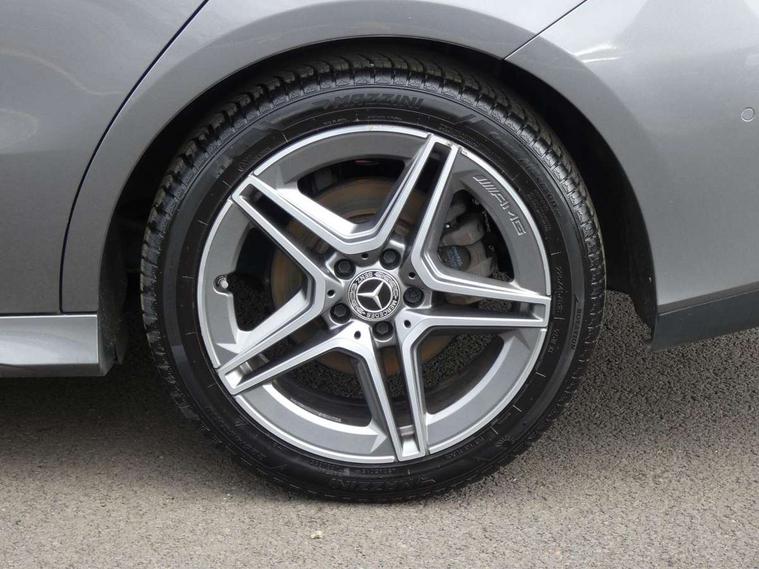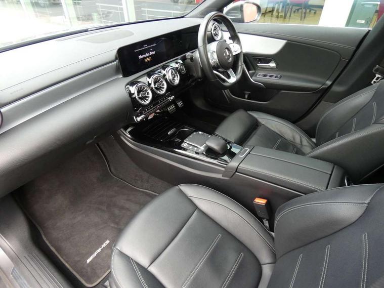 10.25 inch Instrument display with digital cockpit, 10.25 inch touchscreen central media display, Attention assist - Monitors steering behaviour and long journey fatigue, Bluetooth connection, Car wash mode, DYNAMIC SELECT with a choice of driving modes (ECO, Comfort, Sport and Individual), ECO start/stop function, Fluid level warning indicator for fuel, oil, coolant and washer fluid, Hard-disk navigation, Hey Mercedes Voice activation, Lamp failure indicator, Mercedes me connect including emergency call system, accident recovery, breakdown and maintenance management, Mercedes me remote services, Outside temperature gauge, Owners manual and service booklet in English, Pre-installation of private car share, Preinstallation for Mercedes Benz link, Radio aerial integrated into front and rear windshields, Service indicator (ASSYST), Smartphone integration with Apple CarPlay and Android auto, Traffic sign assist, Trip computer in multifunction display with current consumption indicator, Lowered comfort suspension, Rear axle multi-link, DAB digital radio tuner, MBUX multimedia system with DAB digital radio and touchpad including satellite navigation, Mid-range sound system, USB (type C) ports (2) in stowage compartment and 1 in front of centre console, Adaptive brake lights, AMG body styling with AMG front apron and rear apron and visible exhaust tailpipe in chrome trim elements, AMG bodystyling side skirts, Auto headlights, Body colour bumpers, Body colour door handles, Chrome beltline strips, Chrome weather strip, Diamond radiator grille pins in chrome with silver painted louvres and chrome insert, Electric panoramic sliding sunroof, Electric windows, Electrically adjustable and heated door mirrors with integrated LED indicators, Exhaust system with 2 Visible tailpipe trim elements and rear apron with trim in chrome, Headlamp assist automatic headlamp activation, Heated glass rear windscreen + timer control, High level LED third brake light, Integrated LED daytime running lights, Interior mirror with black reading lamps and frameless, LED tail lamp, Multibeam LED headlamps with adaptive highbeam assist plus, Privacy glass with dark tinting on rear side windows and rear window, Rain sensing windscreen wipers with two sensitivity settings, Rear fog lamp, Rear side wing doors, Rear wiper, Window line trim strip in chrome, 3 seat bench in 2nd row, 3 spoke flattened bottom nappa leather multifunction steering wheel with perforated leather in grip area, 40:20:40 split folding rear seat backrests, Air conditioning - Two zone thermotronic luxury automatic climate control with display, Air vents with surround in silver chrome, Automatic child seat recognition sensor, Black roof lining, Brushed stainless steel sports pedals with rubber studs, Floor mats with stitched AMG lettering, Front centre armrest with stowage, Galvanished gear shift paddles on steering wheel, Heated front seats, Illuminated front door sills with changeable cover, Illuminated glove compartment stowage, Interior lighting - 64 colour Ambient lighting, Luggage net on driver/front passenger seat backrest, Manually height and reach adjustable steering column, Rear armrest with two integral cup holders for drinks, Rear head restraints, Single front passenger seat, Sport seats with fixed head restraints, Stowage compartment in centre console with retractable cover, Sunvisors with illuminated vanity mirrors, Touchpad on center console, Twin front cupholders, Two outer rear seat isofix and top tether child seat fixing points, Keyless go pack - CLA, Light and sight pack - CLA, Mirror pack - CLA, Parking package - CLA, Seat comfort pack - CLA, Active bonnet pedestrain safety measure which detects an impact and raises bonnet by 65mm, Adaptive brake assist with hold function and hill start assist, Anti-lock braking system (ABS), Black seat belts, Bonnet with power domes, Brake pad wear warning indicator, Childproof locks manually operated for rear doors and electrically operated for rear power windows, Crash responsive emergency lighting, Driver and front passenger head and sidebags, Driver and front passenger windowbags, Drivers knee airbag, Dual stage driver and front passenger airbags, Electric parking brake, Electronic stability programme with acceleration skid control, ESP curve dynamic assist, Front and rear seatbelt reminder, Front passenger seat occupancy sensor, Three point rear seat belts, Tyre pressure monitoring system, Warning triangle and first aid kit, Remote central locking and crash sensor with emergency opening function, Urban guard vehicle protection system with immobiliser and interior protection, Light aluminium with longitudinal grain interior trim, 18" 5 twin spoke design alloy wheels painted in titanium grey with high sheen finish, Summer tyres, Tirefit tyre sealant kit,