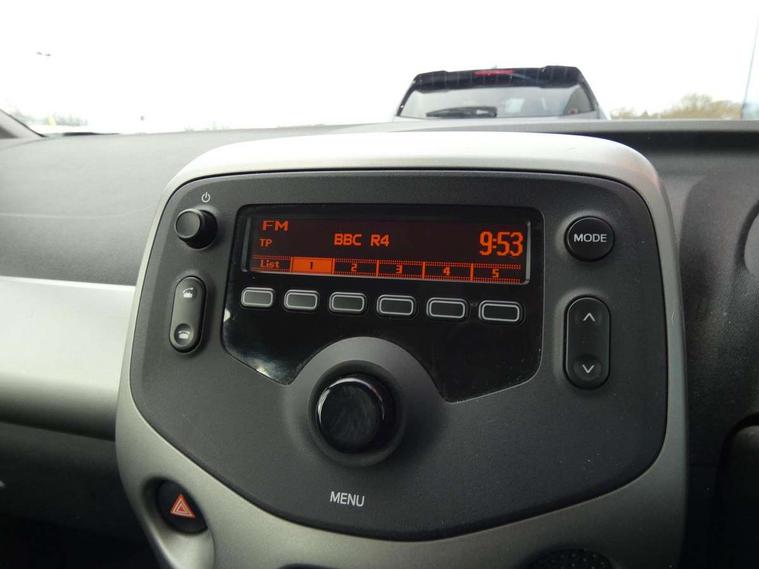 Bluetooth system, Digital clock, Electric power steering, Fuel indicator with low level warning, Lights on warning, Tachometer, Vehicle Stability Control (VSC), 4 speakers, Auxiliary input socket, DAB Digital radio, Stereo radio, USB connection, 2 speed wipers/variable intermittent/mist function, Black front X, Body colour bumpers, Body colour door handles, Body colour door mirrors, Carbon rear diffuser, Electric adjustable door mirrors, Electric front windows, Green tinted glass, Headlamp levelling, Heated door mirrors, Heated rear windscreen, LED daytime running lights, Rear spoiler, Rear window demister, Rear wiper, Roof mounted aerial, 12V Accessory socket, 3 spoke leather steering wheel, 50/50 split folding rear seat, Air conditioning, Air recirculation system, Centre console storage, Chrome insert to gearknob, Chrome interior door handles, Driver and passenger sunvisors, Driver's seat height adjuster, Driver/passenger seat recline/slide adjust, Driver/passenger vanity mirrors with covers, Front and rear door pockets, Front cupholder, Front map reading lights, Gleam cloth upholstery, Glovebox, Height adjustable front head restraints, Isofix system on outer rear seats, Leather gear knob, Pollen filter, Rear cupholders, Rear headrests, Steering wheel mounted radio/phone controls, Stepless tilt adjustable steering column, Storage bins on all doors, Tonneau cover, ABS, Driver and passenger airbags, ESP, Fasten seatbelt reminder, Front side airbags, Height adjustable front seatbelts with pre-tensioners and load limiters, Hill start assist, Passenger airbag deactivate switch, Rear child proof door locks, Side curtain airbags, Tyre pressure warning, Engine immobiliser, Lockable fuel cap, Remote central locking, Grey dashboard trim, Tyre repair kit,