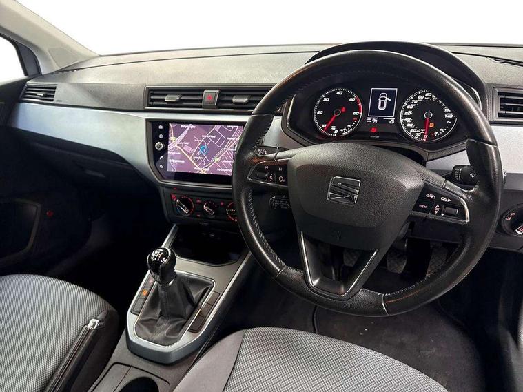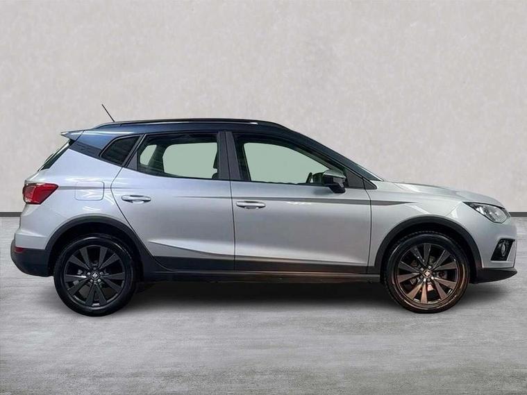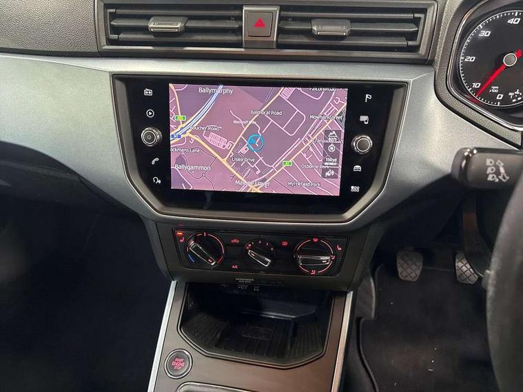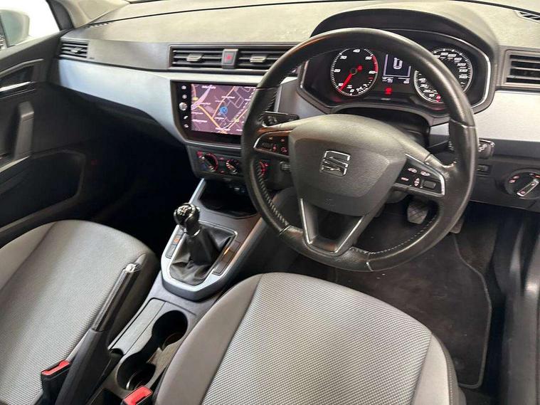 'Lights On' Reminder warning buzzer, Adaptive cruise control, Digital clock, Electric speed sensitive power steering, Front assistant collision mitigation, Full Link Smartphone Integration with Mirror Link, Apple Car Play, Google Android Auto, Low fuel warning light, Outside temperature display, Rear parking sensor, RPM counter, Trip computer, Comfort suspension, 6 speakers, Beats audio system, Bluetooth interface for hands free and audio streaming, DAB Digital radio, SEAT USB media cable, Steering wheel mounted audio controls, Anti theft roof antenna, Automatic activation of hazard warning lights, Automatic headlights, Black roof rails, Black window surrounds, Body coloured bumpers, Body coloured door handle inserts, Chrome grille surround, Electric adjustable door mirrors, Electric front/rear windows with one touch/auto up/down, Electric headlight adjustment, Front fog lights with static cornering function, Halogen headlights, Hidden exhaust pipe, LED daytime running lights, LED licence plate lighting, LED tail lights, Rear fog lights, Rear window wash/wipe, Visible VIN plate, Windshield wiper with intermittent control and potentiometer, 2 cupholders, 3 rear height adjustable headrests, 60/40 split folding rear seat, Active head restraints, Air conditioning, Ambient interior lighting, Card holder, Cloth upholstery, Double boot floor, Driver and passenger sunvisors, Driver/front passenger seat height adjustment, Dust/pollen filter, Footwell ambient lighting, Front courtesy lights, Front reading light, Gear shift indicator, Height/reach adjustable steering column, Illuminated boot, Instrument lighting with brightness control, Isofix attachments on outer rear seats, Leather handbrake, Leather steering wheel and gear knob, Connectivity pack plus - Arona, Winter pack - Arona, 3 point seatbelts on all rear seats, ABS+EBA, Child locks on rear doors, Driver/Front Passenger airbags, Electronic stability control, Front and rear seatbelt reminder, Front side/curtain airbags, Height adjustable active front headrests, Hill hold control + Tyre Pressure monitor, Multi-Collision braking, Passenger airbag deactivate switch, Tiredness recognition system, Traction control, 2 folding remote keys with window open/close function, Immobiliser, Keyless entry and start, Locking wheel bolts, Remote central locking + deadlocks, Interior chrome line trim, 17" Dynamic alloy wheels,