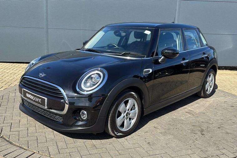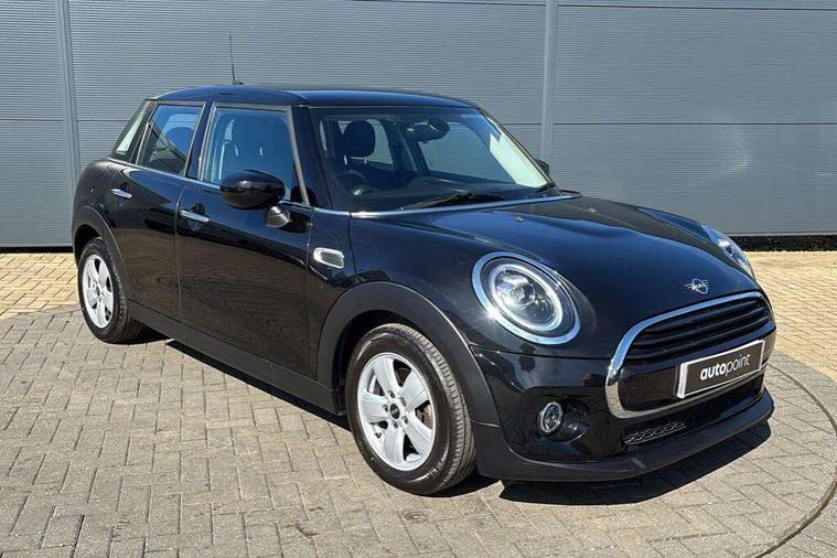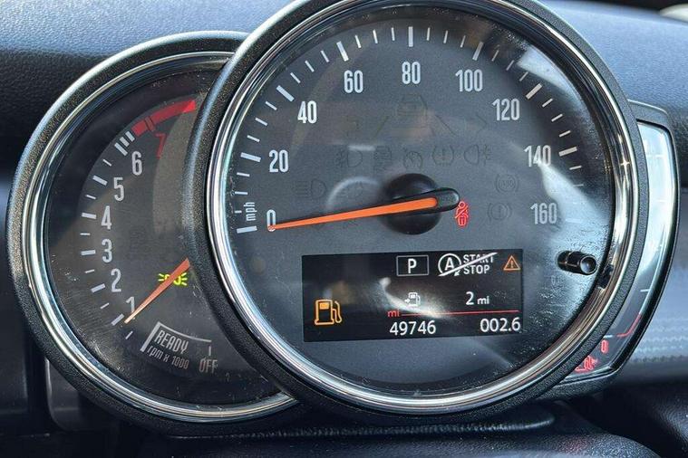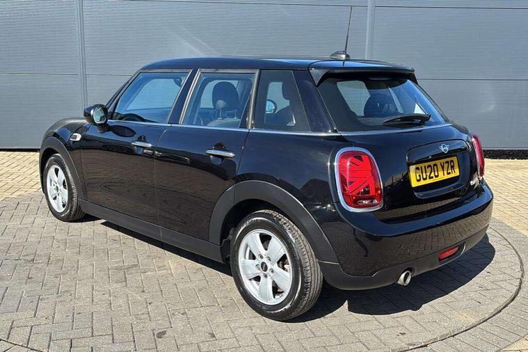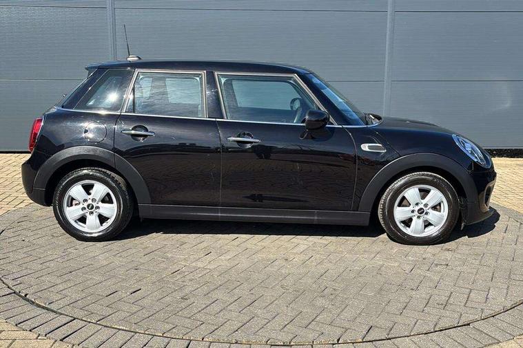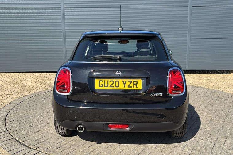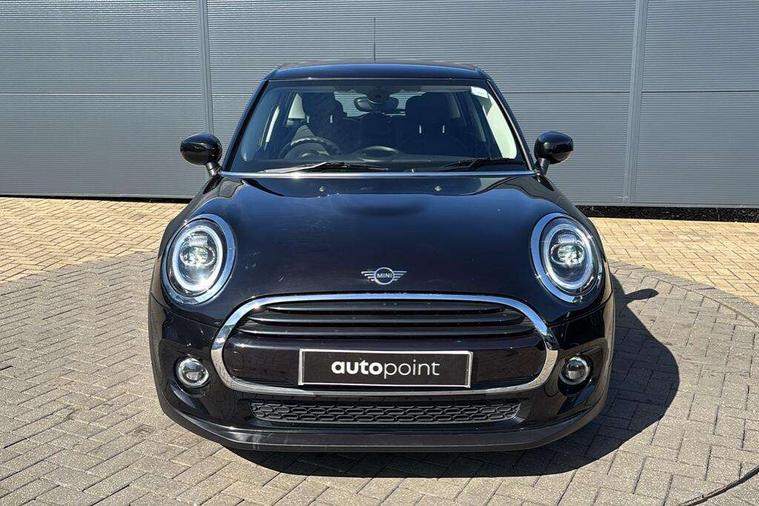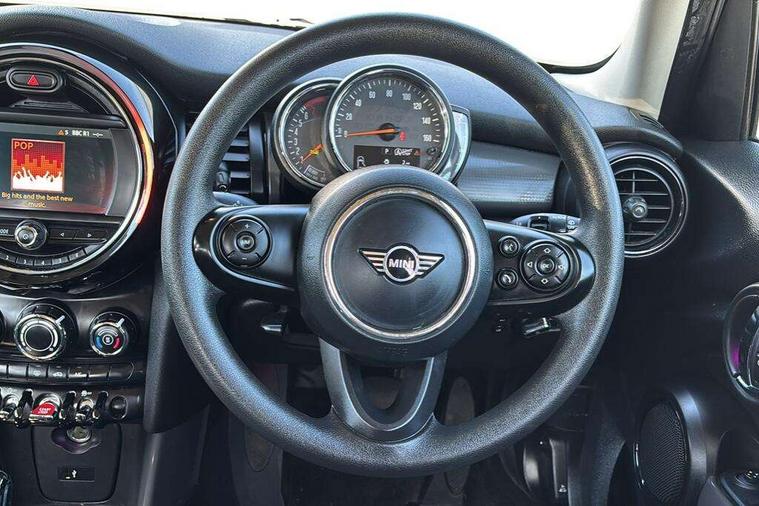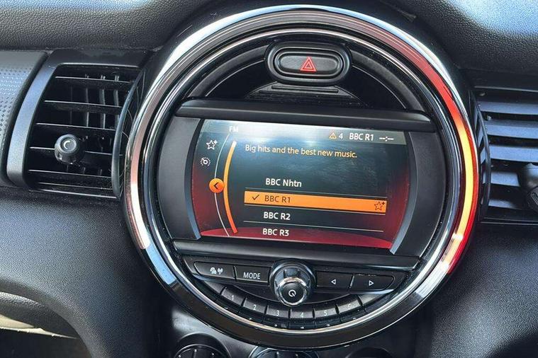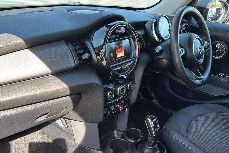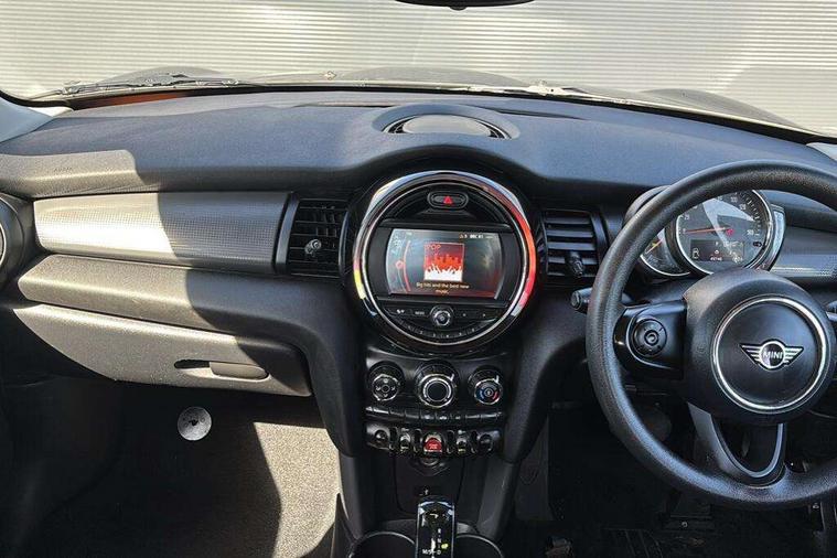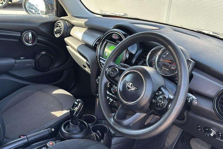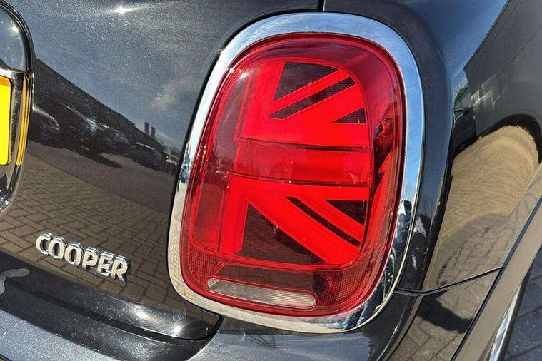 Automatic start/stop function with brake energy recuperation, Compatible mobile phone bluetooth with audio streaming, Electro-mechanical speed dependant steering assistance, Instrument cluster, Mini E-call, MINI TeleServices, On board computer, Service interval indicator, Double Vanos system, Fully variable valve control, Gear change indicator display, High precision injection, Steptronic transmission with double clutch, 6.5" touchscreen with LED ring, FM tuner and DAB digital radio, Automatic headlight activation switch, Body colour fuel filler cap, Chrome border high gloss black slats radiator grille, Dynamic brake lights, Electric front+rear windows, Heated rear window, Heated windscreen washer jets, LED headlight with closed ring and daytime driving lights, Left exhaust tailpipe with chrome finisher, Metal door sill strips with MINI imprint, Model logo Cooper on right of tailgate, Rain sensor window wipers, Rear fog lights, Rear LED lights with union jack design, Rear window wiper, Side scuttle panel with integrated indicator, Sun/heat protection glass, White indicator lenses, 12V Accessory socket in centre console, 4 lashing eyes in luggage compartment, 60/40 split folding rear seat, Carbon Black colour line, knee roll and door armrests, Chrome interior highlights, Colour line - Carbon black, Cupholders, Front and rear head restraints, Front and rear isofix with front passenger airbag deactivation, Glove compartment, Height and length steering column adjustment, Interior lighting with 12 basic colours selectable via toggle switch in roof, Leather gearshift lever and handbrake gaiters, LED reading lights, vanity mirror lights, front foot well light and spotlight on front seats, Manual air conditioning, Mechanical seat adjustment, driver seat height adjust, forward/back and front seats backrest, Mini logo projection on floor from drivers exterior mirror, Multifunction steering wheel, Satellite grey headlining, Storage compartments in doors, Sunvisors with vanity mirrors, 3 point seatbelts on all five seats, 6 Airbags - front, side, head and seat belt tensioners, Anti-lock braking system (ABS), DSC - Dynamic Stability Control, Front and rear disc brakes, Hill start assist, Single tone fanfare horn, Tyre pressure monitoring system, Alarm system with tilt sensor, monitoring doors, bonnet interior and tailgate, Electronic vehicle immobiliser, Start/stop toggle with keyless go, Tool kit, Tyre repair kit,