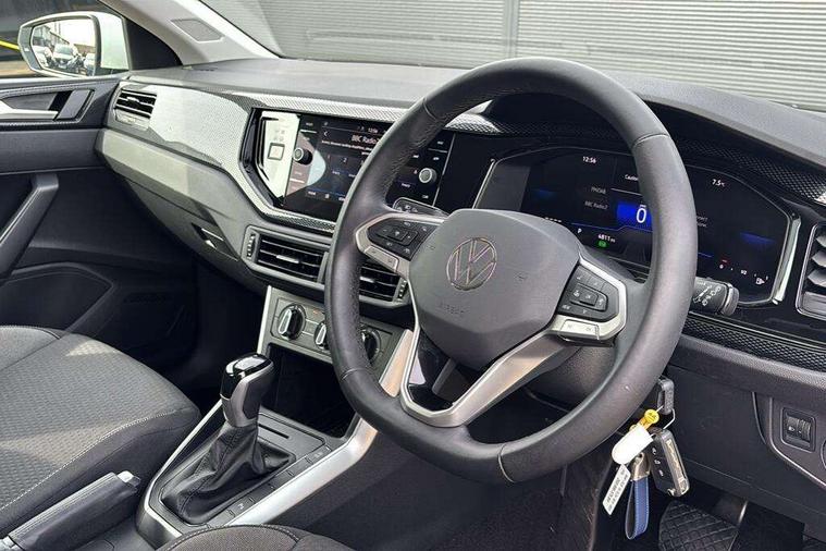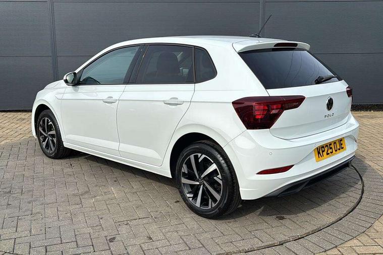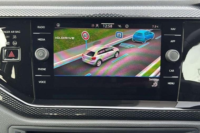 Advanced driver attention and drowsiness monitor, Bluetooth mobile phone interface, Dynamic road sign display, Emergency call service, Multifunction front facing camera for distance control, Park distance control, Power assisted speed sensitive steering, Predictive adaptive cruise control without follow-to-stop and speed limiter, Preparation for navigation system with media and internet package, Preparation for We connect and We connect plus, Rear view camera, Speedo and rev counter, electronic odometer, trip, service interval display and exterior temperature gauge, Standard rear axle, Travel Assist - Lane keeping system and traffic jam assist, Travel assist including emergency assist, Trip computer, Warning signal and warning light for front and rear seatbelts not fastened, Washer fluid level indicator, Wireless app connect, Front wheel drive, Rear shock absorpion, Start-stop system with battery regeneration (recuperation - energy recovery during braking), DAB Digital radio, Diversity antenna for FM reception, Front and rear 6 speakers, Automatic dimming interior rear view mirror, Automatic headlight control with LED separate daytime running lights with coming/leaving home function, Body colour bumpers with chrome inserts, Body colour door handles, Body colour door mirrors, Electric front windows, Engine badge deletion, Headlight range adjustment, Heat insulating and laminated safety glass windshield, LED Headlights, LED rear combination lamps, Power folding adjustable/heated exterior mirrors and front passenger exterior mirror lowering function, Rain sensor, Rear electric windows, Rear fog light, Rear side wing doors, Rear tinted glass from B-pillar backwards approx 65% tinted, Rear windscreen washer and wiper with interval delay, Third brake light, 12V power socket in centre console, 2 front and 2 rear reading lights with switch off delay and dimmer, 2 USB-C ports in the front, 2 USB-C charging sockets on the center console in the rear, 3 rear head restraints, 60/40 split folding rear seat and rear seat bench not split, Ceramique roof lining, Chrome plated radiator grille inserts, air vent surrounds and light switch surrounds, Door and side trim panel, Driver and front passenger seat height adjustment, Driver/passenger sunvisors with illuminated vanity mirrors, Front centre armrest, Front seat backrest storage pockets, Front standard seats, Handbrake lever handle in leather, Hartley/Thomas cloth upholstery, Headliner in recycled material, Isofix child seat preparation easy-fit (for two outer rear seats, and front passenger seat) compatible with I-size, Leather trimmed gear knob, Luggage compartment cover, Luggage compartment lighting, Removable luggage compartment floor, Single front passenger seat, Standard climatic zones, Standard pedal cluster, Three spoke leather wrapped multifunction steering wheel with shifting paddles, Light and vision pack - Polo, 3 point height adj front seatbelts + pretensioners, 3 point seat belt for centre rear seat, 3 point seatbelts, outer rear with ECE lable, ABS, Driver and front passenger airbag with front passenger airbag deactivation, Drivers and front passengers safety optimised head restraints, ESC (Electronic stability control) + EDL (Electronic Differntial lock) and ASR (Traction control), Extended and predictive pedestrian/ cyclist protection, Front assist with autonomous emergency braking (for Adaptive Cruise Control ACC up to 130 mph), Front curtain and side airbags with center airbag, Front disc brakes, Hill hold control, Manual child lock in rear doors, Rear drum brakes, Single tone horn, Tyre pressure loss indicator, Alarm with interior protection, Anti-theft alarm system with interior monitoring, backup horn, and towing protection, Anti-theft wheel bolts, Electronic engine immobiliser, Lava stone black gloss/matt decorative inserts in dash and front door panels, 16" Torsby alloy wheels, Low rolling resistance tyres,