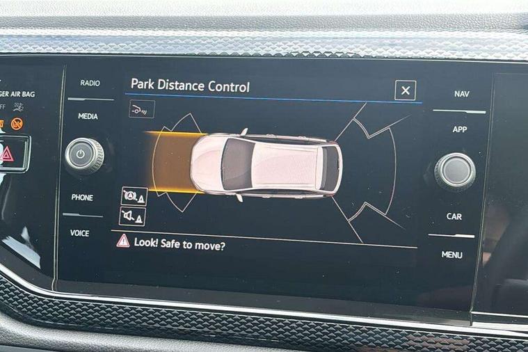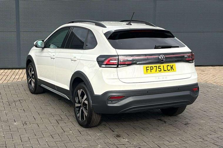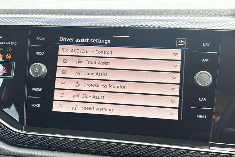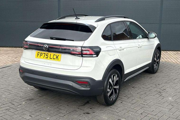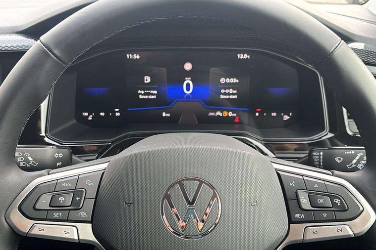 8" Digital cockpit basic display, Advanced driver attention and drowsiness monitor, Dynamic road sign display, e-Call (emergency call), Power Steering, Predictive adaptive cruise control, Rear view camera, Travel assist including emergency assist, Washer fluid level indicator, Wireless Charging including Bluetooth, Start-stop system with battery regeneration (recuperation - energy recovery during braking), Digital radio reception (DAB+), WeConnect plus, Ambient lighting with logo projection, Aspherical driver's exterior mirror, Body coloured bumpers, Body coloured exterior mirror housings and door handles, Electric windows, External USB type C socket and charging sockets, Heat insulating glass windscreen, LED rear combination lamp, LED third brake light, Left convex exterior mirror, Power folding adjustable/heated exterior mirrors and front passenger exterior mirror lowering function, Rear fog light on one side, reversing light on both sides, Rear side wing doors, Rear wash/wipe with intermittent wipe setting, Side windows in heat-insulating glass, from B-pillar and rear window dark tinted, 'Slash/ Austin' Cloth upholstery, 12V socket in centre console, 2 front reading lights, 3 rear head restraints, 3 seat bench in 2nd row, Black carpets, Ceramique headliner, Child seat anchor for child seat system i-Size, 2x top tether and child seat anchor in front on front passenger side, Door and side trim panels in titan black, Driver and front passenger seat height adjustment, Front centre armrest, Handbrake lever handle in leather, Height and reach adjustable steering wheel, Leather trimmed gear knob, Leather wrapped multifunction steering wheel, Luggage compartment floor, Luggage compartment light, Lumbar support for driver's and front passengers seat, Seat covers in titanium black, Single front passenger seat, Split folding backrest with centre armrest and unsplit rear seat bench, Storage compartment under front seats, Sun visors with illuminated vanity mirrors, Titanium black instrument panel, Chrome Package - Taigo, Drivers assistance package - Taigo, Light and sight pack - Taigo, 2 x 3-point seatbelts/outer rear seats with ECE label, 3-point seat belts in front with pretensioner and height adjustment, 3-point seatbelt for centre rear seat, Driver and front passenger airbag with front passenger airbag deactivation, Driver and front passenger safety-optimised head restraints, Electronic stability control, Extended and predictive pedestrian/ cyclist protection, Front and rear disc brakes, Front curtain and side airbags with center airbag, Hill start assist, Manual rear child locks, Single tone horn, Tyre pressure loss indicator, Anti-theft alarm system with interior monitoring, backup horn, and towing protection, Keyless locking and starting system keyless access with safelock, Black (slush) Dashboard, Lava stone black gloss/matt decorative inserts in dash and front door panels, Low rolling resistance tyres,