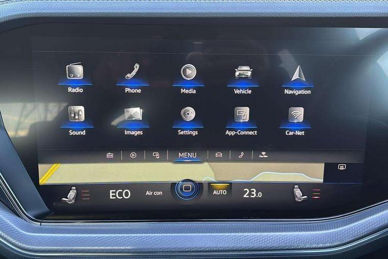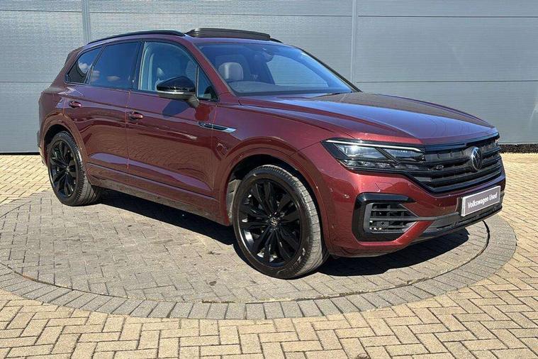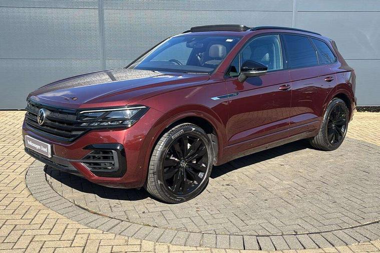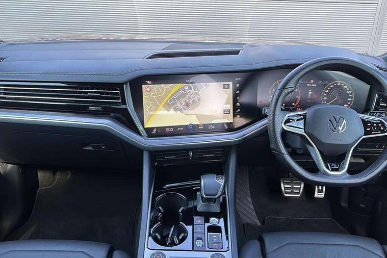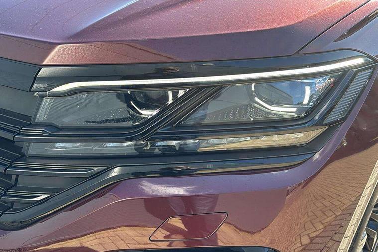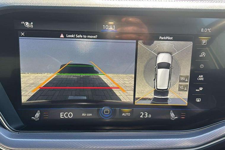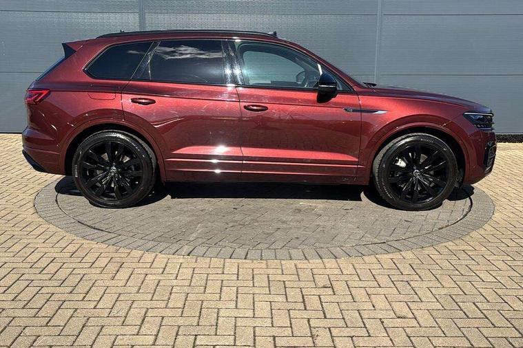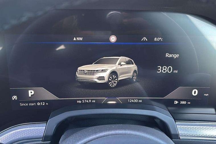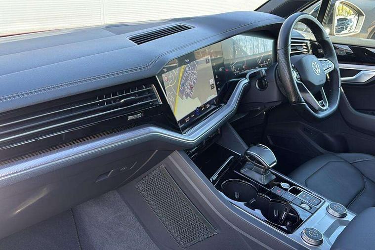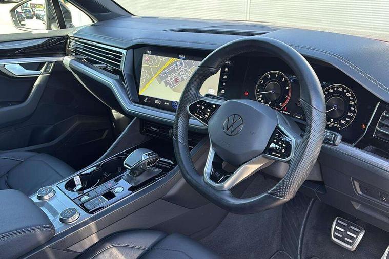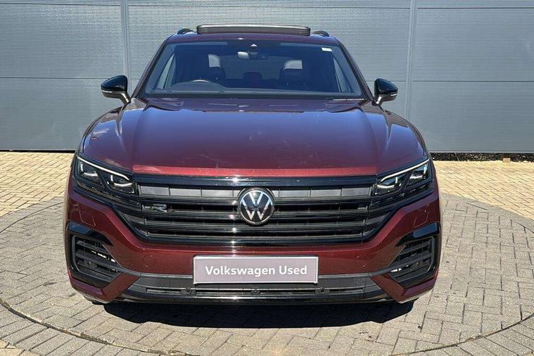 2D/3D map view, ACC - Adaptive cruise control with front assist, forward collision warning, distance monitoring, city emergency brake and speed limiter, Apple car play/Android Auto, Audible and visual fatigue detection system, Bluetooth hands free telephone connection, Car information display, Drive select with Damper control, Driver alert system, Driver profile selection, Dynamic road sign display camera controlled system with visual warning for traffic and road signs, eCall emergency system, Fully electric tailgate + keyless entry and start, Instrument cluster, MirrorLink, Multifunction camera, Multifunction computer premium with 7" colour display, One touch indicators with repeat function, Service interval indicator, Speed sensitive power steering, Start/stop system with regenerative braking, Tailgate power latch, Think blue trainer driver tips and journey analysis, Traffic sign recognition, Voice control system, Wireless Smartphone charger, Torsen limited slip differential, DAB Digital radio, Dynamic navigation based on TMC+, Gesture control for infotainment system, Multi device interface (MDI) with illuminated USB-C connection, Music playback - MP3, WMA and AAC files, SD card slot, Simultaneous pairing of 2 compatible mobile devices, SMS functionality - read, compose and send SMS messages using touch-screen display, Title and cover art display, Volkswagen media control, Adaptive low beam for urban and motorway use, Auto dimming rear view mirror, Automatic coming/leaving home lighting function, Automatic headlights, Black anodised roof rails, Black door mirrors, Black rear diffuser, Black side window surrounds, Black upper and lower grille louvres extending into headlights and radiator grille, Body colour door handles, Body coloured wheel arches, C signature gloss black front air intake, Chromed tailpipe on the left and right integrated in the bumper with trapezoid design, Dusk sensor, Dynamic headlight range control, Electric front tilt/slide panoramic sunroof and fixed rear sunroof, Electrically power adjustable, heated, folding, auto dimming, front passenger exterior door mirror lowering function, Front and rear electric windows, Galvanised body, Gloss black finish B pillar, Gloss black rear diffuser, Headlight washers, Heat insulating darkened glass in side and rear windows, Heated windscreen washer jets, IQ.Light-LED matrix headlight, daytime running light with dynamic cornering light and indicator, LED 3rd brake light, LED rear fog light, LED rear number plate lights, Plastic scuff plates in door apertures, Poor weather light, Puddle lights, Rain sensor, Rear side wing doors, Rear wiper, 12V socket in front and rear centre console and boot, 2 Coat hooks on B pillar, 3 rear head restraints, 3 seat bench in 2nd row, 3 spoke sport heated leather multi-function sports steering wheel with gear shift paddles - generation 2, 4 way adjustable front head restraints, 4 way electric lumbar support for driver and front passenger, 4 zone climate control, 40:20:40 split folding slide/recline rear seat, B pillar vents, Black lower edge of door extending sills, Branded points of interest, Double sun visor for drivier and passenger with LED illuminated vanity mirrors, Electric luggage compartment cover, Folding rear centre armrest with 2 cupholders, Front + rear carpet mats, Front centre armrest with storage box, Gear shift indicator, Height/reach adjust steering wheel, Illuminated air conditioned glovebox, Isofix preparation for 2 rear child seats, Jack and tool kit, Leather trimmed gear knob with gloss black inlay/aluminum trim, Leatherette door trim, LED luggage compartment lighting, Load through provision, Luggage compartment with load lashing rings, Plastic loading edge protection, Rear seat remote release levers, Single front passenger seat, Soul black headlining, Stainless steel pedals, Innovision cockpit pack - Touareg, 3 point front seatbelts with pre-tensioners, ABS, Active bonnet, Automatic post collision braking system, Curtain airbags, Driver/Front Passenger airbags, EBD + Brake Assist, EDL, Electronic parking brake with auto hold, ESC with ASR, Front seat side impact airbags, Hill descent control, Hill start assist, Passenger airbag deactivate switch, Seatbelt warning lamp and buzzer, Three 3 point rear seatbelts, Two tone horn, Volkswagen roadside assistance, Warning triangle and first aid kit, Alarm with interior monitoring in cab, backup horn and towing protection, Child security locks for front and rear doors, Electronic engine immobiliser, Remote central locking, Black decorative trims on the side windows, High gloss black centre console,