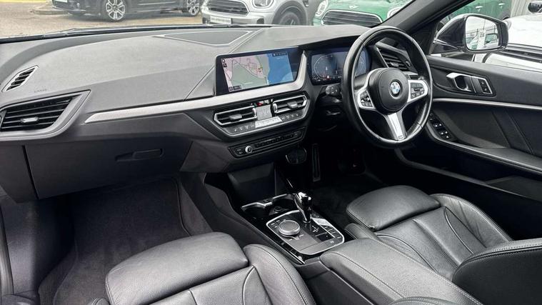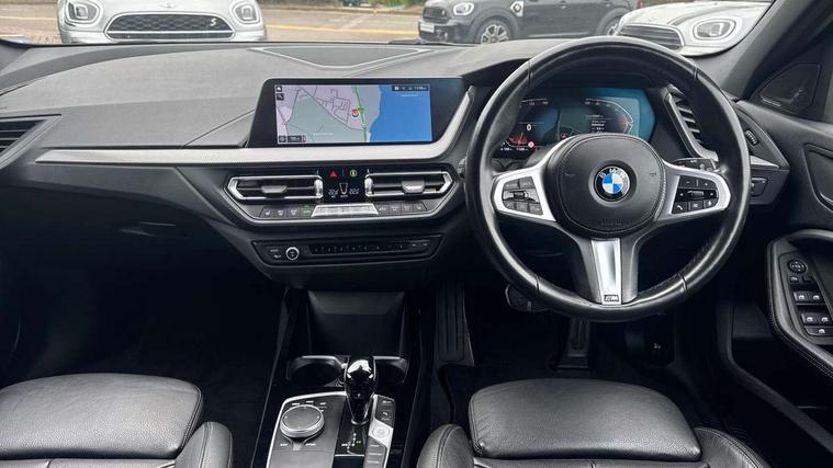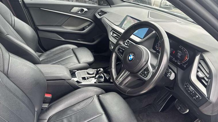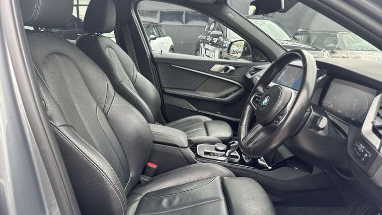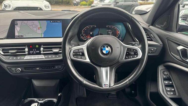 Active guard plus, Attentiveness assist, BMW ConnectedDrive online services, BMW Teleservices, Check Control warning system for monitoring of lights and door/luggage compartment open warning, Cruise control with speed limiter, Eco pro mode, Front axle single joint with specific axle kinematics to minimise drive influences on steering + provide increased rigidity agile driving behaviour, Integrated owners handbook, Lane departure warning system, Oil sensor for level and grade, On board computer, Optimum shift indicator, Personal Profile, Pull away assistant, Rigidly mounted rear subframe - Multi link construction with separate spring / damper configuration and excellent driving characteristics, Speed limit Info including no-overtaking indicator, Aluminium lightweight construction, Anti roll bar front and rear, Balancer shaft, Double VANOS twin scroll turbocharging system, Drive Performance Control, Electronic differential lock, High precision injection, M sport suspension, Petrol Particulate Filter, Twin tube gas filled shock absorbers with degressive characteristic curve, VALVETRONIC engine management, DAB Digital radio, Auto dimming rear view mirror, Automatic headlight beam throw control, Automatic windscreen wipers and automatic headlight, Body colour door handles, Body colour mirror caps, Body colour roof trims, Chrome 'M' logo side designation, Chrome exhaust twin tailpipes round 90mm in left, Chrome kidney grille frame with Satin Aluminium struts, Direction indicator side lights in exterior mirrors, Electrically adjustable exterior mirror with mirror adjustment switch on drivers armrest and aspheric on driver side, convex on passenger side, Fading support, Folding side mirrors with auto dimming/folding wing mirrors with auto dimming, Follow me home headlights, Front and rear bumper system with replaceable deformation elements, Front and rear electric windows with open and close fingertip control, anti trap facility and comfort closing, Front door sill finishers in black plastic with M designation in metallic look, Green tinted heat protection glazing, High gloss shadowline window frame, Recess cover mirror frames and B/C pillar embelisher trim, High level third brake light, Integrated front windscreen with washer jets, LED daytime running lights, LED eyebrow turn indicators, LED front fog lights, Lightweight engineering, Matt black air guide grilles, Matt black wheel arch trim, Model designation on electric bootlid, Nearside reverse light in rear light cluster, Preparation for high beam assistant, Rear fog lights, Rear side wing doors, Rear window wiper, Shark fin antenna, Trailer stabilisation logic, Visible VIN plate, Welcome lighting, 12V power socket in front centre console with blanking plug, 3 rear seat head restraints, 3 seat bench in 2nd row, 3 spoke sports leather steering wheel with black leather and stitching, pearl chrome decorative finish, specific M Badge, Anthracite headlining, Black boot net with lashing eyes, Cargo function on 2nd seat row, Child seat ISOFIX attachment for two outer rear seats and front passenger seat with anchorage points, Conditioned based service, Driver and front passenger backrest net on rear, Driver and front passenger seat heating, Driver side folding compartment in instrument panel, Folding rear clothes hook, Four grab handles integrated in roof lining, Front and rear door pockets with bottle holders, Front and rear side armrest integrated into door trim, Front armrest, Front sports seats, Glove compartment, Height adjustable front head restraints, Luggage compartment for bag hooks on left and right, foldable luggage compartment liner and four lashing eyelets, Manual adjust steering wheel, Multi-function controls for steering wheel, Single front passenger seat, Storage compartment in centre console, Storage compartment in luggage compartment, Stowage of the parcel shelf in luggage compartment trim, Sun visors with vanity mirrors and insert tab, Two front centre console cupholders, Two zone automatic air conditioning, Type C two USB ports in rear centre console, Velour floor mats, Additional interior lighting pack - 1 Series, BMW live cockpit professional pack- 1 Series, Connected pack professional - 1 Series, Interior lights pack - 1 Series, M Sport exterior styling aerodynamics pack - 1 Series, 2 tone horn, 3 point seatbelts on all seats, front pyrotechnic belt tensioners, stopper and belt force limiters, rear coded belt buckles, Airbags - Front driver/passenger, front and rear curtain head protection, front side, manual deactivation of front passenger airbag, Anti lock braking system (ABS) with brake assist, BMW emergency call, Brake drying, Braking readiness, Child proof locking system in rear door, City braking function, Comfort modes, Cornering brake control, Crash sensor activating of airbags, Unlocking doors, hazard warning lights, fuel cut off, interior lighting+activation of safety battery terminal clamp, Driver and front passenger seat belt security check, Dynamic stability control + (DSC+), Dynamic Traction Control - DTC, Electrically operated hand brake including automatic hold function, Front and rear disc brakes, Seatbelt warning, Side impact protection, Tyre pressure monitoring system, Warning triangle and first aid kit, Central locking switch for all doors, fuel filler cap and luggage compartment, Deadlocking function system to all doors, Drive away locking system on all doors and luggage compartment with de-activated in iDrive settings, Locking wheel bolts, Remote control with integrated key with High-gloss Black inlay and M designation and 1 button for open/ close lock, window, open luggage compartment, Start/stop button illuminated in centre console with keyless engine start and auto start stop deactivation button, Thatcham Cat.1 alarm and immobiliser, Wheel slip limitation close to the actuator (ARB), Contrast stitching on instrument panel, 18" Burnished M double spoke bi-colour alloy wheels finished in orbit grey - styl
