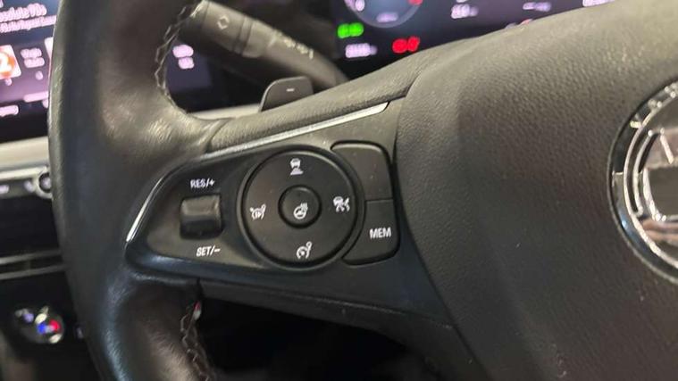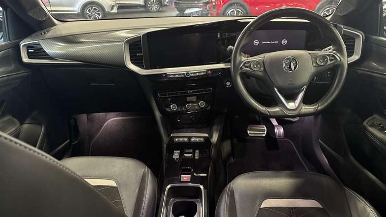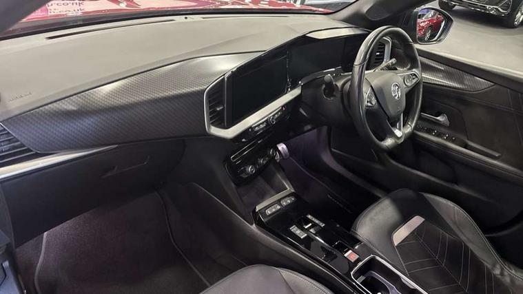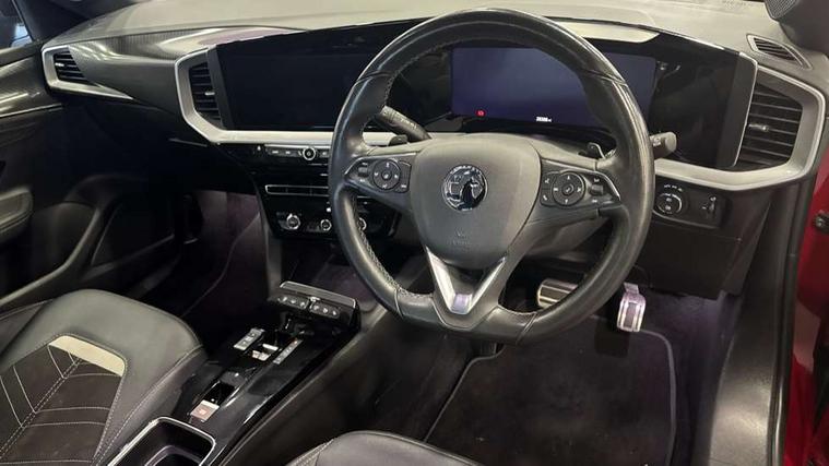 12" digital instrument cluster, Adaptive cruise control with speed limiter, Advanced Park Assist, Digital instrumentation with digital speedometer, rev counter, fuel and water temperature gauge, Driver information display with multi function trip computer, audio info, digital clock and outside air temperature with ice warning function, Engine start/stop button, EV information display, Front and rear parking distance sensors, Front camera and radar system, Lane keep assist system (LAS) with Lane departure warning system (LDWS), Lane positioning assist, Lights on audible warning, Panoramic rear view camera, Power assisted speed sensitive steering, Side blind spot alert and flank guard, Smartphone integration compatible with Apple CarPlay and Android Auto, Speed sign recognition, Sports switch with engine sound enhancement, Start/stop system, Traffic sign recognition, Vauxhall connect with e-Call, Wireless charging for smartphone, 8 speed automatic transmission, 6 speakers, AM/FM stereo radio with 36 station presets, DAB Digital radio, Flexible Roof Mounted Radio Aerial, Front USB connection, Mobile phone portal - bluetooth connect, vehicle microphone, handsfree calls, SMS read out and reply, phone book access, Multimedia Navi Pro with 10" colour touchscreen, RDS with traffic programme, Steering wheel mounted controls, Two rear USB sockets, Adaptive brake lights, Automatic headlamp levelling, Automatic lighting control with tunnel detection, Automatically dimming anti dazzle rear view mirror, Black door mirror housings, Black front and rear bumper inserts, Black Griffin logo and vizor frame, Black roof, Black upper window moulding, Body colour door handles, Body colour front and rear bumpers, Dark tinted rear side windows + tailgate window, Electric adjustable/heated/folding door mirrors + puddle lights, Electrically operated front and rear windows with safety auto reverse and one touch up/down facility, Hazard warning lights, Heated rear window+rear wash/wipe, High beam assist with anti glare, Integrated black tailgate spoiler, IntelliLux Matrix LED headlights with adaptive forward lighting, LED 3rd brake light, LED daytime running lights, LED front fog lamps, LED side repeat indicators, LED tail lights, Rear foglight, Rear side wing doors, Reversing light, Solar heat absorbing windscreen and windows, Two speed rain-sensitive windscreen wipers with variable intermittent wipe, Windscreen and side window demist vents, 12V Accessory socket, 3 seat bench in 2nd row, 3 spoke flat bottomed leather steering wheel with satin chrome bezel, 4 speed fan with illuminated controls, 6 way manual adjustable driver fore/aft, up/down with reclining seatback, 6 way manual adjustable front passenger fore/aft, up/down with reclining seatback, 60/40 split folding rear seat, Air recirculation system, Alcantara/leather upholstery, Alloy sports pedals, Black headliner, Cabin particulate filter - removes dust, airborne particles and pollen, Centre console with two cup holders at front and one in rear, Chrome effect interior door handles, Door pockets with two litre capacity, Driver and passenger sun visors with vanity mirror, Driver seat with lumbar and massage function, Electronic climate control (ECC), Four adjustable facia vents, Four load restraint lashing eyes, Front centre armrest with storage, Front head restraints, Front map reading lights, Front seat back storage pockets, Fully carpeted load area, Heated front seats, Heated steering wheel, Interior courtesy light, Interior tailgate handle, Luggage compartment cover, Luggage compartment lighting, Movable boot floor, Reach + rake adjustable steering column, Single front passenger seat, Steering wheel mounted paddle shift, Three height adjustable rear seat head restraints, Twin gas assisted tailgate struts, Black Pack with badge - Mokka, 2x Isofix child seat fitting on outer rear seats, 3x3 point rear seat belts, Anti-lock braking system (ABS), Child proof locks on rear doors, Cornering brake control, Deactivation switch for front passenger front and side impact airbags, Drag torque control, Driver and front passenger airbags, front seat side impact airbags, full size curtain airbags, Driver drowsiness alert system, Electronic brake force distribution, Electronic Stability Programme (ESP), Emergency brake assist, Enhanced automatic emergency braking with pedestrian detection, Forward collision alert at all speed, Hill start assist, Inertia reel lap and diagonal seatbelts for all seats, Seatbelt unfastened audible warning and warning light, Straight line stability control, Traction control, Tyre pressure monitoring system, Electronically protected audio equipment, Engine deadlock immobiliser, Freewheeling door locks, Key left in ignition audible warning, Keyless entry and start, Locking wheel nuts, Remote control central locking, Remote control ultrasonic security alarm system, Visible vehicle identification number, Atlantis black trim inserts of front doors, Black facia with silver trim insert, Instrument panel bar in polar silver, 18" bi colour alloy wheels,