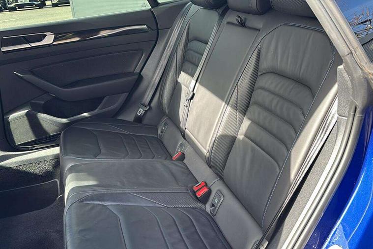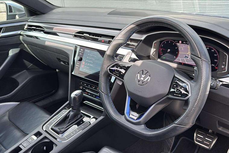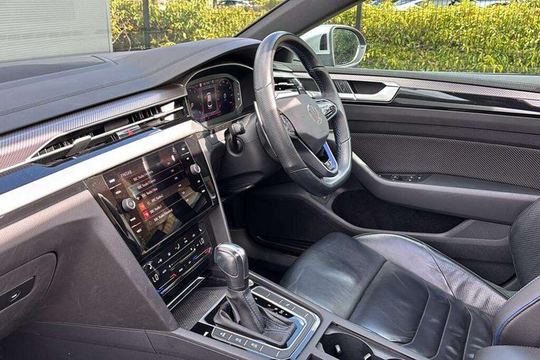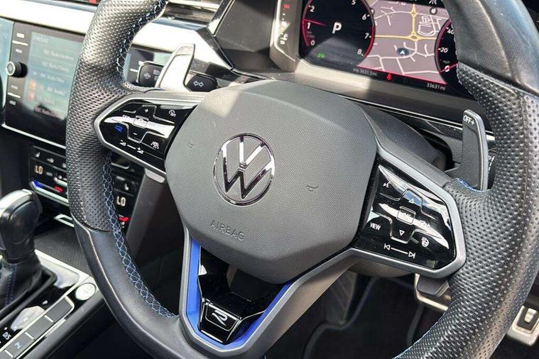 Adaptive cruise control (ACC) with speed limiter, front assist (reacting vehicles pedestrian and cyclists) and follow to stop, App connect including wireless Apple CarPlay, Camera for warning system, Digital cockpit with 10.25" high resolution TFT display screen with customisable menus and information, Driver alert system with fatigue detection, Driver profile selection including ECO function, Dynamic road sign display, eCall - Emergency call service for SOS calls to emergency response, Emergency assist, Hands free boot opening, Press and drive key, Progressive steering, R driving mode button on steering wheel, Side scan lane change assist including rear cross traffic alert, Speedo and rev counter, electronic odometer, trip, service interval display and exterior temperature gauge, Tailgate, Travel assist - Lane keeping assist and traffic jam assist, Voice activation for telephone and navigation, All wheel drive - 4Motion, Start/stop function with battery regeneration, XDS electronic differential lock, Premium USB cable in choice of either Apple or Android smartphone compatibility, Auto dimming interior rear view mirror, Automatic headlights, Body colour door handles, Body colour side skirt, Body coloured top and matt black lower door mirrors with integrated indicators, Chrome side window surrounds, Dynamic headlight range control, Electric folding door mirror, adjustable, heated with front passenger exterior mirror lowering function, External USB-C data socket with increased charging performance in front, Front and rear electric windows, Front and rear stainless steel door sill protection, Front windscreen washers and wipers with 4x interval delay, Heat insulating side and rear windows, Heated rear windscreen, Heated windscreen washer jets, LED 3rd brake light, LED rear combination lamp with dynamic indicators, LED rear number plate lights, Left and right chrome effect twin trapezoid exhaust tailpipe surrounds, Panoramic sunroof with tilting and sliding including integrated roller blind, R Line design body coloured bumpers, R logo light projection, R logo on radiator grille, side panels and rear, R specific radiator grille, R specific rear bumper and R specific diffusor in black, Rain sensor, Rear boot spoiler, Rear fog lamp on one side and reversing lamp on both sides, Rear side wing doors, Rear tinted glass from B pillar backwards, approx 65% tinted, Rear wash/wipe, 12V socket in front centre console, 12V socket on rear of front centre armrest, 14way electric adj front seats with lumbar + ergoComfort driver seat with memory/massage, comfort entry, integrated front headrest + door mirror memory, 3 rear head restraints, 3 seat bench in 2nd row, 30 colours interior ambient lighting, 60:40 split folding rear seat backrests with centre armrest, Air care climatronic 3 Zone electronic air conditioning with automatic air recirculation, Black roof lining, Chrome trim on upper and lower air vents extending across cockpit, Driver and front passenger sunvisor with vanity mirror, Front cupholders x 2, Front footwell illumination, Glovebox, Heated front seats, Height/reach adjust steering wheel, Isofix child seat preparation easy fit for two outer rear seats, Luggage compartment lighting, Nappa leather upholstery with side bolster and headrest, Pedals and footrest in stainless steel, Premium sports seats with R-logo, R performance leather wrapped heated multi-function sports steering wheel with touch controls and larger shifting paddles, blue stitching and R-logo, R specific floor mats with R-logo and stitching, Removable luggage compartment cover, Single front passenger seat, Split folding front seat backrest with front centre armrest, Two LED front reading light, 18" performance brakes, 3 rear three point seatbelts, ABS+EBD+Brake assist, Child locks on rear doors, Driver airbag and front passenger airbags with deactivation switch including driver knee airbags, Electronic parking brake, Electronic stability control (ESC) and Electromechanical brake booster, Front disc brakes, Front side airbags with curtain airbags, Hill start assist, Pro active occupant protection to detect critical situations with elevated accident potential from the front, R performance torque vectoring, R specific blue brake calipers, Rear disc brakes, Three point height adjust front seatbelts + pretensioners, Two tone horn, Tyre pressure loss indicator, Tyre pressure monitor, Warning buzzer for seatbelts if unfastened, Warning triangle, Alarm with interior protection with deactivation via infotainment system, Electronic engine immobiliser, Keyless entry system including start/stop button on centre console, Remote central locking, Aluminium decorative inserts, Chrome trim on lower doors in front and rear, Leatherette insert on door and side trim panel in foam film, Piano black decorative inserts in centre console, R specific decor inlay aluminium black carbon,