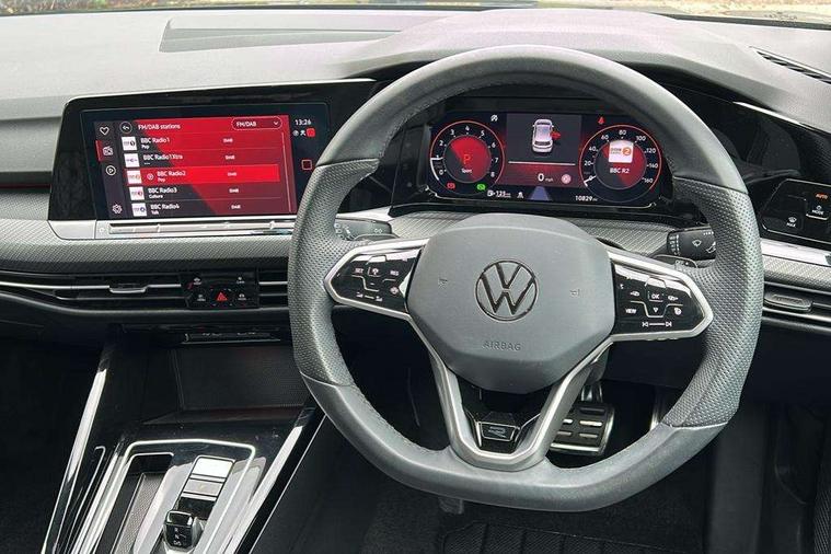 Adaptive cruise control (ACC) with speed limiter and front assist (reacting to vehicles pedestrians and cyclists), Car2X communication, Digital cockpit pro - 10.25" high resolution TFT dash display screen with customizable menus and information, Driver alert system, Dynamic road sign display, eCall - Emergency call service for SOS calls to emergency response, Lane assist, Mobile phone interface with wireless inductive charging function, Multifunction camera for distance control, PAS, Speedo, rev counter, electronic odometer, trip, service interval display, exterior temperature and fuel gauge, Start/Stop function, USB-C ports in the front and rear centre console with increased charging performance, Warning buzzer and light for front seatbelts unfastened, Wireless app connect, Petrol Particulate Filter, XDS electronic differential lock for improved traction and handling, Premium USB cable in choice of either Apple or Android smartphone compatibility, Auto dimming rear view mirror, Automatic headlamp activation with Coming home and Leaving home feature, Automatic headlights, Body colour door handles, Body colour door mirrors with integrated indicators, Body colour rear roof spoiler, Electrically heated and adjustable door mirrors with memory feature, Front and rear electric windows, Heat insulating glass windscreen, Heated rear windscreen, High level 3rd brake light, Highway light, LED License plate illumination, R Line body coloured bumpers, Rain sensor, Rear fog light on one side and reversing lights on both sides, Rear lights incorporating LED technology, Rear side wing doors, Rear tinted glass 65% light absorbing from B pillar backwards, Rear windscreen washer and wiper with interval delay, Welcome light, 12V socket in front centre console, 12V socket in luggage compartment, 3 rear head restraints, 3 seat bench in 2nd row, Ambient lighting - Customisable 30 colour ambient lighting, Ambient lighting, exterior illuminated styling elements at the sides, Black roof lining, Brushed stainless steel pedals, Chrome plated surround to electric mirror button, window switch and air vent surrounds, Drivers and front passengers sun visors with vanity mirrors, Front + rear carpet mats, Front centre armrest with storage compartment, Front cupholders x 2, Front passenger seat, Front reading lights x 2 incorporating LED technology, Front seat lumbar support adjuster, Front sports seats, Glovebox, Height adjustable front seats, Height and reach adjustable steering wheel, Isofix child seat preparation for 2 rear child seats and front passenger seat, Luggage compartment lighting, R Line door and side trim panel, R Line front seats integrated head restraints, R-Line leather wrapped multi function sports heated steering wheel, Removable luggage compartment cover, Sardegna cloth upholstery with front and outer rear seats Art Velour inner sides of bolsters, Split folding backrest with centre armrest and unsplit rear seat bench, Titanium black instrument panel, Woven fabric storage compartments in front and rear doors, 3 point height adj front seatbelts + pretensioners, 3 rear three point seatbelts, ABS, Child locks on rear doors, Driver and front passenger airbag with front passenger airbag deactivation, Drivers and front passengers safety optimised head restraints, Electronic parking brake with auto hold, ESC (Electronic Stability Control), Extended pedestrian protection measures, Front and rear passengers curtain airbag system including front side airbags, Front centre airbag, Front disc brakes, Front side airbags with curtain airbags, Rear disc brakes, Two tone horn, Tyre pressure monitoring system, Alarm with interior protection and deactivation via infotainment system, Electronic engine immobiliser, Carbon grey decorative inserts in dash and front door trim panels, High gloss black centre console,