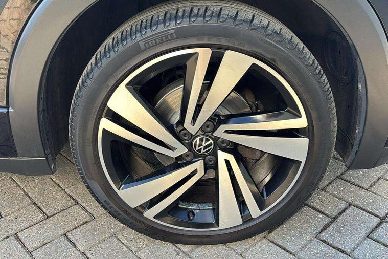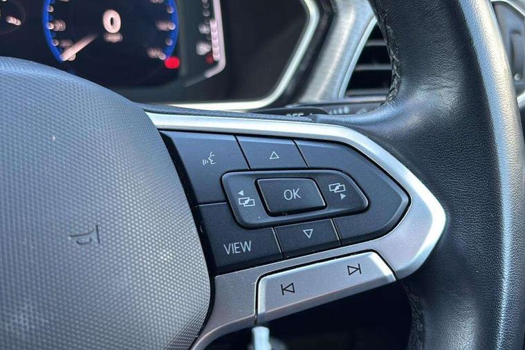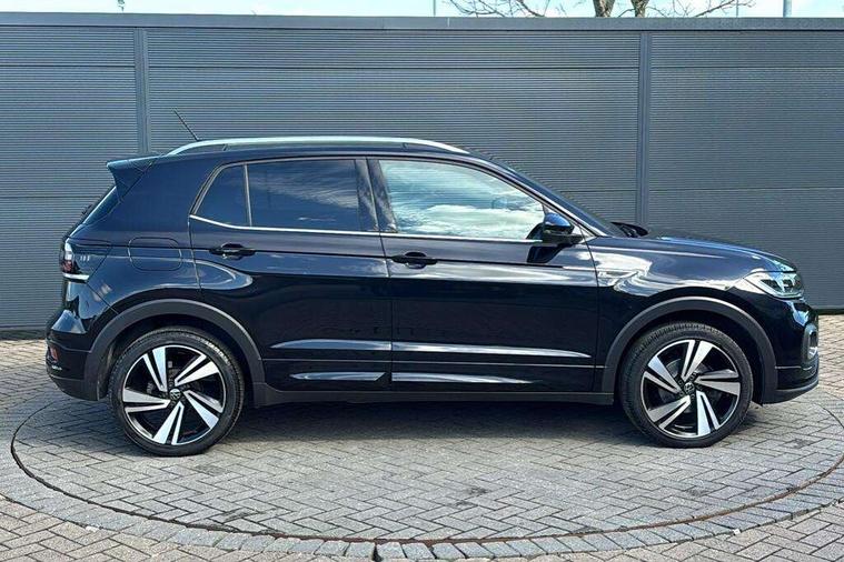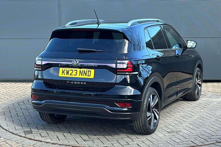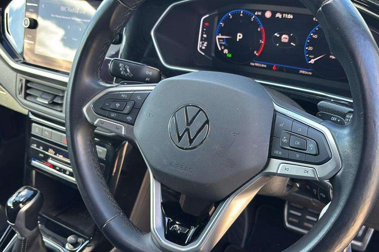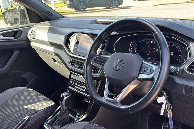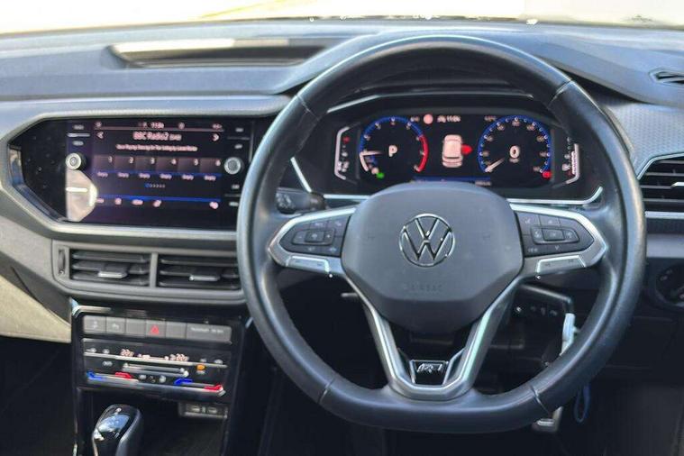 'Lights On' Reminder warning buzzer, 2D/3D map view, Active info display - 10.25" High resolution TFT dash display screen, Adaptive cruise control including front assist, forward collision warning, autonomous emergency braking, speed limiter, Blind spot monitoring, Bluetooth telephone and audio connection for compatible devices, Car information display, Driver alert system, eCall emergency call system, Lane assist, Low washer fluid warning light, Multifunction computer with visual gear change recommendation for fuel consumption, Operating permit alteration, Power assisted speed sensitive steering, Speed limit display, Speedo, rev counter, electronic odometer, trip, service interval display, exterior temperature and fuel gauge, Stop/start system, Tailgate, Warning sound and light for doors and tailgate open, Warning sound and light for front seatbelts unfastened, We connect plus preparation, Wireless Car net app connect with Apple CarPlay, combined functionality of Apple CarPlay/Android Auto and MirrorLink, Battery regeneration during braking, Misfuel prevention device, 2x USB connection with USB charging sockets and in rear centre console, DAB Digital radio receiver, Diversity antenna for FM reception, Multi device interface (MDI) with USB connection, Music playback - MP3, WMA and AAC files, Premium USB cable for Apple or Android smartphone compatibility, Simultaneous pairing of 2 compatible mobile devices, SMS Functionality, Three route options - Fast, Short, Eco, Title and cover art display, Automatic hazard lights activation under emergency braking, Body colour door handles, Body colour door mirrors with integrated indicators, Body colour rear roof spoiler, Body coloured bumpers, Dusk sensor + automatic driving lights, Electrically foldable, adjustable and heated door mirrors with reverse activated kerb view adjustment on passenger's side, Front and rear electric windows, Front fog lights with static cornering function, Galvanised body, Heated rear window, LED third brake light, Lower door sills and door pillars in black, Radiator grille with chrome trim and chrome bezel front fog lamp, Rear fog light on one side, reversing light on both sides, Rear lights incorporating LED technology, Rear side wing doors, Rear tinted glass 65% approx light absorbing from B pillar backwards, Rear window aerial, Rear windscreen washer and wiper with interval delay, Reflectors in all doors, Silver roof rails, Stainless steel door sill protection, Tailgate with integrated roof spoiler, Unique R Line badging, Windscreen wipers/ intermittent wipe + 4 position delay, 12V Accessory socket in centre console, 2 Front and rear reading lights incorporating LED technology, 2 Zone electronic climate control with automatic air recirculation, 3 rear head restraints and 3 rear three point seat belts with ECE label, 3 seat bench in 2nd row, 60/40 split folding rear seat backrest, Ambient lighting and sourround lighting, Black headlining, Branded points of interest, Brushed stainless steel pedals, Carbon flag cloth upholstery, Drawer under drivers seat, Driver and front passenger sunvisor with vanity mirror, Driver's sunvisor with ticket holder, Dust and pollen filter, Front and rear carpet mats with contrast stitching, Front centre armrest with storage compartment, Front footwell illumination, Front seat back storage pockets, Front seat R Line logo with rear seat backrest, Front sports seat with height and lumbar adjustment, Glovebox, Heating and fresh air system with 4 stage blower, Height/reach adjust steering wheel, Instrument lighting white adjustable panel illumination, Interior light with delay, Isofix child seat preparation for 2 rear child seats, Leather trimmed three spoke multifunction steering wheel with contrast stitching and aluminium inserts with R Line logo, Luggage compartment cover, Luggage compartment lighting, Moveable and foldable Rear bench seat, Scuff plates in door apertures, Steering wheel paddle shift, Storage compartment in drivers and front passengers door, R Line styling pack - T-cross, 3-point seat belts in front with electric tensioner + height adjustment, Anti-lock Braking System (ABS) with Hydraulic Brake Assist (HBA), Automatic post collision braking system, Driver and front passenger safety-optimised head restraints, Drivers and Front Passengers airbags with front passengers airbag deactivation switch, ESC with EDL, ASR, EDTC and trailer stabilisation function, Front and rear curtain airbags, Front seat side impact airbags, Hill start assist, Pre crash preventive occupant protection, Proactive passenger protection system in combination with front assist, Rear door child safety locks, Rigid safety cell with front and rear crumple zones, Single torn horn, Tyre pressure loss indicator, Volkswagen roadside assistance, Alarm with interior protection and deactivation via infotainment system, Child security locks in rear doors, Electronic engine immobiliser, Remote tailgate unlocking using key fob, Race decorative inserts in dash and doors, 18" Nevada black alloy wheels, Breakdown kit,