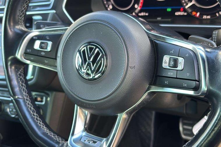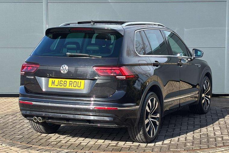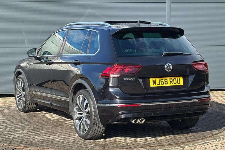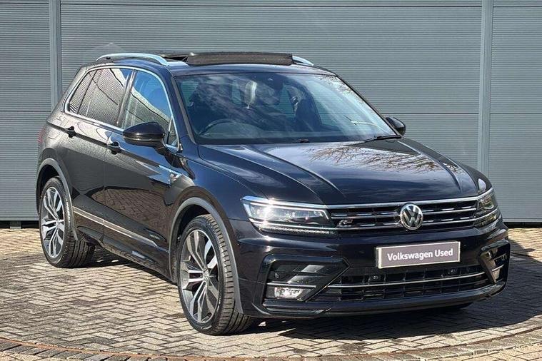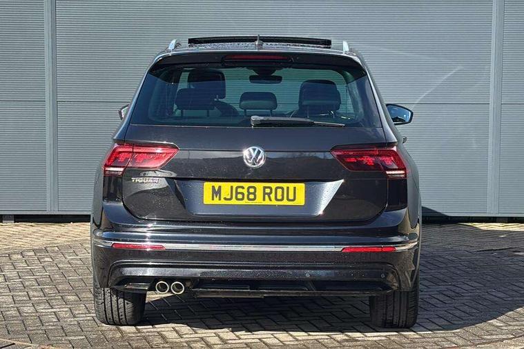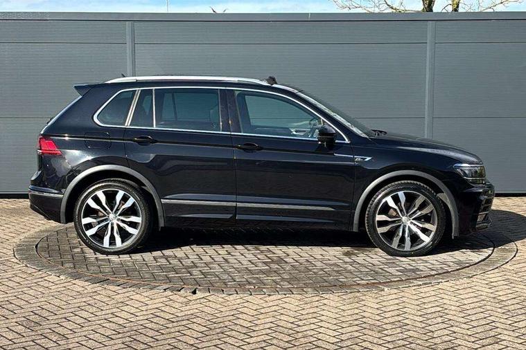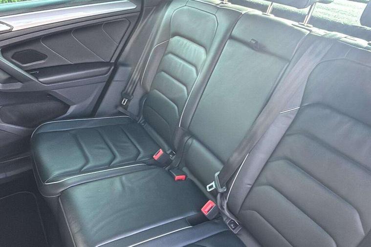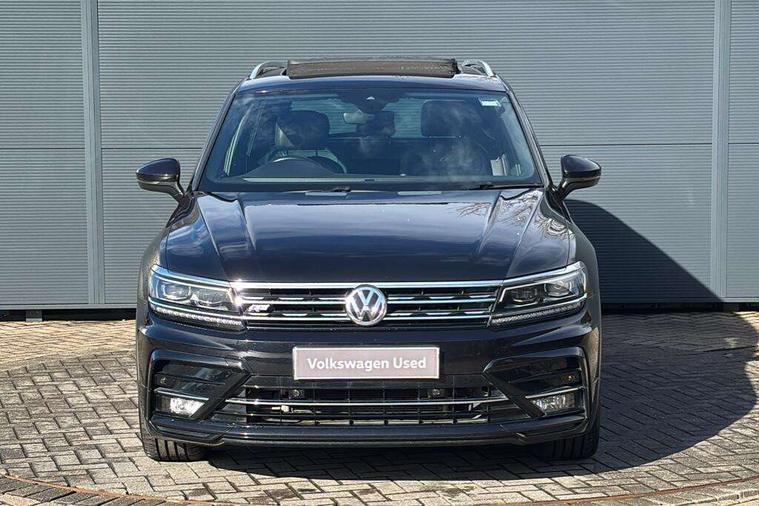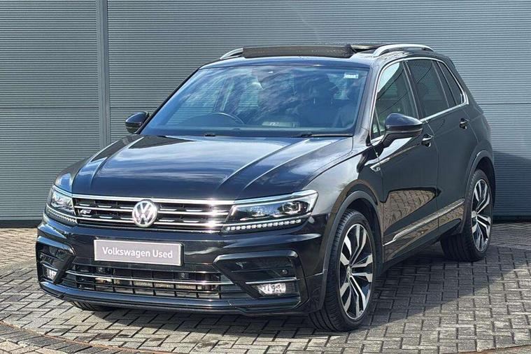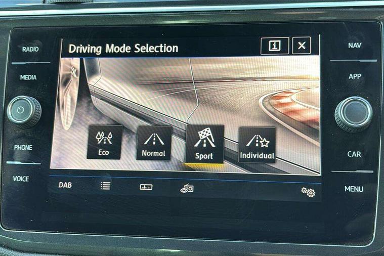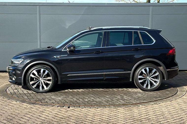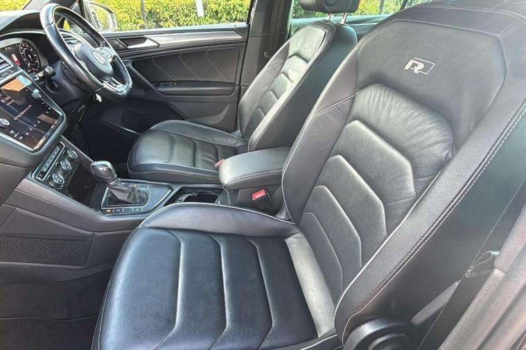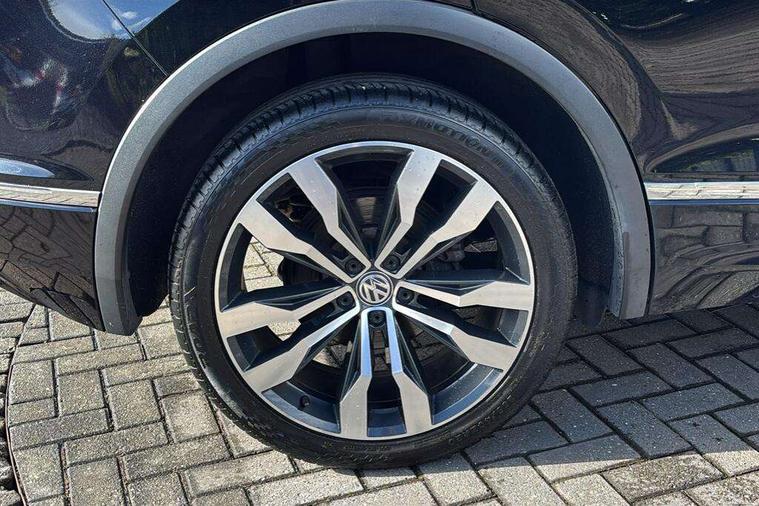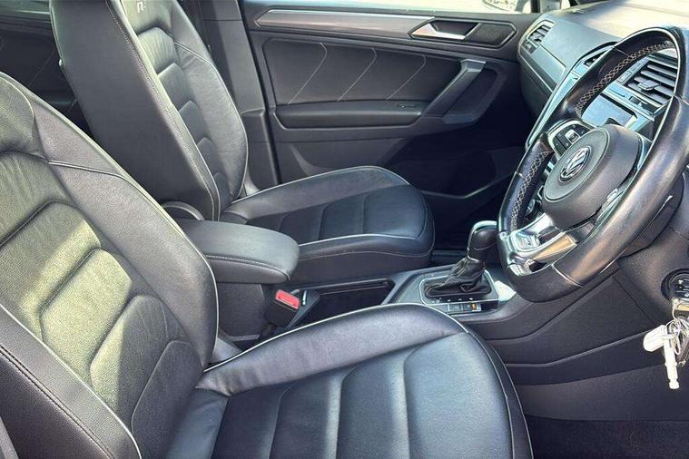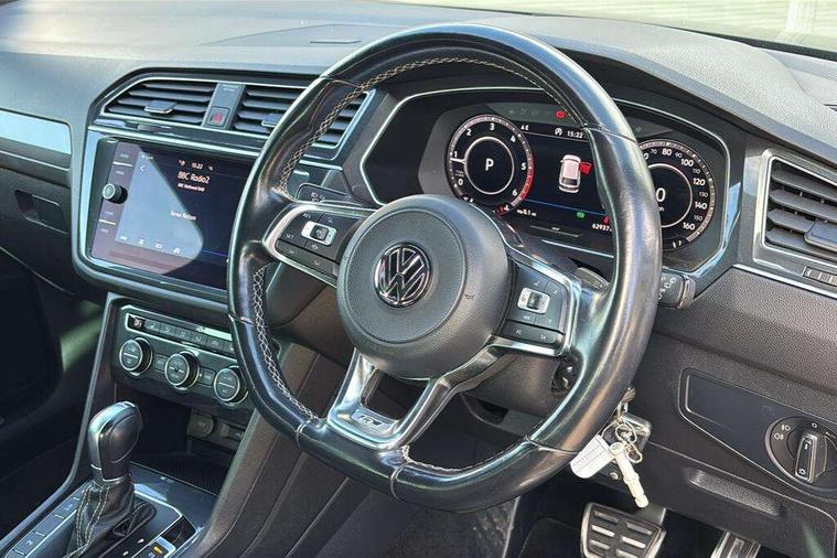 Active information display, Adaptive cruise control, App-Connect, Bluetooth phone integration system, Distance control assist, Driver profile selection, Fatigue detection system, Instrument cluster, Lane assist, Low washer fluid warning light, Outside temperature display, Progressive power assisted steering, Service interval indicator, Speed limiter, Warning lights, Diesel particulate filter, XDS electronic differential lock, 2x USB sockets in front, Aux-in socket, DAB Digital radio, MP3 compatible single CD player, SD card slot, Auto dimming interior mirror, Automatic activation of hazard warning lights, Body colour door handles, Body colour door mirrors, Body colour rear spoiler, Body colour side skirt, Body coloured bumpers, Chrome side window surrounds, Chrome trimmed radiator grille, Coming/leaving home lighting function, Dusk sensor + auto driving lights, Electric folding door mirrors, Electric heated + adjustable door mirrors, Electric panoramic sunroof with sunblind, Front and rear electric windows, Heated rear window, LED headlights with dynamic light assist daytime running lights and cornering front fog lights, LED rear lights, Piano black rear diffuser, R Line body kit, Rain sensor windscreen wipers, Rear windscreen washer and wiper with interval delay, Silver roof rails, Silver under body guard, Tinted windows (B pillar backwards), Windscreen wipers/ intermittent wipe + 4 position delay, 12V Accessory socket in centre console, 3 rear headrests, 3 zone climate control, 4 load lashing points, 40:20:40 split folding rear seats, Bag hook in luggage compartment, Black headlining, Driver + front passenger lumbar support, Foldable passenger seatback, Front + rear carpet mats, Front centre armrest with 12v socket, Front centre armrest with storage + rear 2 air vents + cupholders, Front seatback folding tables, Height/reach adjust steering wheel, Illuminated driver/passenger vanity mirrors, Illuminated scuff plates, Interior light with delay, Isofix Preparation 2 Rear child seats, Leather gear knob, Leather multifunction steering wheel with paddle shift, Load through provision with 2 cupholders when folded, Lockable cooled glovebox, Luggage compartment lighting, Luggage compartment side storage, Map pockets on front seats, Passenger seat height adjuster, Rear cupholders, Removable luggage cover, Sliding/reclining rear seats, Stainless steel pedals, Storage compartment in driver's door, Storage compartment in passenger's door, Storage compartment in rear doors, Storage tray on dashboard, Sunglasses storage, Variable boot floor, Ambient lighting pack - Tiguan, 3 rear 3 point seatbelts, ABS+EBD+Brake assist, Active bonnet, Active pedestrian safety system, Curtain airbags, Driver/Front Passenger airbags, Driver/Passenger whiplash optimised head restraints, Drivers knee airbag, DTC - Drag torque control, Electronic parking brake with auto hold, ESP with EDL + ASR, First aid kit, Front assist including city emergency braking, Front side airbags, Head airbag system, Height adjustable front 3 point seatbelts + pretensioners, Hill hold control, Passenger airbag deactivate switch, Passenger knee airbag, Pre crash system, Rear side airbags, Seatbelt warning lamp and buzzer, Two tone horn, Warning triangle, Alarm with interior protection, Electronic engine immobiliser, Remote central locking with 2 remote folding keys, Aluminium decorative inserts, Chrome door trim inserts, 20" Suzuka alloy wheels + anti theft wheel bolts, Steel space saver spare wheel,