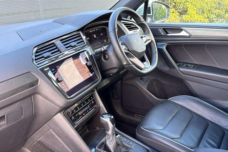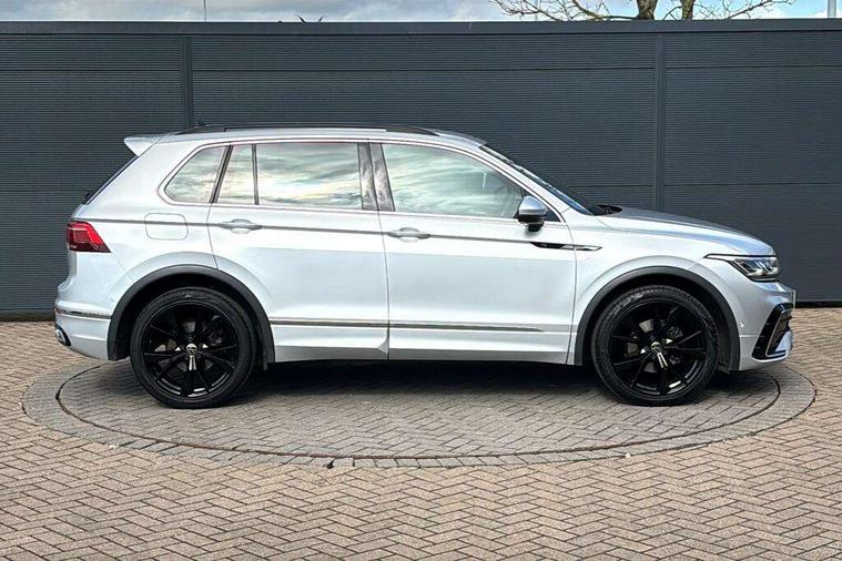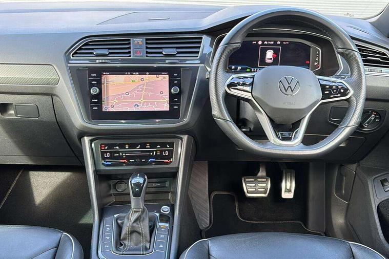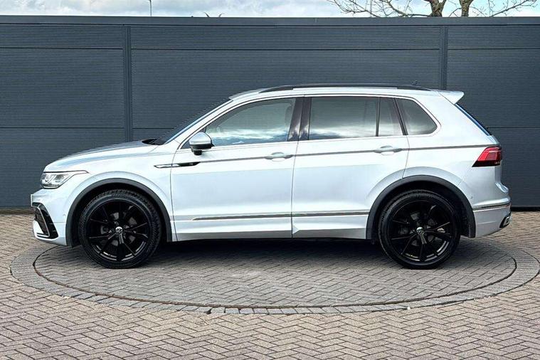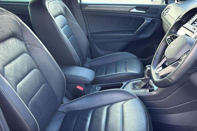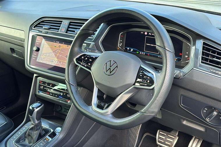 Adaptive cruise control ACC stop and go including speed limiter, App-Connect incl. App-Connect Wireless for Apple CarPlay and Android Auto, Bluetooth phone integration system, Digital Cockpit Pro - Active info display, Distance control assist, Driver alert system, Driver profile selection, Dynamic road sign display, eCall emergency call system, Electromechanical speed sensitive power steering, Engine start/stop button, Lane keeping system Lane Assist, Lights on warning, Multifunction front facing camera, Outside temperature display, Premium multifunction display with multi colour display, Remote control boot opening, Rev counter, Revision / skills operating concept travel assistant, Service interval indicator, Speed limit display, Start/stop system with regenerative braking, Trip computer, Warning sound and light for doors and tailgate open, Battery regeneration during braking, XDS electronic differential lock for improved traction and handling, 2 USB-C ports in the front, 1 USB-C charging socket on the center console in the rear, Diversity antenna for FM reception, Radio, SD card slot, Simultaneous pairing of 2 compatible mobile devices, SMS functionality - read, compose and send SMS messages using touch-screen display, Title and cover art display, Auto dimming interior rear view mirror, Automatic headlight control system, Black roof rails, Body colour door handles, Body coloured bumpers in R Line style, Body coloured door mirrors with integrated indicators, Chrome moldings on the side windows, Coming/leaving home lighting function, Dynamic headlight range control, Front and rear electric windows, Heated rear window, High level 3rd brake light, Laminated safety glass windshield, heat and sound insulating, LED rear number plate lights, License plate carrier in front and rear, Poor weather light and cornering light, Privacy glass for rear side windows and rear window, R Line body kit, R Line side sills, Rain sensor windscreen wipers, Rear exhaust tailpipe, Rear fog lamp, Rear spoiler in R style, Rear windscreen washer and wiper with interval delay, Side and rear windows in heat insulating glass, Third brake light, Trailer Stability Programme, Unique R Line badging, Windscreen wipers/ intermittent wipe + 4 position delay, 12V outlet in center console rear and in luggage compartment, 2 cup holders in front, 2 LED front reading lights, 2 LED rear reading lights, 3 rear headrests, 4 load lashing points, 40:20:40 split folding rear seats, Air Care Climatronic 3 zone automatic climate control with enhanced air filter and controls in the rear, Backrest release for left front seat, Black headlining, Brushed stainless steel pedals and footrest, Carpet mats in front and rear with decorative stitching in Gray, Climate control unit rear with touch function, Door and side trim panel in foam film, insert in leatherette, Front centre armrest, Front footwell illumination, Front seats head restraints (x-adjustment), Height adjustable front seats, Height/reach adjust steering wheel, Instrument lighting white adjustable panel illumination, Interior light with delay, Isofix Preparation 2 Rear child seats, Leather gear knob, Lockable cooled glovebox, Luggage compartment lighting, Luggage net, Rear bench seat asymetrically split folding, longitudinally movable and folding with load-through hatch and center armrest, Remote unlocking for rear seat backrest, Removable luggage cover, Safety optimised front head restraints, Sliding/reclining rear seats, Standard rear seat release, Storage compartment in driver's door, Storage compartment in passenger's door, Storage compartment in rear doors, Storage compartments in luggage area left and right, Storage tray on dashboard, Sun visors with illuminated vanity mirrors, Tool kit, Top front comfort seats, Variable boot floor, height adjustable and removable, Ambience pack - Tiguan R Line, Driver assistance pack plus - Tiguan DSG, 3 point seat belt for centre rear seats, 3 point seat belts with seat belt pretensioners for the outer rear seats, Active bonnet, Curtain airbags for front and rear passengers, Driver/Front Passenger airbags, Drivers knee airbag, Electronic parking brake with auto hold, Electronic Stability Control with driver steering recommendation, ABS, ASR, EDL, EDTC and trailer stabilization, Front assist with autonomous emergency braking (for Adaptive Cruise Control ACC up to 130 mph), Front disc brakes, Front passenger airbag deactivation, Front side airbags, Height adjustable front 3 point seatbelts + pretensioners, Hill hold control, Pedestrian monitoring system, Power assisted brakes, Proactive passenger protection system in combination with front assist, Rear disc brakes, Rigid safety cell with front and rear crumple zones, Two tone horn, Warning sound and light for front seat belts if unfastened, Anti theft alarm system with interior monitoring, backup horn and towing protection, Anti theft wheel bolts, Electronic engine immobiliser, 20" Misano black with diamond turned surface alloy wheels with Airstop tyres,