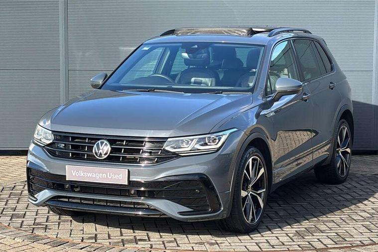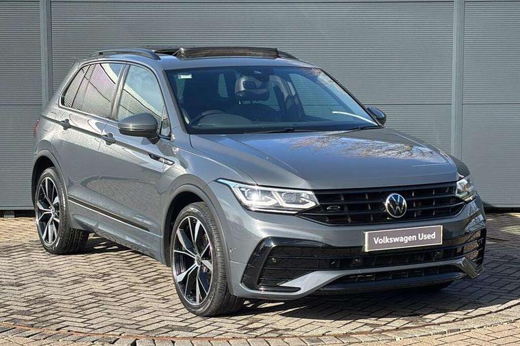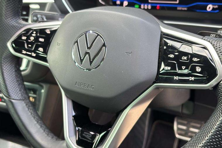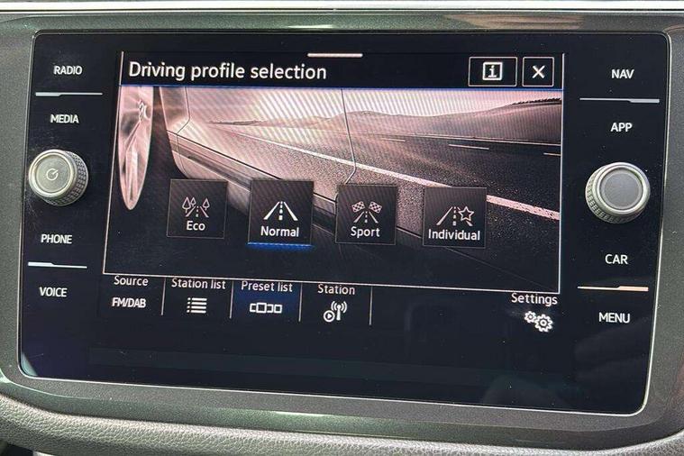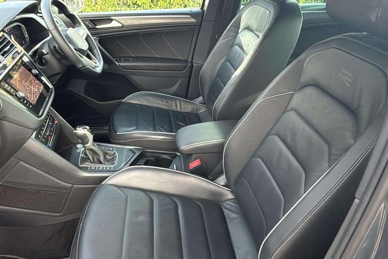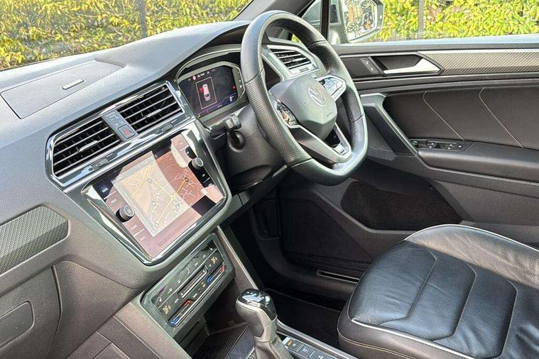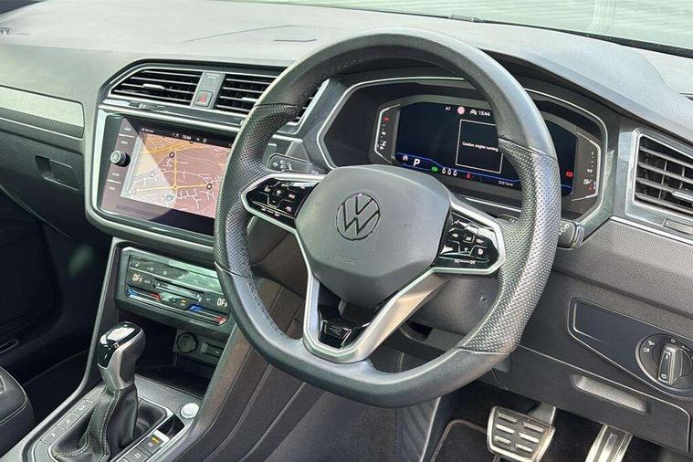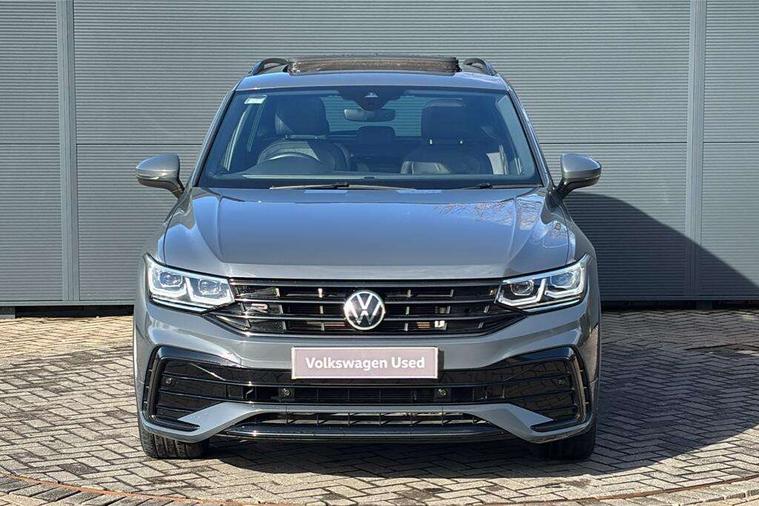 Adaptive cruise control ACC stop and go including speed limiter, App-Connect incl. App-Connect Wireless for Apple CarPlay and Android Auto, Bluetooth phone integration system, Digital Cockpit Pro - Active info display, Distance control assist, Driver alert system, Driver profile selection, Dynamic road sign display, eCall emergency call system, Electromechanical speed sensitive power steering, Lane keeping system Lane Assist, Lights on warning, Multifunction front facing camera, Outside temperature display, Premium multifunction display with multi colour display, Revision / skills operating concept travel assistant, Service interval indicator, Start/stop system with regenerative braking, Warning sound and light for doors and tailgate open, Battery regeneration during braking, Diesel particulate filter, Misfuel prevention device for diesel engine, XDS electronic differential lock for improved traction and handling, 2 USB-C ports in the front, 1 USB-C charging socket on the center console in the rear, Diversity antenna for FM reception, Radio, SD card slot, Simultaneous pairing of 2 compatible mobile devices, SMS functionality - read, compose and send SMS messages using touch-screen display, Title and cover art display, Auto dimming interior rear view mirror, Automatic headlight control system, Black roof rails, Body colour door handles, Body coloured bumpers in R Line style, Chrome moldings on the side windows, Coming/leaving home lighting function, Dynamic headlight range control, Front and rear electric windows, Heated rear window, High level 3rd brake light, Laminated safety glass windshield, heat and sound insulating, LED rear number plate lights, License plate carrier in front and rear, Poor weather light and cornering light, Privacy glass for rear side windows and rear window, R Line body kit, R Line side sills, Rain sensor windscreen wipers, Rear exhaust tailpipe, Rear fog lamp, Rear spoiler in R style, Rear windscreen washer and wiper with interval delay, Side and rear windows in heat insulating glass, Trailer Stability Programme, Unique R Line badging, Windscreen wipers/ intermittent wipe + 4 position delay, 12V outlet in center console rear and in luggage compartment, 2 cup holders in front, 2 LED front reading lights, 2 LED rear reading lights, 3 rear headrests, 4 load lashing points, 40:20:40 split folding rear seats, Air Care Climatronic 3 zone automatic climate control with enhanced air filter and controls in the rear, Backrest release for left front seat, Black headlining, Brushed stainless steel pedals and footrest, Carpet mats in front and rear with decorative stitching in Gray, Climate control unit rear with touch function, Door and side trim panel in foam film, insert in leatherette, Front footwell illumination, Front seats head restraints (x-adjustment), Height adjustable front seats, Height/reach adjust steering wheel, Instrument lighting white adjustable panel illumination, Interior light with delay, Isofix Preparation 2 Rear child seats, Leather gear knob, Lockable cooled glovebox, Luggage compartment lighting, Rear bench seat asymetrically split folding, longitudinally movable and folding with load-through hatch and center armrest, Remote unlocking for rear seat backrest, Removable luggage cover, Safety optimised front head restraints, Sliding/reclining rear seats, Standard rear seat release, Storage compartment in driver's door, Storage compartment in passenger's door, Storage compartment in rear doors, Storage compartments in luggage area left and right, Storage tray on dashboard, Sun visors with illuminated vanity mirrors, Tool kit, Top front comfort seats, Variable boot floor, height adjustable and removable, Ambience pack - Tiguan R Line, Driver assistance pack plus - Tiguan, 3 point seat belt for centre rear seats, 3 point seat belts with seat belt pretensioners for the outer rear seats, Active bonnet, Curtain airbags for front and rear passengers, Driver/Front Passenger airbags, Drivers knee airbag, Electronic parking brake with auto hold, Electronic Stability Control with driver steering recommendation, ABS, ASR, EDL, EDTC and trailer stabilization, Front assist with autonomous emergency braking (for Adaptive Cruise Control ACC up to 130 mph), Front disc brakes, Front passenger airbag deactivation, Front side airbags, Height adjustable front 3 point seatbelts + pretensioners, Hill hold control, Pedestrian monitoring system, Proactive passenger protection system in combination with front assist, Rear disc brakes, Rigid safety cell with front and rear crumple zones, Two tone horn, Warning sound and light for front seat belts if unfastened, Anti theft alarm system with interior monitoring, backup horn and towing protection, Anti theft wheel bolts, Electronic engine immobiliser, 20" Misano black with diamond turned surface alloy wheels with Airstop tyres,