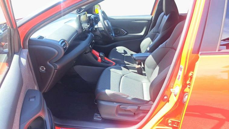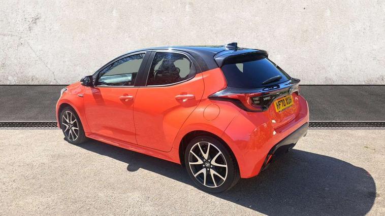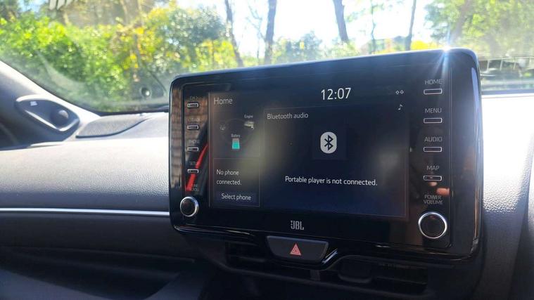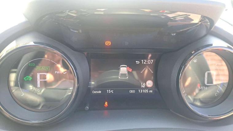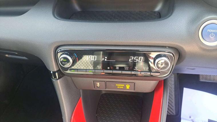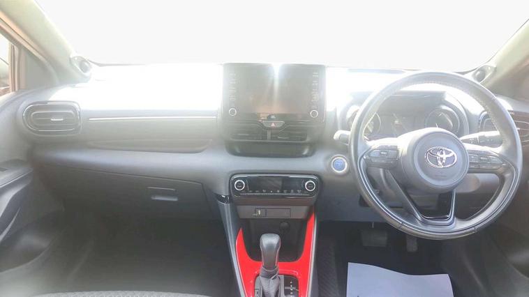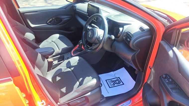 10" full colour head up display, Adaptive cruise control, Adjustable speed limit with speed warning, Blind spot monitoring, Bluetooth connectivity, Colour binocular inspired displays with digital speedometer, E-call, Electric power steering, Hybrid energy display, Multi information display switches on steering wheel, Reversing camera, Smartphone integration with Apple CarPlay and Android auto, Vehicle Stability Control (VSC), 8" Multimedia display touch screen, JBL Premium sound system with 8 speakers, Toyota Touch 2 with DAB, USB connection, Acoustic windscreen glass, Auto dimming rear view mirror, Auto windscreen wipers, Automatic headlights, Automatically retractable door mirrors, Black contrasting colour door mirrors, Electric adjustable heated door mirrors, Follow me home headlights, Front auto power windows with anti jam protection, Full LED rear lights, LED daytime running lights, LED front fog lights, LED Headlights, LED High mounted stop lamp, Painted front grille, Pearlescent bi-tone paint, Rear auto power windows with anti jam protection, Rear privacy glass, Rear spoiler, Shark fin antenna, Turning signal integrated indicators in door mirrors, 3 adjustable rear headrests, 3 spoke leather steering wheel, 60/40 split folding rear seat, Active headrests, Adjustable boot height, Ambient lighting, Coat hooks in rear grab handles, Cup holders (2 front & door), Data Communication Module (DCM) connected services, Dual zone automatic air conditioning, Fabric seat with partial synthetic leather upholstery, Front armrest, Front sport seats, Glovebox, Height adjustable driver's seat, Height adjustable passenger seat, Isofix seat fixing, Leather gearshift, Map pockets on the backs of the front seats, Pollen filter, Shopping bag hooks, Tilt/telescopic steering column, 3 point seatbelts on all rear seats, ABS+EBD+Brake assist, Electronic parking brake, Emergency brake light system (EBS), Front passenger airbag on/off switch, Front seatbelt reminder, Hill start assist control (HAC), Rear child proof door locks, Rear seat belt reminder, Supplemental Restraint System (SRS) 8 airbags: Driver & passenger's airbags, dual side curtain airbags, side impact airbags, front centre airbag, Toyota Safety Sense 2, Precollison + Night time Pedestrian & Cyclist Detection, Lane Trace Assist, Auto High Beam, Intelligent ACC & Road Sign Assist, Tyre pressure warning system, Alarm/immobiliser, Keyless smart entry with push button start, Remote powered central double locking doors, Piano black interior trim, Soft touch instrument panel, Space saver spare wheel,