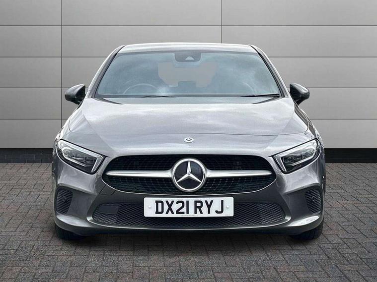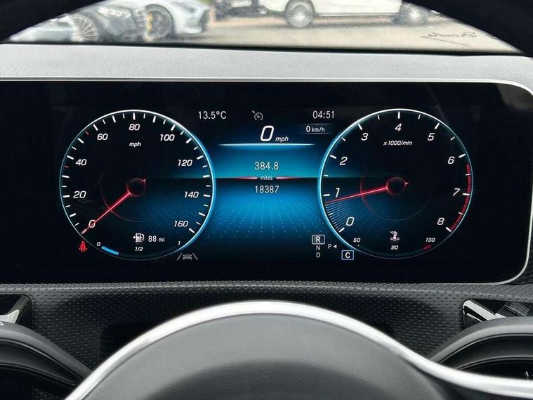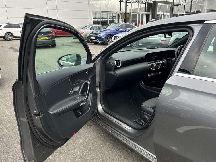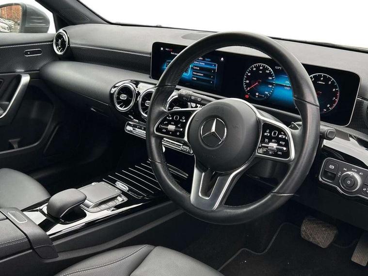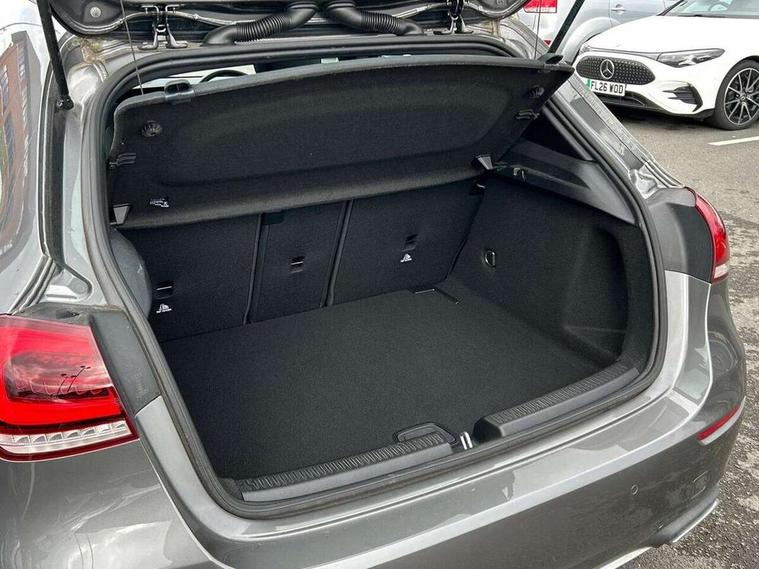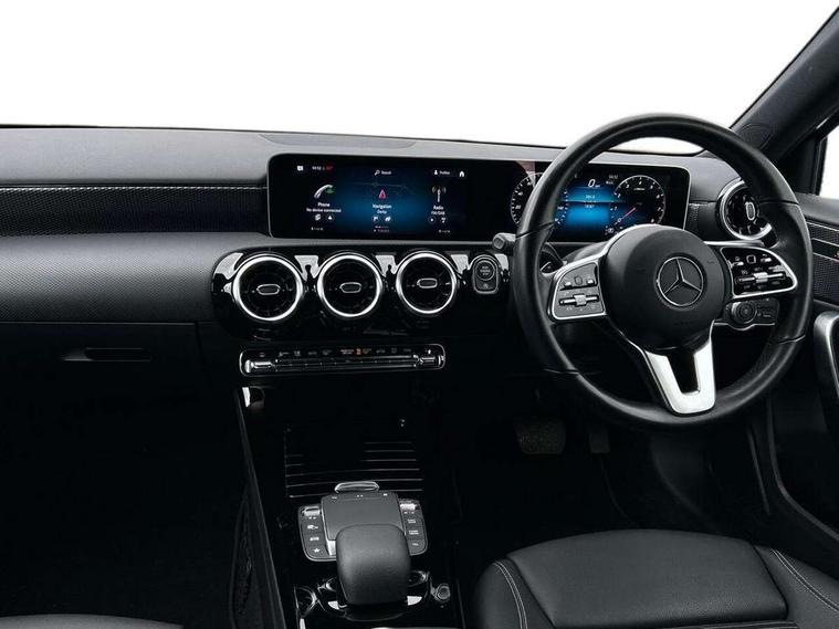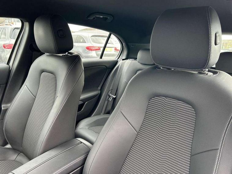 10.25" media display, 180 degree rear view camera with parking guidelines, 7" colour screen in instrument panel, Active parking assist with visual and audible warning of detected obstacles, Attention assist, Brake pad wear indicator warning light, Car wash mode, Cruise control + speed limiter, Direct steering, Dual bluetooth interfaces, DYNAMIC SELECT with a choice of driving modes (ECO, Comfort, Sport and Individual), ECO start/stop function, Fluid level warning indicator for fuel, oil, coolant and washer fluid, Hard-disk navigation, Hey Mercedes Voice activation, Lamp failure indicator, Mercedes me connect including emergency call system, accident recovery, breakdown and maintenance management, Mercedes me remote services, Outside temperature gauge, Owners manual in English, Pre-installation for private car sharing, Preinstallation for Mercedes Benz link, Service indicator (ASSYST), Smartphone integration with Apple CarPlay and Android auto, Speed sensitive power steering, Trip computer, Ultrasonic sensors positioned in the front and rear bumpers, Wireless charging, Lowered comfort suspension, Rear axle torsion beam, 2 USB ports (type C) in rear stowage compartment and one in front of center console, 6 speakers, DAB Digital radio, MBUX multimedia system with DAB digital radio and touchpad including satellite navigation, Mercedes-Benz sound system - 100W, 4 Electric Front and Rear windows, Adaptive brake lights, Black weather strip, Body colour bumpers, Body colour door handles, Body colour side skirt, Body coloured door mirrors, Chrome beltline trim, Diamond radiator grille with black pins with one louvre in silver + chrome insert, Electric adjustable and heated door mirrors with integrated LED side indicators, Exhaust system - Twin visible tailpipes in polished stainless steel, Headlamp assist automatic headlamp activation, Heated glass rear windscreen + timer control, LED high performance headlamps with integrated LED daytime running lights, LED tail lamp, LED third brake light, Radio aerial, Rain sensing windscreen wipers with two sensitivity settings, Rear fog lights, Rear wiper, Window line trim strip in chrome, 3 Spoke leather multi function steering wheel, 40:20:40 split folding rear seats, Artico man-made leather/Fleron fabric upholstery, Auto Mercedes-Benz child seat recognition sensor, Black air vents with surround in silver chrome, Black roof lining, Controller on centre console with chrome surround, Front centre armrest with storage compartment, Front comfort seats with adjustable head restraints, Front door sills with Mercedes Benz lettering, Front seat backs luggage nets, Front seat cushion length adjustment, Gearshift paddles on steering wheel, Heated front seats, Height/reach adjustable steering column, Interior mirror with reading lamps in black and frameless, Manual height adjustable front seats, Rear head restraints, Seat occupancy sensor for front passenger seat, Stowage compartment in centre console with retractable cover, Sunvisors with illuminated vanity mirrors, Touchpad on center console, Twin front cupholders, Two zone thermotronic luxury automatic climate control, Velour floor mats, Light and sight pack - A Class, Mirror package - A Class, Seat comfort pack - A Class, 3 rear 3 point seatbelts, ABS with Brake Assist, Active bonnet, Active brake assist includes forward collision warning system with autonomous braking, Adaptive brake assist with hold function and hill start assist, Childproof locks manually operated for rear doors and electrically operated for rear power windows, Crash responsive emergency lighting, Driver and passenger head and side airbags, Drivers knee airbag, Dual stage driver/passenger airbags, Electronic parking brake, ESP curve dynamic assist, ESP with ASR, Front and rear seatbelt reminder, ISOFIX and top tether child seat fixing points in two outer rear seats, Tyre pressure monitoring system, Warning triangle and first aid kit, Window airbags, Alarm system/interior protection/immobiliser, Keyless Go, Remote central locking and crash sensor with emergency opening function, Urban guard vehicle protection system with immobiliser and interior protection, Black seatbelts, Dark carbon fibre interior trim, 17" 5 twin spoke light alloy wheels painted in matt black with a high sheen finish, Summer tyres, Tirefit sealant kit,