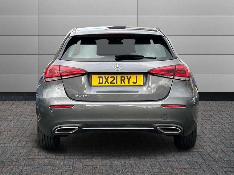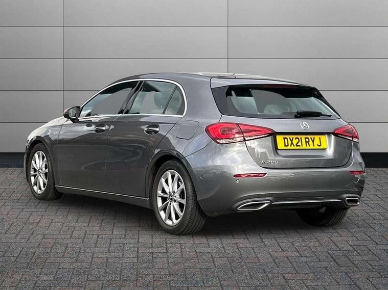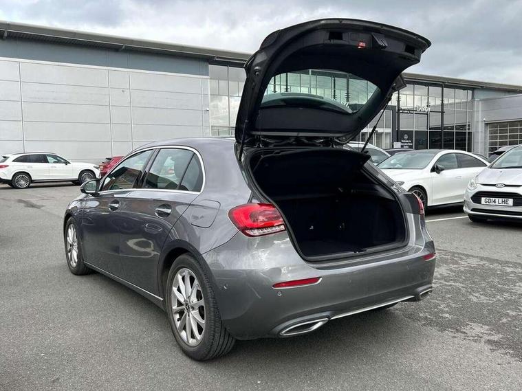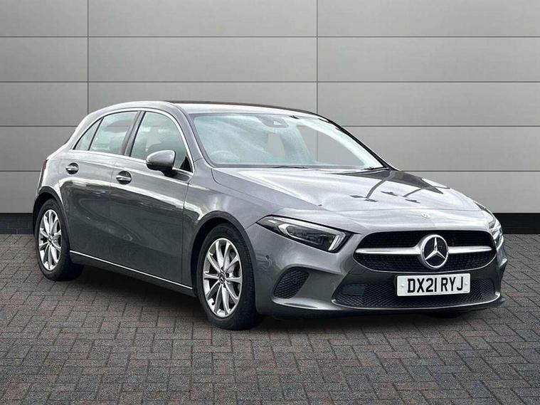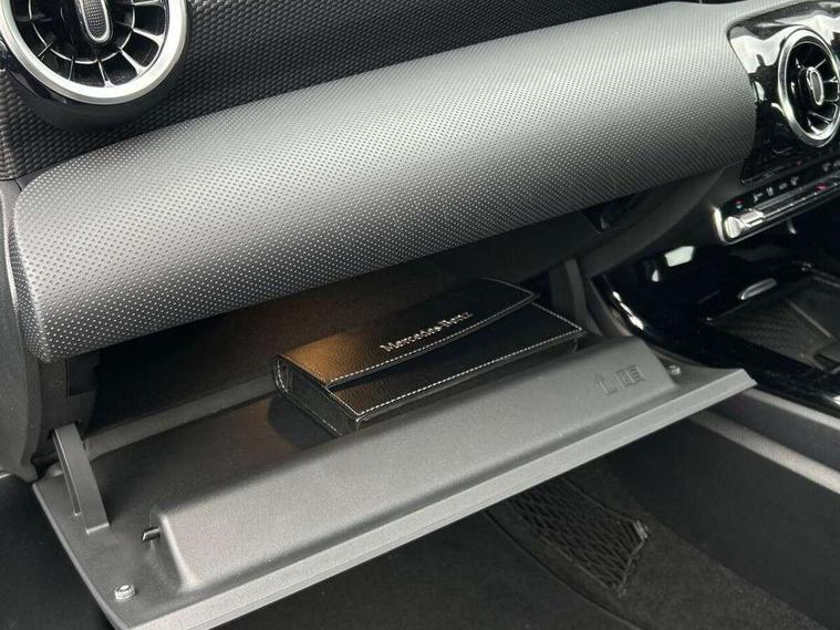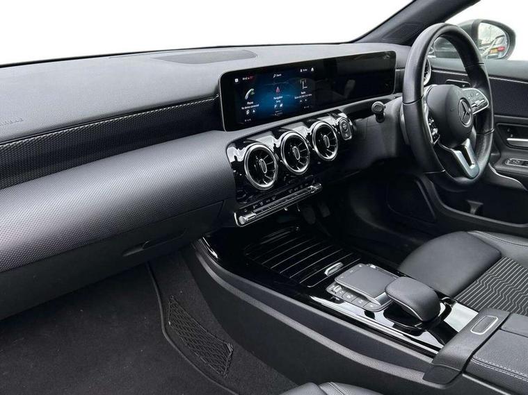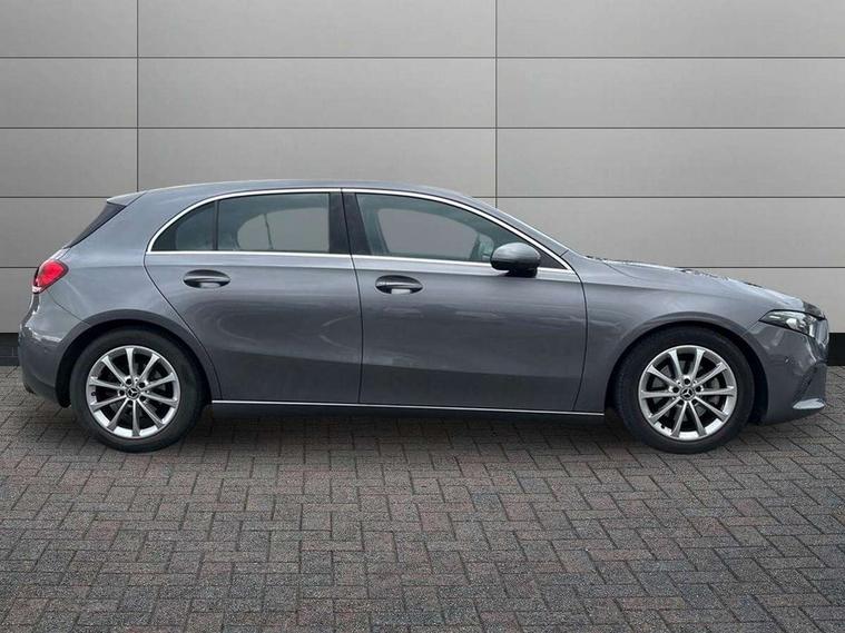 10.25" media display, 180 degree rear view camera with parking guidelines, 7" colour screen in instrument panel, Active parking assist with visual and audible warning of detected obstacles, Attention assist, Brake pad wear indicator warning light, Car wash mode, Cruise control + speed limiter, Direct steering, Dual bluetooth interfaces, DYNAMIC SELECT with a choice of driving modes (ECO, Comfort, Sport and Individual), ECO start/stop function, Fluid level warning indicator for fuel, oil, coolant and washer fluid, Hard-disk navigation, Hey Mercedes Voice activation, Lamp failure indicator, Mercedes me connect including emergency call system, accident recovery, breakdown and maintenance management, Mercedes me remote services, Outside temperature gauge, Owners manual in English, Pre-installation for private car sharing, Preinstallation for Mercedes Benz link, Service indicator (ASSYST), Smartphone integration with Apple CarPlay and Android auto, Speed sensitive power steering, Trip computer, Ultrasonic sensors positioned in the front and rear bumpers, Wireless charging, Lowered comfort suspension, Rear axle torsion beam, 2 USB ports (type C) in rear stowage compartment and one in front of center console, 6 speakers, DAB Digital radio, MBUX multimedia system with DAB digital radio and touchpad including satellite navigation, Mercedes-Benz sound system - 100W, 4 Electric Front and Rear windows, Adaptive brake lights, Black weather strip, Body colour bumpers, Body colour door handles, Body colour side skirt, Body coloured door mirrors, Chrome beltline trim, Diamond radiator grille with black pins with one louvre in silver + chrome insert, Electric adjustable and heated door mirrors with integrated LED side indicators, Exhaust system - Twin visible tailpipes in polished stainless steel, Headlamp assist automatic headlamp activation, Heated glass rear windscreen + timer control, LED high performance headlamps with integrated LED daytime running lights, LED tail lamp, LED third brake light, Radio aerial, Rain sensing windscreen wipers with two sensitivity settings, Rear fog lights, Rear wiper, Window line trim strip in chrome, 3 Spoke leather multi function steering wheel, 40:20:40 split folding rear seats, Artico man-made leather/Fleron fabric upholstery, Auto Mercedes-Benz child seat recognition sensor, Black air vents with surround in silver chrome, Black roof lining, Controller on centre console with chrome surround, Front centre armrest with storage compartment, Front comfort seats with adjustable head restraints, Front door sills with Mercedes Benz lettering, Front seat backs luggage nets, Front seat cushion length adjustment, Gearshift paddles on steering wheel, Heated front seats, Height/reach adjustable steering column, Interior mirror with reading lamps in black and frameless, Manual height adjustable front seats, Rear head restraints, Seat occupancy sensor for front passenger seat, Stowage compartment in centre console with retractable cover, Sunvisors with illuminated vanity mirrors, Touchpad on center console, Twin front cupholders, Two zone thermotronic luxury automatic climate control, Velour floor mats, Light and sight pack - A Class, Mirror package - A Class, Seat comfort pack - A Class, 3 rear 3 point seatbelts, ABS with Brake Assist, Active bonnet, Active brake assist includes forward collision warning system with autonomous braking, Adaptive brake assist with hold function and hill start assist, Childproof locks manually operated for rear doors and electrically operated for rear power windows, Crash responsive emergency lighting, Driver and passenger head and side airbags, Drivers knee airbag, Dual stage driver/passenger airbags, Electronic parking brake, ESP curve dynamic assist, ESP with ASR, Front and rear seatbelt reminder, ISOFIX and top tether child seat fixing points in two outer rear seats, Tyre pressure monitoring system, Warning triangle and first aid kit, Window airbags, Alarm system/interior protection/immobiliser, Keyless Go, Remote central locking and crash sensor with emergency opening function, Urban guard vehicle protection system with immobiliser and interior protection, Black seatbelts, Dark carbon fibre interior trim, 17" 5 twin spoke light alloy wheels painted in matt black with a high sheen finish, Summer tyres, Tirefit sealant kit,