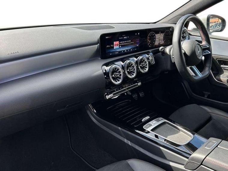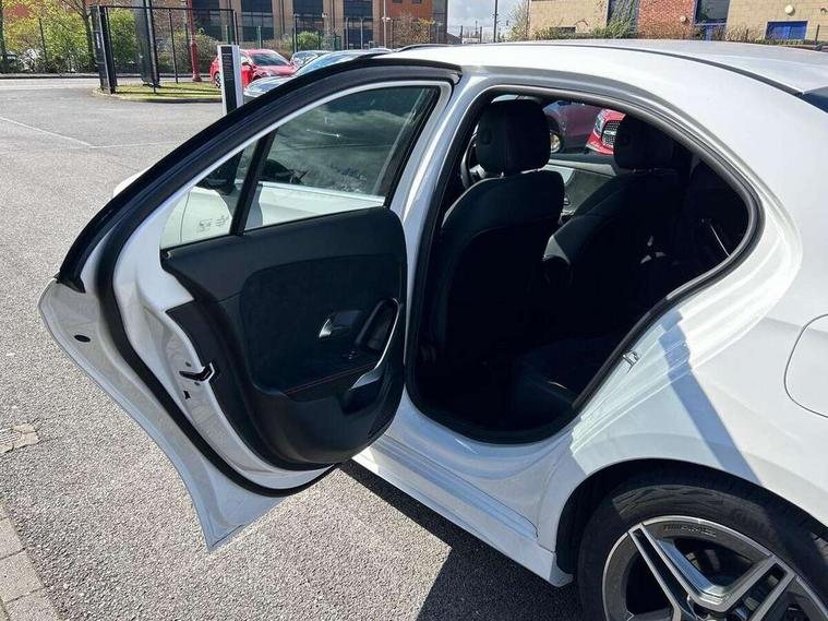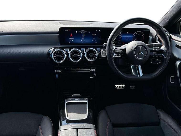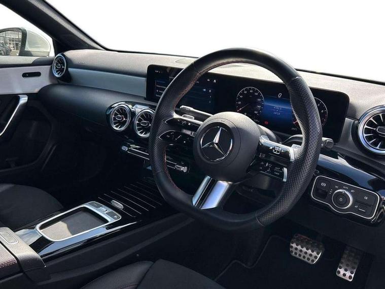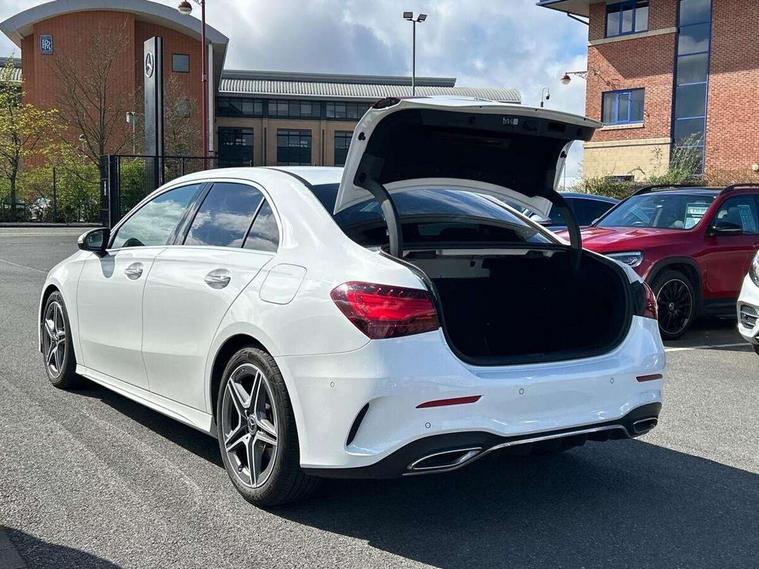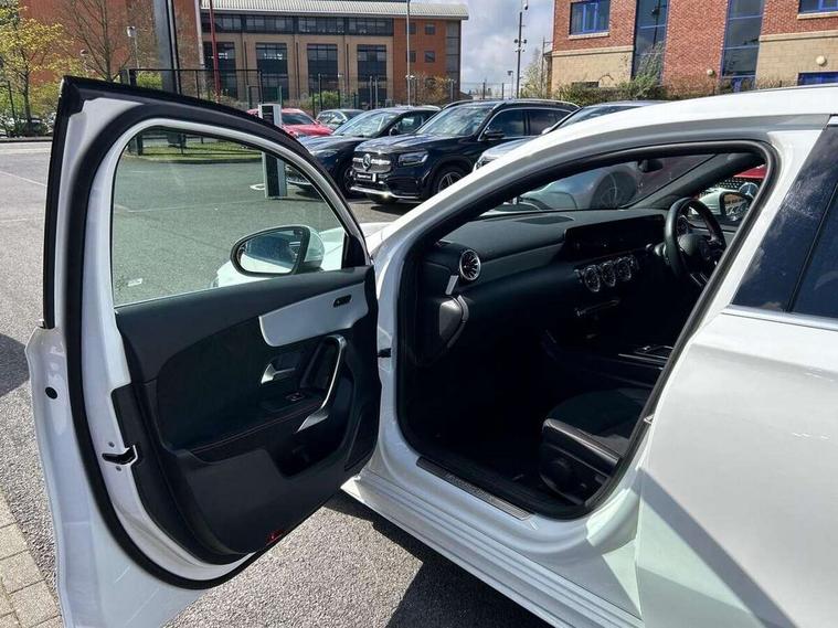 10.25 inch touchscreen central media display, 10.25" Digital instrument cluster display screen, Attention assist, Brake pad wear indicator warning light, Car wash mode, Cruise control + speed limiter, Direct steering, Direction indicators with lane change function, Dual bluetooth interfaces, DYNAMIC SELECT with a choice of driving modes (ECO, Comfort, Sport and Individual), ECO start/stop function, Engine start/stop button, Fluid level warning indicator for fuel, oil, coolant and washer fluid, Hard-disk navigation, Hey Mercedes Voice activation, Lamp failure indicator, Lane keeping system, Mercedes me connect including emergency call system, accident recovery, breakdown and maintenance management, Mercedes me remote services, Outside temperature gauge, Owners manual in English, Pre-installation of private car share, Preinstallation for Mercedes Benz link, Remote boot closing, Service indicator (ASSYST), Smartphone integration with Apple CarPlay and Android auto, Speed limit assist, Speed sensitive power steering, Trip computer in multifunction display with current consumption indicator, Wireless charging, Lowered comfort suspension, DAB Digital radio, MBUX multimedia system, Mercedes Benz sound system (100 W) with 6 speakers, 4 Electric Front and Rear windows, Adaptive brake lights, AMG body styling - AMG front apron with front splitter and AMG rear apron and visible exhaust tailpipe trim elements, Body colour bumpers, Body colour door handles with chrome inserts, Body colour side skirt, Body coloured door mirrors, Chrome beltline strips, Diamond radiator grille with pins in fine star pattern, Electric adjustable and heated door mirrors with integrated LED side indicators, Exhaust system with 2 visible tailpipe trim elements and rear apron, Headlamp assist automatic headlamp activation, Heat insulating dark tinted rear and rear side windows, Heated glass rear windscreen + timer control, LED High Performance headlamps including integral LED daytime running lamps and adaptive highbeam assist, LED tail lamp, Privacy glass, Radio aerial, Rain sensing windscreen wipers with two sensitivity settings, Rear boot, Rear fog lights, Rear side wing doors, Third brake light featuring LED technology, Window line trim strip in chrome, 3 seat bench in 2nd row, 3 Spoke flat bottom leather multi function steering wheel with perforated leather in grip area, 4 way lumbar support, 40:20:40 split folding rear seats, Air conditioning - One zone THERMATIC automatic climate control with automatically controlled air distribution, Automatic child seat recognition sensor, Black air vents with surround in silver chrome, Black roof lining, Brushed stainless steel sports pedals with rubber studs, Floor mats with AMG lettering, Front centre armrest with stowage, Front door sills with Mercedes Benz lettering, Front seat backs luggage nets, Front sports seats with adjustable head restraints, Galvanished gear shift paddles on steering wheel, Heated front seats, Height/reach adjustable steering column, Interior lighting - 64 colour Ambient lighting, Interior mirror with reading lamps in black and frameless, Rear armrest with 2 cupholders, Seat occupancy sensor for front passenger seat, Single front passenger seat, Stowage compartment in centre console with retractable cover, Sunvisors with illuminated vanity mirrors, Twin front cupholders, Keyless go comfort pack - A Class, Light and sight pack - A Class, Mirror package - A Class, Parking pack - A Class, Seat comfort pack - A Class, USB pack plus - A Class, 3 rear 3 point seatbelts, ABS with Brake Assist, Active bonnet, Active brake assist includes forward collision warning system with autonomous braking, Adaptive brake assist with hold function and hill start assist, Bonnet with power domes, Childproof locks manually operated for rear doors and electrically operated for rear power windows, Crash responsive emergency lighting, Driver and passenger head and side airbags, Drivers knee airbag, Dual stage driver/passenger airbags, Electronic parking brake, ESP curve dynamic assist, ESP with ASR, Front and rear seatbelt reminder, ISOFIX and top tether child seat fixing points in two outer rear seats, Tyre pressure monitoring system, Warning triangle and first aid kit, Window airbags, Alarm system/interior protection/immobiliser, Guard 360 degree vehicle protection, Remote central locking and crash sensor with emergency opening function, Black seatbelts, Light longitudinal grain aluminium trim, 18" AMG 5 twin spoke light alloy wheels, aerodynamically optimised, painted in termolite grey with high sheen finish, Summer tyres, Tirefit sealant kit,