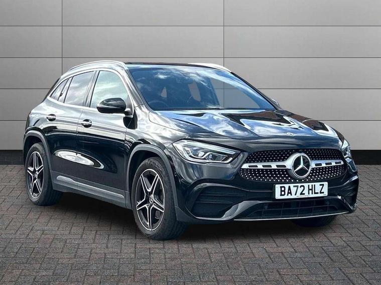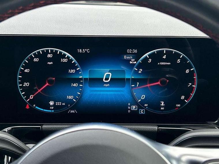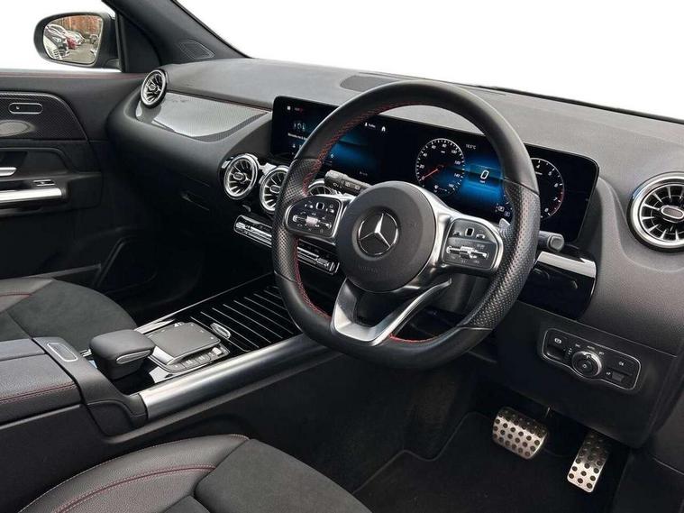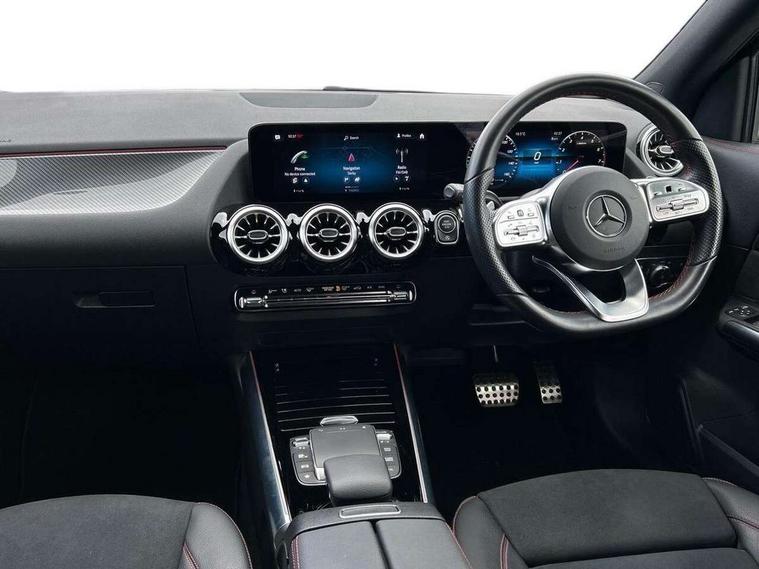 10.25 inch touchscreen central media display, 10.25" Digital instrument cluster display screen, Active lane keeping assist, Attention assist, Cruise control + speed limiter, Direct steering, DYNAMIC SELECT with a choice of driving modes (ECO, Comfort, Sport and Individual), ECO start/stop function, Fluid level warning indicator for fuel, oil, coolant and washer fluid, Hard-disk navigation, Hey Mercedes Voice activation, Lamp failure indicator, Mercedes me connect including emergency call system, accident recovery, breakdown and maintenance management, Mercedes me remote services, Multi function trip computer, Outside temperature gauge, Owners manual and service booklet in English, Pre-installation of private car share, Radio aerial integrated into front and rear windshields, Service indicator (ASSYST), Smartphone integration with Apple CarPlay and Android auto, Speed limit assist, Status display for rear seat belts in instrument cluster, Lowered comfort suspension, Rear axle multi-link, 2 USB ports (type C) in rear stowage compartment and one in front of center console, Bluetooth connectivity including audio streaming, DAB Digital radio, MBUX multimedia system, Media interface, Mercedes-Benz (225w) sound system with 10 speakers, Adaptive brake lights, Aerial for GPS, Aluminium roof rails, AMG front and rear apron, AMG specific/dual flow exhaust pipes in chrome (non-functional), Automatic headlamp activation, Beltline strips and weather strip in chrome, Black grained claddings with chrome parts, Body colour bumpers, Body colour door mirrors, Body coloured door handles with chrome insert for keyless entry, Car wash function, Dark privacy glass from B-pillar backwards, Electric front windows, Electric rear windows, Electrically adjustable and heated door mirrors with integrated LED indicators, Heated glass rear windscreen + timer control, Heated windscreen wash system, Interior mirror with black reading lamps and frameless, LED high performance headlamps with integrated LED daytime running lights, LED tail lights in two piece design, LED third brake light, Matt titanium grey front and rear apron trim, Pre-installation for trailer coupling, Rain sensor windscreen wipers, Rear fog lights, Rear side wing doors, Rear wiper, Roof spoiler, Single lamella raditor grille with chrome dotted diamond grille and inlay, 12V power socket in centre console, 3 seat bench in 2nd row, 3 spoke multifunction sports steering wheel in nappa leather with flattened bottom and perforated grip area, 40:20:40 split folding rear seat backrests, Adjustable head restraints, Air conditioning - Two zone thermotronic luxury automatic climate control with display, Ambient lighting in front headrests, AMG floor mats with AMG lettering in front, Artico man-made leather/Microfibre Dinamica upholstery with red contrast stitching, Auto Mercedes-Benz child seat recognition sensor, Black roof lining, Brushed door pulls in silver chrome, Courtesy light in boot, Front centre armrest with stowage, Galvanished gear shift paddles on steering wheel, Heated front seats, illuminated door sills with changeable cover, Illuminated glovebox, Interior lighting - 64 colour Ambient lighting, Leather trimmed gearknob, Luggage net on driver/front passenger seat backrest, Manually height and reach adjustable steering column, Multi-gesture touchpad control on center console, Single front passenger seat, Sports pedals in brushed stainless steel with black rubber studs, Sports seats, Stowage compartment in centre console, Stowage compartment with retractable cover, Sunvisors with illuminated vanity mirrors, Twin front cup holders, Two outer rear seat isofix and top tether child seat fixing points, AMG body styling pack - GLA, Comfort seat pack - GLA Class, Interior lighting with light and sight pack - GLA, Load compartment pack - GLA, Mirror pack - GLA Class, Parking pack - GLA, 3 rear 3 point seatbelts, ABS with Brake Assist, Active bonnet pedestrain safety measure which detects an impact and raises bonnet by 65mm, Active brake assist includes forward collision warning system with autonomous braking, Adaptive brake assist with hold function and hill start assist, Bonnet with power domes, Brake pad wear warning indicator, Childproof locks manually operated for rear doors and electrically operated for rear power windows, Crash responsive emergency lighting, Driver and passenger head and side airbags, Drivers knee airbag, Dual stage driver/passenger airbags, Electronic parking brake, ESP curve dynamic assist, ESP with ASR, Front and rear seatbelt reminder, Front brake callipers with Mercedes Benz logo lettering on front, Front brake discs internally ventilated and perforated, Front passenger seat occupancy sensor, Tyre pressure monitoring system, Warning triangle and first aid kit, Window airbags, Alarm system with immobiliser and interior protection -Thatcham category 1, Keyless Go starting function, Remote central locking and crash sensor with emergency opening function, Urban guard vehicle protection, Vehicle key with decorative surround in chrome, Carbon structure trim, Chrome air vent surrounds, 19" AMG 5 twin spoke light alloy wheels aerodynamically optimised painted in tantalite grey with a high sheen finish, Summer tyres, Tirefit tyre sealant kit,