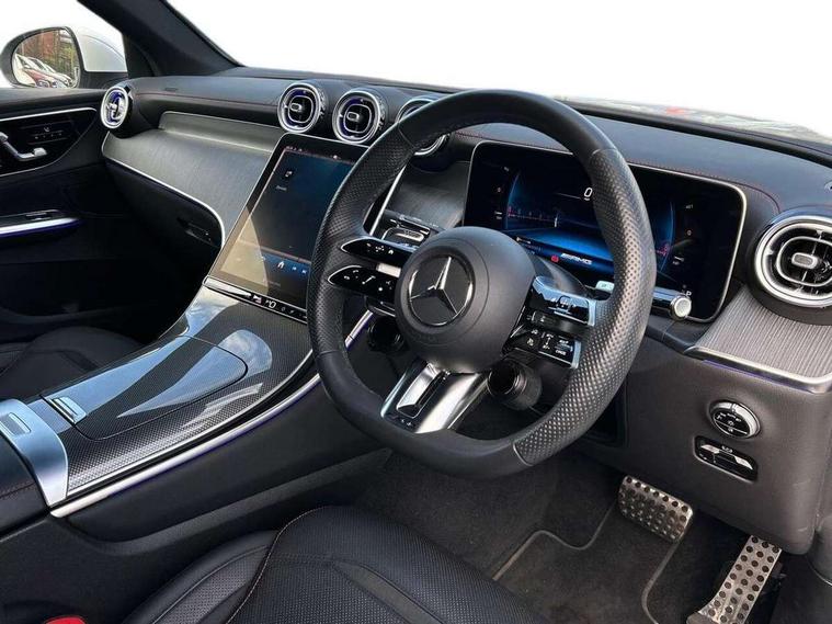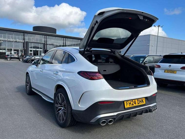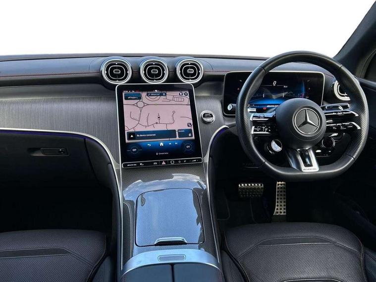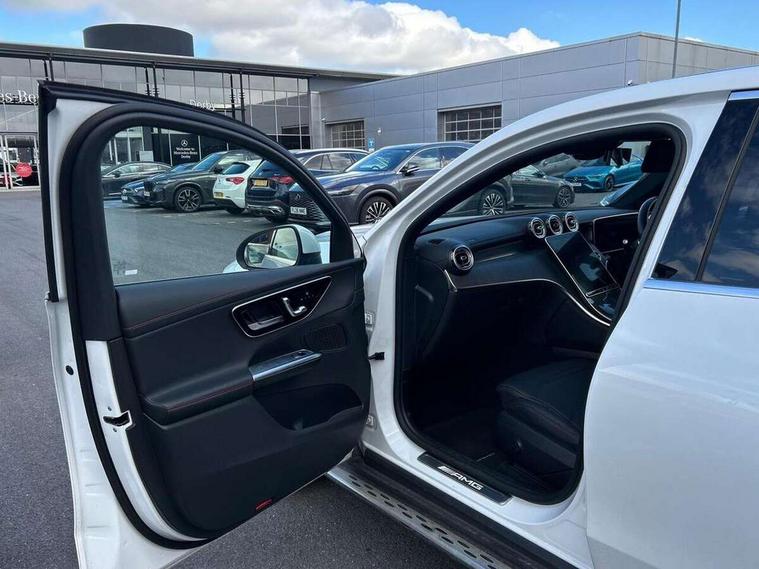 11.9" high resolution multimedia colour display, 12.3" Digital individually configurable instrument display, 360 degree view camera, Active brake assist plus, Active parking assist with parktronic system, AMG DYNAMIC SELECT with a choice of driving modes (Slippery, Comfort, Sport, Sport+, Individual), Attention assist, Blind spot assist, Bluetooth interface for hands free telephone, Dashcam - front camera for video recording, Easy pack automatic powered tailgate, eCall emergency call system, MBUX augmented reality for navigation, MBUX navigation premium, MBUX voice control activated by keywords "Hey Mercedes", Mercedes connect me with remote online services, Outside temperature display, Pre-installation for digital key transfer, Rear axle steering, Remote boot release, Service indicator (ASSYST), Smartphone integration, Speed limit assist, Sports direct steer system with speed sensitive steering, Status display for rear seat belts in instrument cluster, Traffic sign assist, Trip computer, Wireless charging surface integrated into quick stowage tray in front of centre console, 4MATIC permanent four wheel drive, 63 litre fuel tank, 9G TRONIC plus automatic transmission, Agility control comfort suspension, Petrol Particulate Filter (PPF), DAB digital radio tuner, MBUX extended functions, Adaptive brake lights, AMG bodystyling front apron, rear apron and side skirts, AMG exhaust system with sporty engine sound, AMG fuel cap, AMG radiator grille with vertical struts in high gloss chrome and AMG logo, AMG spoiler lip, Auto dimming rear view mirror, Auto headlights, Body colour door mirrors, Chrome roof rails, Digital light LED headlights, Electric windows with one touch opening/closing and obstruction sensors, Electrically adjustable and heated door mirrors, Headlight washers, Heat and noise insulating acoustic glass, Heated rear window, High level LED brake light, Illuminated front door sill panels, Integrated LED daytime running lights, LED indicator lights, LED rear fog lights, LED tail lamp, Mercedes AMG exterior, Rain sensor windscreen wipers, Range adjustable headlights, Rear side wing doors, Rear wiper, Tinted glass all round green, Variable front intermittent wipers, Welcome and follow-me home light functionality, 3 seat bench in 2nd row, 3 Spoke multi function AMG steering wheel in black nappa leather, 40:20:40 split folding rear seats, Ambient lighting, AMG sports seats, AMG steering wheel buttons, Artico leather dashboard with contrast stitching, Audio and onboard settings control on multifunction steering wheel, Automatic child seat recognition sensor, Black floor mats with AMG lettering, Double cup holder in centre console, Electrically height/reach adjustable steering column, Front centre armrest with stowage compartment, Front head restraints, Gearshift paddles on steering wheel, Heated front seats, Illuminated door sill panels with AMG lettering and with exchangable cover, Illuminated glove compartment, Load compartment cover, Mercedes AMG interior, Rear head restraints, Rear top tether child seat ISOFIX attachment, Single front passenger seat, Sports pedals with stainless steel surfaces and rubber studs, Sun visors with illuminated vanity mirrors, THERMATIC 2 zone automatic climate control, Interior lighting pack - GLC AMG, Memory pack - GLC, Mirror pack - GLC AMG, Seat comfort package - GLC AMG, Stowage pack - GLC AMG, USB Plus Pack - GLC, 3 rear 3 point seatbelts, Active bonnet, Adaptive brake system with HOLD function and brake drying in the wet, Anti-lock braking system (ABS), Child proof door locks, Dual-stage airbags - driver and front passenger, sidebags in front seats, driver kneebag, pelvis bag and window bags for driver, Electronic key chrome surround, Electronic parking brake, Electronic Stability Programme (ESP), Front and rear seatbelt reminder, Front passenger seat occupancy sensor, Front seatbelt pretensioners, Hill start assist, Silver brake calipers, Tyre pressure monitoring system, Warning triangle and first aid kit, Central locking with interior switch, automatic locking and crash sensor with emergency opening function, Guard 360 degree vehicle protection, Immobiliser, Keyless Go comfort access, Anthracite linestructure lime wood trim, Black open-pore aluminium lines wood trim, Centre console in metal structure finish, 21" AMG Y spoke light alloy wheels painted in tantalum grey with high sheen rim finish, TIREFIT with tyre inflation compressor,
