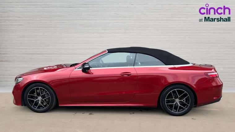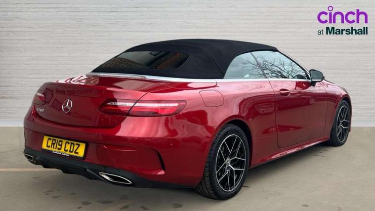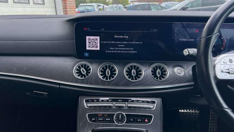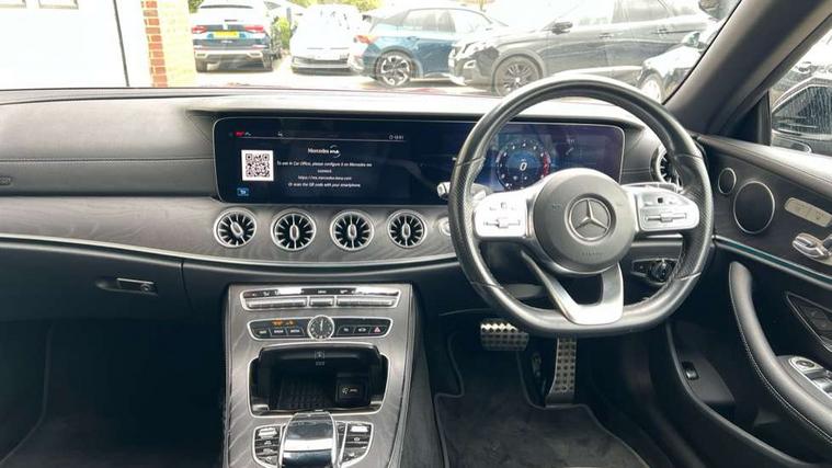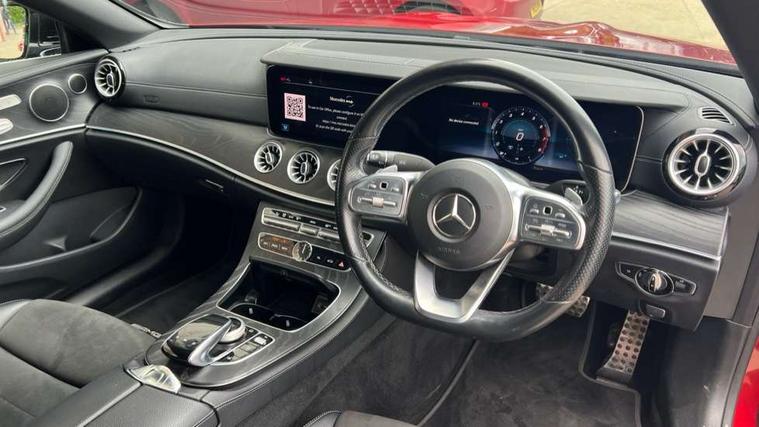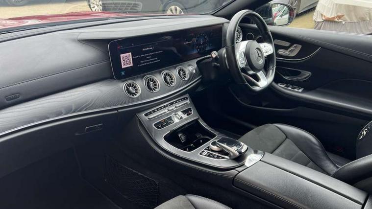 Active parking assist including front and rear parking sensors, Analogue clock, Attention assist, Automatic boot separator, Blind spot assist, Bluetooth interface for hands free telephone, Brake wear warning display, Cockpit display 12.3" widescreen digital instrument cluster, Collision prevention assist plus, Direct steer speed sensitive steering, Direct steering, DYNAMIC SELECT with a choice of driving modes (ECO, Comfort, Sport, Sport+ and Individual), ECO start/stop function, Engine start/stop button, High resolution 12.3" multimedia colour display, Mercedes connect me, Multi function trip computer, Outside temperature display, Remote boot release, Reversing camera, SD card based satellite navigation system, Service indicator (ASSYST), Status display for rear seat belts in instrument cluster, Touchpad with control wheel, 66 litre fuel tank, Agility control sports suspension with selective damping system, 2 USB ports in centre console, Audio 20 with USB, touchpad and control wheel with Media Interface with Bluetooth interface and hands-free function, DAB Digital radio, Acoustic soft-top with enhanced climate and noise comfort, Adaptive brake lights, AIRCAP wind deflector and draught stop, AMG bodystyling front and rear aprons, side skirts, AMG boot lid spoiler in body colour, AMG front, rear apron and side skirts, Body colour door handles, Body coloured bumpers, Electric windows with one touch opening/closing and obstruction sensors, Exterior mirrors heated and electronically adjustable, Illuminated front door sill panels with Mercedes-Benz lettering, LED high performance headlamps with integrated LED daytime running lights, Magic Vision Control heated windscreen wiper system, Rain sensing windscreen wipers, Rear LED lights, Sports exhaust system, Top surround of side windows in polished aluminium, Visible twin pipe exhaust system integrated into bumper, Waistline in polished aluminium, 3-spoke flat bottom multifunction AMG steering wheel with Touch Control buttons, trimmed in black nappa leather, 4 way adjustable front head restraints and 2 way rear head restraints, 50/50 split folding rear seat, Airscarf - neck level heating, Artico man-made leather upper dashboard and beltlines with contrast stitching, Automatic child seat recognition sensor, Automatic two zone climate control, Bag hook in luggage compartment, Belt feeder driver and front passenger seat belt automatically positioned within easier reach, Black roof lining, Central stowage compartment with 12 V socket in centre console, Centre armrest and door handle illumination, Chrome door pins, Easy entry seats, Floor mats with AMG lettering, Front and rear door pockets, Front centre armrest with stowage compartment, Front footwell lights, Glasses compartment in overhead control panel, Glove compartment - lockable, air conditioned and illuminated, Heated front seats, Interior lighting - 64 colour Ambient lighting, Interior rear light/integral reading lights, Isofix rear child seat fastenings, Multi contour front sports seats, Multi function steering wheel, Partial electric front seats/backrest/height adjust, Rear centre armrest with 2 cupholders + storage, Seat occupancy sensor for front passenger seat, Sports pedals in brushed stainless steel with black rubber studs, Steering column manually adjustable for height and reach, Steering wheel gearshift paddles, Steering wheel touch control buttons for audio and onboard settings, Storage net in luggage compartment, Sunvisors with illuminated vanity mirrors, Twin front cupholders, Mirror pack - E Class, Seat comfort pack - E Class, Stowage pack - E Class, 2 x 3-point rear seatbelts, Active bonnet, Active brake assist, Adaptive brake system, Adaptive driver and front passenger airbags, Anti-lock braking system (ABS), Crash sensor (auto door unlocking), Drivers knee airbag, Electric parking brake, Electronic Stability Programme, Front and rear window airbags, Front seatbelt pretensioners, Front side airbags, Head airbags, Hill hold function, Perforated front brake discs with "Mercedes-Benz" lettering, Seatbelt warning, Tyre pressure monitoring system, Warning triangle and first aid kit, Alarm system/interior protection/immobiliser, Central locking with interior switch, automatic locking and crash sensor with emergency opening function, Chrome surround in electric key, Keyless entry go starting function, Black open pore ash wood, Open pore black ash wood centre console, Run flat tyres,