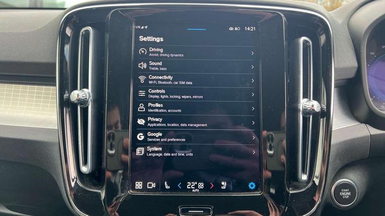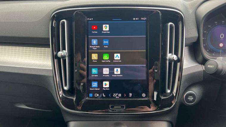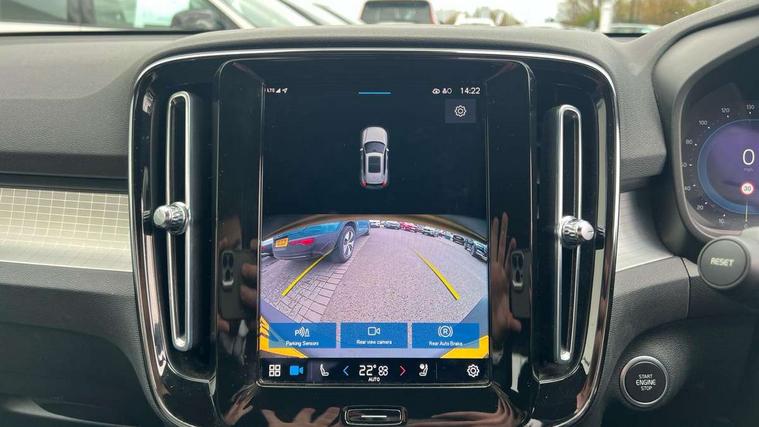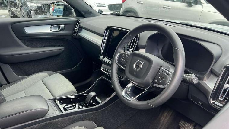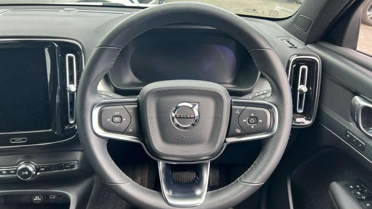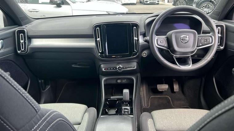 12.3" Progressive Driver Display, 9" centre console portrait touch screen, Adjustable steering wheel force, Bluetooth hands free telephone kit, Cruise control, Driver awareness - blind spot information system with steer assist, cross traffic alert with autobrake, rear collision warning and migitation, E-call, Front park assist, Google automatic services - Nav with google maps, apple carplay/android auto, voice recognition with google assistant, Hands free power tailgate, Lane keep assist with driver alert control, Oncoming Lane Mitigation, Rear park assist, Rear park assist camera, Speed limiter, Speed sensitive steering, Wireless/Inductive Mobile Phone Charging, Dynamic chassis, DAB Digital radio, High performance sound, 8 speakers/250W, front USB and 2 rear type C USB, Steering wheel mounted remote controls, Adaptive brake lights with high level LED brake lights, Auto dimming feature for exterior door mirrors, Auto dimming interior mirror, Automatic headlamp levelling, Automatic LED Headlights + Active high beam incorporating daytime running lights, Front aluminium tread plates, Front and rear electric windows, High gloss black front and rear skid plate, High gloss black mesh front grille with high gloss black surround, High gloss black window trim, Home safe and approach lighting, Integrated roof rails in high gloss black, LED front fog lights, Puddle lights, Rain sensor with automatic windscreen wiper activation, Rear side wing doors, Rear wiper, Roof antenna, Roof spoiler, Visible VIN plate, 12V socket in front tunnel console and luggage compartment, 2-Zone electronic climate control with CleanZone air quality system and pollen filter, 3 seat bench in 2nd row, 3 Spoke tailored steering wheel with chrome trim, 60/40 versatile split folding rear seat, A-pillar parking ticket holder, Ambient front door and instrumental panel lighting, Centre console cupholders and storage, Flexible load floor and grocery bag holder, Floor mats, Front door pocket and front cupholder illumination, Front footwell illumination, Front headrests, Front reading light and theatre lighting, Front seat cushion extensions, Front tunnel pocket, Glovebox bag hook, Heated front seats, Height adjustable passenger seat, Height/reach adjustable steering column, High gloss centre tunnel deco, Illuminated glovebox, Illuminated luggage compartment, Illuminated tailgate, Illuminated vanity mirrors, Integrated waste bin, Isofix attachments on outer rear seats, Load protection net, Multi directional lumbar support, Power driver seat with memory + exterior mirrors memory, Rear armrest / integral cup holders / storage tray, Rear headrests, Rear reading and courtesy lights, Single front passenger seat, Underfloor cargo storage, Climate pack without heated front seats - XC40, 3x3 point rear seatbelts, City safety with steering support with Pedestrian + cyclist + front collision warning with full auto brake and rear auto brake, Drivers knee airbag, Dual stage driver/passenger airbags, Electronic parking brake with auto hold, First aid kit, Front and outer rear seatbelt reminder and pretensioners, Front seats SIPS airbags, Hill descent control, Hill start assist, Inflatable curtain, Passenger airbag cut-off device, Power child locks on rear doors, Road sign information display, Run off Road Mitigation, Run off Road Protection, SIPS (Side Impact Protection System), Slippery road and hazard light alert, Stability and Traction Control with Spin control, Engine Drag Control and Corner Traction Control, Tyre pressure monitoring system, Vehicle deceleration control with Anti-lock Brake System, Electronic Brake Distribution and Emergency Brake Assist, Warning triangle, WHIPS whiplash protection system - front, Anti-theft alarm including immobiliser/volume sensor + level sensor, Key integrated remote control central locking + fuel flap with deadlocking system and auto open/close power windows, Keyless drive includes keyless entry and keyless start, Locking wheel nuts,