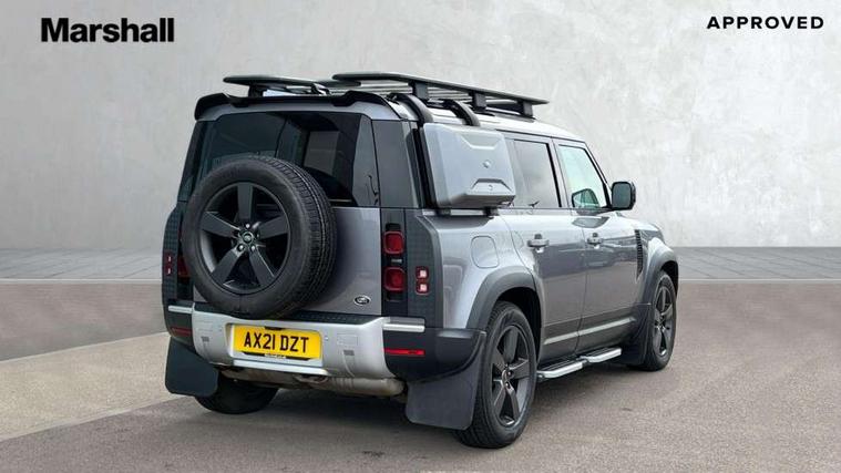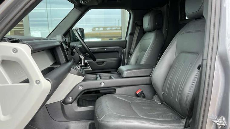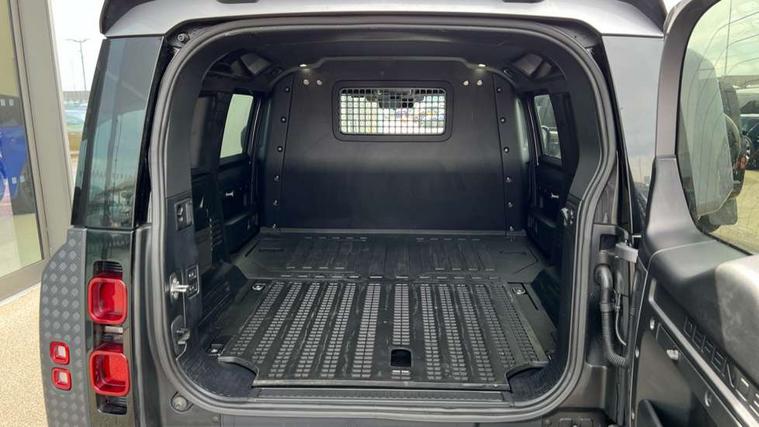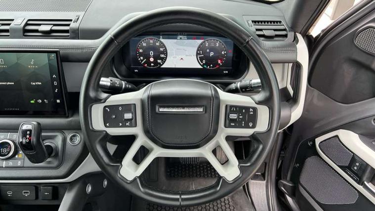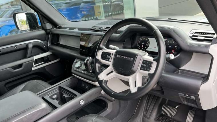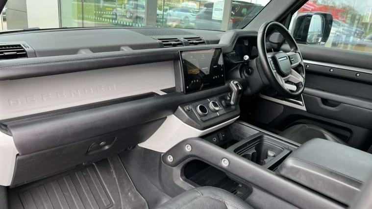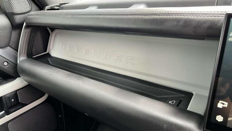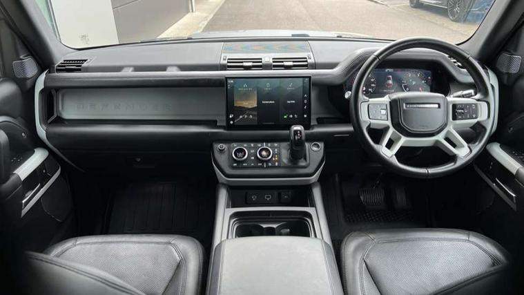 Customer Configurable Autolock, 360 parking aid, 3D Surround Camera with 360 View, 180 Rear View, Front Traffic Detection, Forward Vehicle Guidance, Tow Hitch Assist and clear sight Ground View, Adaptive cruise control, Blind spot assist, Brake Hold, Driver condition monitor, Electric power assisted steering (EPAS), Interactive Driver display, Lane keep assist, Low traction launch, Pivi pro connected, Rear collision monitor, Rear traffic monitor, Traffic sign recognition adaptive speed limiter, Trip computer, Tyre pressure monitor, Wade Sensing, Android Auto, Apple CarPlay, DAB Radio (Digital Audio Broadcasting), Meridian 280W sound audio system with 7 speakers with subwoofer, Alpine lights, Assisted tailgate, Auto High Beam Assist, Automatic headlight levelling, Centre high mounted stop light, ClearSight interior rear view mirror, D300 badge, Electric heated/power fold door mirrors with approach lights and auto dimming driver side, Electric windows with one touch open/close and anti-trap, Exterior signage panel, Follow me home lighting, Front fog lights, Heated rear window with timer, LED tail light, Matrix LED headlights with signature DRL, Privacy glass, Puddle lights, Rain sensing wipers, Rear fog lights, Rear wash wiper, Side-hinged tailgate, Standard roof, Standard tread plates, 14 way heated and cooled electric adjustable memory front seats with 4 way manual headrests, 40:20:40 folding rear seats with centre armrest, Carpet mats, Clear exit monitor, Click and go integrated base unit, Dual zone climate control, Durable rubber cabin flooring, Electric adjustable steering column, Footwell lights, Front passenger seat ISOFIX points, Glovebox storage, Heated steering wheel, High sided rubber mats, Leather gearshift, Loadspace hooks, Loadspace rubber mat, Lockable and illuminated forward underfloor storage, Overhead stowage for sunglasses, Rear centre headrest, Rear reading light, Signature graphic, Sunvisors with illuminated vanity mirrors, Twin front cupholders with cover, Online pack - Defender with data plan, Brake pad wear indicator, Electronic traction control, Emergency braking, Front airbags, with passenger seat occupant detector, Power operated child locks, Remote for (e-Call, Optimised assistance call, InControl app, Climate, beep and flash and door), Seat belt reminder, Intrusion sensor, Keyless entry system, Locking wheel nuts, ABS and EBA, CBC - (Cornering brake control), Dynamic stability control, Electronic park brake, Gradient acceleration control, Hill Descent Control, Hill start assist, Particulate filter (DPF), Push button start, Roll stability control, Trailer stability assist, Extended leather upgrade,
