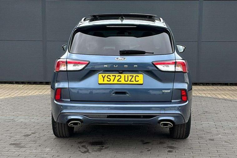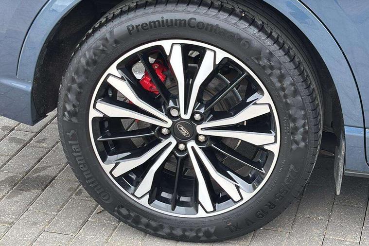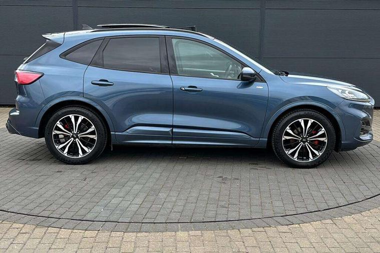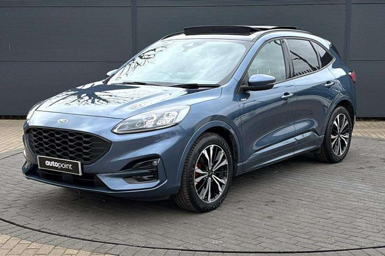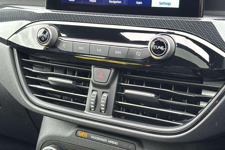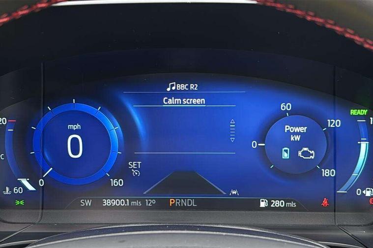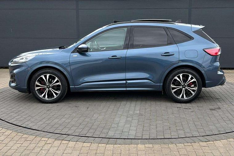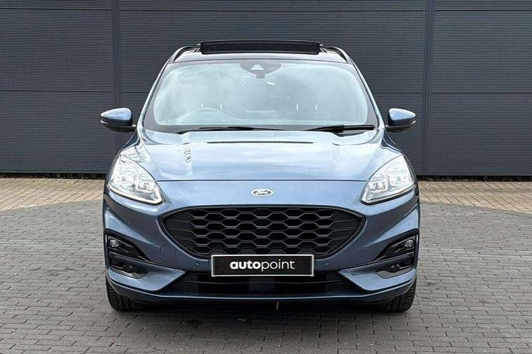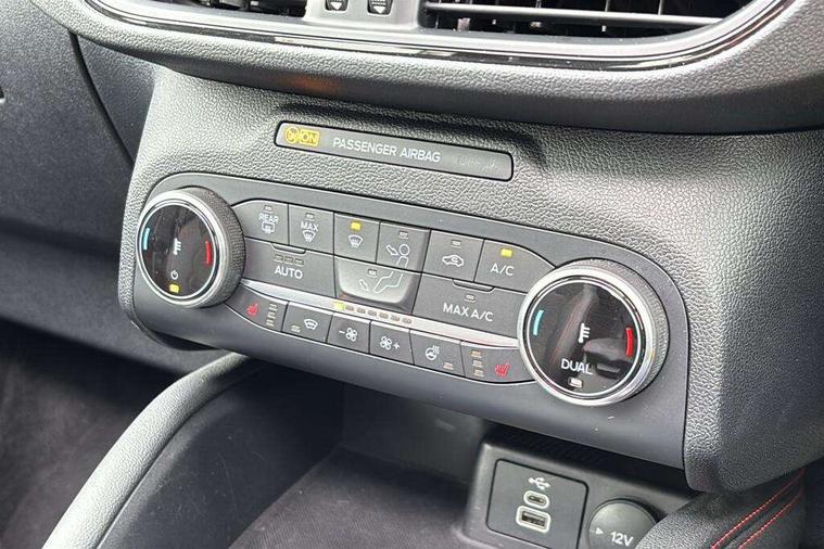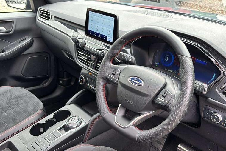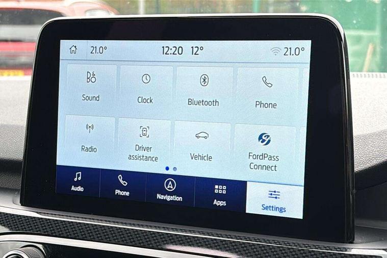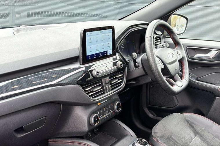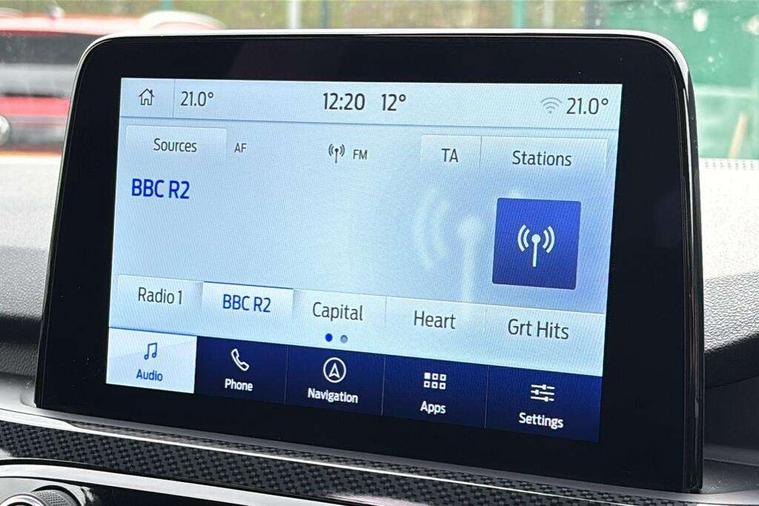 12.3" digital colour instrument cluster, Ford easy fuel, Ford SYNC 3 with 8" TFT LCD touchscreen, App Link, andriod auto/apple carPlay, emergency assistance and navigation with Ford pass connect, Front and rear parking sensors, Hands free power tailgate, Lane keeping aid with lane departure warning, Power assist steering, Rear view camera, Selectable drive modes, Service interval indicator, Sports suspension, Twist beam rear suspension, B&O premium audio system with 10 speakers and subwoofer, 2 USB ports, DAB radio/CD, Auto headlamps with high and low beam, Black roof rails, Day/night rear view mirror, Front LED fog lamps, Large rear spoiler, LED daytime running lights, LED rear lights, Power folding heated door mirrors with puddle lights, Power front/rear windows with global close, Power opening panoramic roof, Privacy glass, Quickclear heated windscreen, Rear side wing doors, Rear wiper, ST Line body styling kit with unique front and rear fascia and bumper, rear painted diffuser, front painted skid plates, dark mesh upper grille, ST Line front scuff plates, Third brake light, Twin exhausts, 10 way power adjustable drivers seat, 2nd row sliding seats with 60:40 split, 8 way manual passenger seat including lumbar support and height adjust, Alloy pedals, Centre console with electronic parking brake, Dark headlining and pillars, Electronic automatic temperature control (EATC), Flat bottomed leather steering wheel in sensico with red stitching, Front and rear head restraints, Heated passenger and driver seats, Heated rear seats, Heated steering wheel, Partial premium touch sensico leather upholstery with black cloth inserts and red stitching, Rear charging point, Single front passenger seat, Sports seats, ST Line front and rear floor mats, 3x3 point rear seatbelts, Airbags - front driver/passenger, front and rear curtain, Drivers knee airbag, Electronic stability control (ESC) and ABS, Ford MyKey Gen 2 safety system, Manual child proof rear door locks, Post collision braking, Pre collision assist with autonomous emergency braking, Rear seat Occupancy alert, Red brake calipers, Tyre pressure monitoring system, Engine immobiliser, Keyless entry and Ford power start button, Locking wheel nuts, Remote powered central double locking doors, Thatcham category 1 alarm,