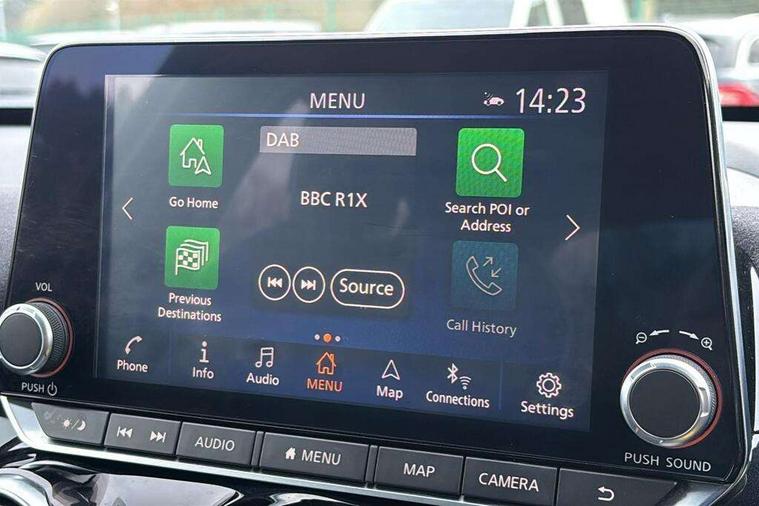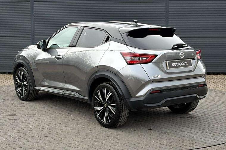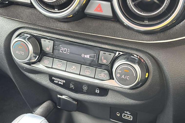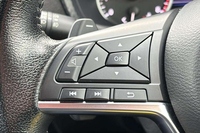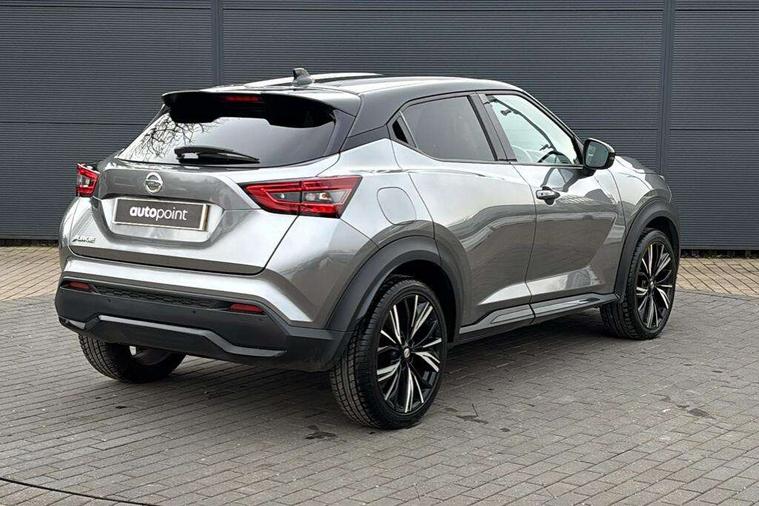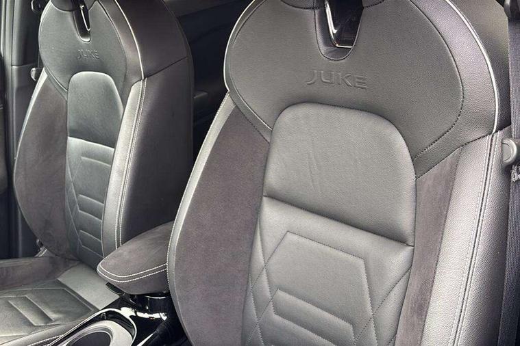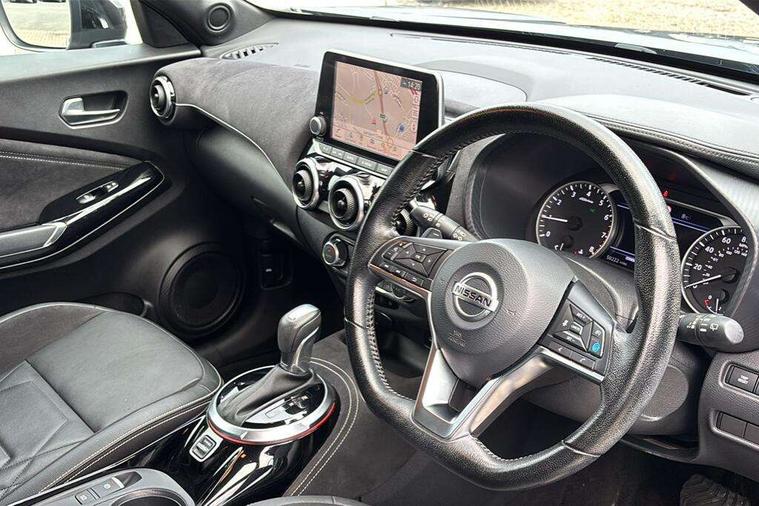 7" full colour TFT screen combimeter, 8" infotainment colour display with touch screen, Apple CarPlay and Google Android auto, Drive modes select (Eco, normal and sport), Emergency and breakdown call, Front parking sensor, Idle start/stop system, Intelligent lane intervention, Lane departure warning system, Nissan connect nav with TomTom traffic, Nissan connect services and Wifi connection, Outside temperature sensor, Power Steering, Rear parking sensor, Traffic sign recognition, Trip computer, Gasoline particulate filter, Bluetooth system, USB, Aux-in and 12V socket, Bose personal plus audio system with 8 speakers(4 speakers and 2 headrest speaker for driver and passenger seats), Bose personal sound stage control, DAB Digital radio, Front lower bumper painted in silver finisher, Rear console USB port, Auto dimming interior rear view mirror, Automatic hazard signal with emergency stop signal, Body colour bumpers, Body colour door handles, Electrically adjustable door mirrors with integrated indicators, Follow me home headlights, Front and rear electric window with one touch driver and passenger window, Heated and auto folding door mirrors, High beam assist, LED daytime running lights, LED front fog lights, LED headlamps, LED rear fog lamp, LED rear lamps, Rain sensor windscreen wipers, Rear privacy glass, Rear spoiler, Rear wiper, Thermaclear heated windscreen, Three blink turn signal, 3 height adjustable rear headrests, 60/40 split folding rear seat, Automatic climate control, Card holder on driver sunvisor, Door ambient lighting, Driver and passenger sliding and reclining seats, Driver seat back pocket, Driver side rear coat hanger, Driver/passenger sunvisors and illuminated vanity mirrors, Front and rear cabin lighting, Front armrest, Front door pockets with bottle holders, Front head restraints, Front passenger isofix child seat anchorage point, Front/rear passenger grab handles, Gear console ambient circle lighting, Grey synthetic leather kneepad, Heated front seats, Height adjustable driver's seat, Height adjustable passenger seat, Internal chrome door handles, Leather gearshift knob, Leather steering wheel, Luggage board, Luggage space lighting, Monoform sporty seats, Multifunction steering wheel, Passenger seat back pocket, Rear door bottle holders, Steering wheel mounted gearshift paddles, Telescopic steering wheel adjustment, Two cupholders in front centre console, Two rear isofix child seat anchorage points with top tether, Voice recognition switch on steering wheel, Welcome light and console tray ambient lighting, ProPilot pack - Juke, ABS with EBD and brake assist, Active ride control, Active Trace Control, Driver and passenger airbags, Driver and passenger side airbags, Electric handbrake with auto hold function, Electronic Stability Programme (ESP), Front and rear curtain airbags, Height adjustable seatbelts, Hill start assist, Intelligent emergency braking with pedestrian and cyclist recognition, Seatbelt reminder for driver/front passenger and rear seats, Single tone horn, Three 3 point rear seatbelts, Traction control, Tyre pressure monitoring system, VDC Dynamic Vehicle Control, Ventilated rear brake discs, Alarm, Immobiliser, Intelligent Key with push button starter, Remote central locking, 19" Akari alloy wheels,