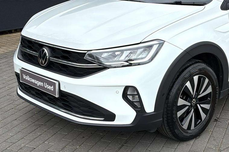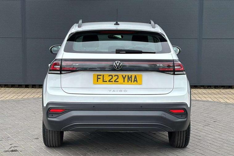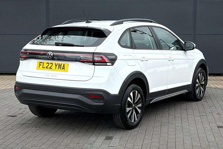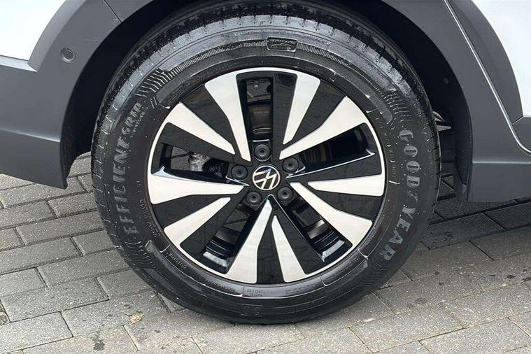 App-Connect including App-Connect Wireless, Driver alert system, e-Call (emergency call), Power Steering, Travel assist including emergency assist, Washer fluid level indicator, Wireless Charging including Bluetooth, Start-stop system with battery regeneration (recuperation - energy recovery during braking), Digital radio reception (DAB+), Diversity antenna for FM reception, WeConnect plus, Ambient lighting with logo projection, Aspherical driver's exterior mirror, Body coloured bumpers, Body coloured exterior mirror housings and door handles, Electric windows, External USB type C socket and charging sockets, Front fog lamps with cornering function, Headlight range control, Heat insulating glass windscreen, LED headlamps, LED rear combination lamp, LED third brake light, Left convex exterior mirror, Power folding adjustable/heated exterior mirrors and front passenger exterior mirror lowering function, Rear fog light on one side, reversing light on both sides, Rear wash/wipe with intermittent wipe setting, 'Slash/ Austin' Cloth upholstery, 12V socket in centre console, 2 front reading lights, 3 rear head restraints, Black carpets, Child seat anchor for child seat system i-Size, 2x top tether and child seat anchor in front on front passenger side, Door and side trim panels in titan black, Driver and front passenger seat height adjustment, Front centre armrest, Handbrake lever handle in leather, Height and reach adjustable steering wheel, Leather trimmed gear knob, Leather wrapped multifunction steering wheel, Luggage compartment floor, Luggage compartment light, Lumbar support for driver's and front passengers seat, Seat covers in titanium black, Split folding backrest with centre armrest and unsplit rear seat bench, Storage compartment under front seats, Sun visors with illuminated vanity mirrors, Chrome Package - Taigo, Drivers assistance pack - Taigo, Light and Sight pack including High beam assist - Taigo, 2 x 3-point seatbelts/outer rear seats with ECE label, 3-point seat belts in front with pretensioner and height adjustment, 3-point seatbelt for centre rear seat, Driver and front passenger airbags with front passenger airbag de-activation, front side and curtain airbags, Driver and front passenger safety-optimised head restraints, Electronic stability control, Extended and predictive pedestrian/ cyclist protection, Front and rear disc brakes, Front curtain and side airbags with center airbag, Hill start assist, Single tone horn, Tyre pressure loss indicator, Anti-theft alarm system with interior monitoring, backup horn, and towing protection, Anti-theft wheel bolts, Lava stone black gloss/matt decorative inserts in dash and front door panels, Low rolling resistance tyres,