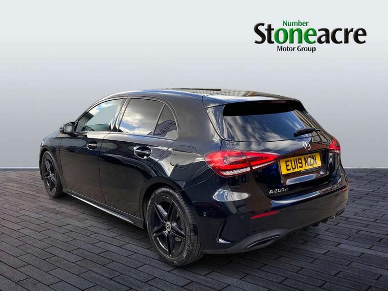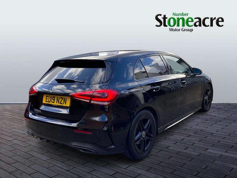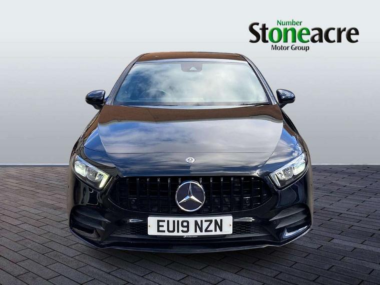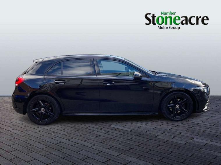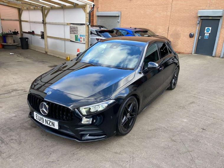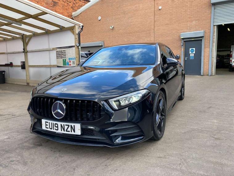 10.25" Digital instrument cluster display screen, 10.25" media display, 180 degree rear view camera with parking guidelines, Active lane keep assist, Active park assist with parktronic system including front and rear parking sensors, Attention assist, Brake pad wear indicator warning light, Direct steering, Direction indicators with lane change function, DYNAMIC SELECT with a choice of driving modes (ECO, Comfort, Sport, Sport+ and Individual), Fluid level warning indicator for fuel, oil, coolant and washer fluid, Hard-disk navigation, Lamp failure indicator, Mercedes me connect including emergency call system, accident recovery, breakdown and maintenance management, Outside temperature gauge, Radio aerial integrated into roof spoiler, Service indicator (ASSYST), Speed sensitive power steering, Stop/start system, Trip computer, Voice activation, Lowered comfort suspension, DAB Digital radio, Dual bluetooth interface, 2 USB ports (type C), MBUX multimedia system with DAB digital radio and touchpad including satellite navigation, Mid-range sound system, Adaptive brake lights, AMG front, rear apron and side skirts, Blue tinted glass, Body colour bumpers, Body colour door handles, Body colour side skirt, Body coloured door mirrors, Chrome beltline trim, Diamond radiator grille with chrome pins and silver louvre + chrome insert, Electric adjustable and heated door mirrors with integrated LED side indicators, Electric front windows, Electric rear windows, Exhaust system - Twin trapezoidal tailpipes in polished stainless steel, Headlamp assist automatic headlamp activation, Heated glass rear windscreen + timer control, LED high performance headlamps with integrated LED daytime running lights, LED tail lamp, LED third brake light, Rain sensor windscreen wipers, Rear fog lights, Rear wiper, 12V socket, 3 Spoke flat bottom leather multi function steering wheel with perforated leather in grip area, 40:20:40 split folding rear seats, Air vents surround and cruciform nozzle in silver chrome, AMG floor mats with red stitching, Artico man-made leather/Microfibre Dinamica upholstery with red contrast stitching, Auto Mercedes-Benz child seat recognition sensor, Black roof lining, Brushed stainless steel sports pedals with rubber studs, Controller on centre console with chrome surround, Cup holder and stowage compartment lighting, Front centre armrest with storage compartment, Front door sills with Mercedes Benz lettering, Front footwell lights, Front reading lamps, Front seat backs luggage nets, Front seat cushion length adjustment, Front signal exit lamp, Front vanity lights, Gearshift paddles on steering wheel, Handle recess/closing light, Heated front seats, Height/reach adjustable steering column, Illuminated door sills, Illuminated glovebox, Interior lighting - 64 colour Ambient lighting, ISOFIX Child seat top tethers and anchor fixings, Load securing rings in luggage compartment, Luggage compartment cover, Manual height adjustable front seats, Oddments tray lighting, Rear armrest, Rear head restraints, Rear Reading Lamps, Seat occupancy sensor for front passenger seat, Sports seats with integrated headrests, Storage compartment under load area floor, Sunvisors with illuminated vanity mirrors, Touchpad, Touchpad illumination, Twin front cupholders, Two zone thermotronic luxury automatic climate control, Mirror package - A Class, Seat comfort pack - A Class, 3 rear 3 point seatbelts, ABS with Brake Assist, Active bonnet, Adaptive brake assist with hold function and hill start assist, Brake calipers with Mercedes-Benz lettering + perforated brake discs, Childproof locks manually operated for rear doors and electrically operated for rear power windows, Crash responsive emergency lighting, Driver and passenger head and side airbags, Drivers knee airbag, Dual stage driver/passenger airbags, Electronic parking brake, ESP curve dynamic assist, ESP with ASR, Front and rear seatbelt reminder, Tyre pressure monitoring system, Warning triangle and first aid kit, Window airbags, Alarm system/interior protection/immobiliser, Keyless Go Lock/Unlock function, Remote central locking and crash sensor with emergency opening function, Black seatbelts, 18" AMG 5 twin spoke light alloy wheels in titanium grey with highsheen finish, Tirefit sealant kit,