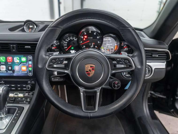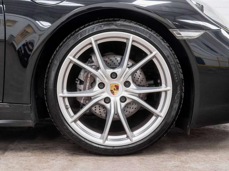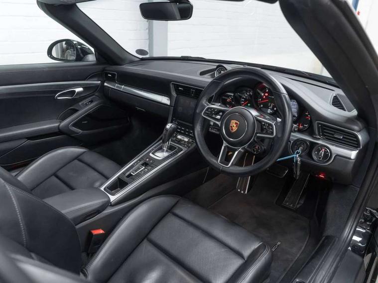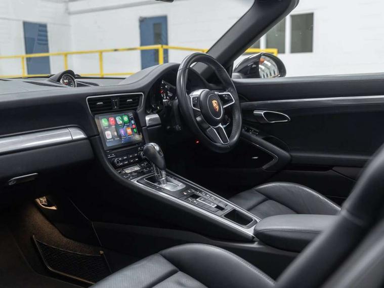 Black rev counter, Instrument cluster with high-resolution 4.6-inch TFT colour display, Mobile telephone preparation, On board computer, Outside temperature gauge, PCM voice control, Porsche communication management including navigation, Sports button, Telephone module for PCM, Porsche Active Suspension Management (PASM), Porsche stability management (PSM), Connect Plus with Apple CarPlay, wireless internet access, Carfinder, Remote Vehicle Status and Remote Services, DAB Digital radio, USB interface in rear, 2 speed front wipers + intermittent wipe, Air blades with active cooling air flaps, Automatic headlamp levelling, Automatic headlights, Automatically extending rear boot spoiler, Body colour bumpers, Electric hood operation with auto side windows, Electric windows + one touch open/close + door seal protection function, Electrically adjustable and heated door mirrors, Electrically powered wind deflector, Green tinted heat insulating glass, Headlight washers, Heated rear window, Heated windscreen washers, LED daytime running lights, LED tail lights, Welcome home function, Windscreen with grey top tint, 2 in-dash cupholders above glove compartment, 3 x 12V power sockets, Air quality sensor, Air recirculation system, Centre console storage, Clothes hooks on front seat backrests, Continuously variable dimming interior light, Dual zone automatic climate control, Footwell illumination, Glovebox illumination, Ignition Lock illumination, Illumination of luggage compartment, Interior orientation lighting, Isofix child seat preparation, Leather centre console storage compartment, Leather door panel armrest, Leather handbrake grip, Leather interior door handles, LED reading lights, Lockable glovebox, Manual height/reach adjust steering wheel, Pollen/active carbon filters, Split folding rear seats, Steering wheel gearshift paddles, Storage compartments in doors, 3 point inertia reel seatbelts, ABS, ASR + ABD, Black brake calipers, Driver/Front Passenger airbags, Electronic parking brake, Front head airbags, Front passenger airbag deactivation, Front seat thorax airbags, Front seatbelt pretensioners with force limiters, Height adjustable front seatbelts, POSIP, PTM (Porsche Traction Management), Roll over protection, Tyre pressure monitoring system, Alarm system with interior radar surveillance, Anti-theft wheel bolts, Porsche vehicle tracking system (VTS), Remote control central locking, Transponder engine immobiliser, Sealing compound and compressor kit,