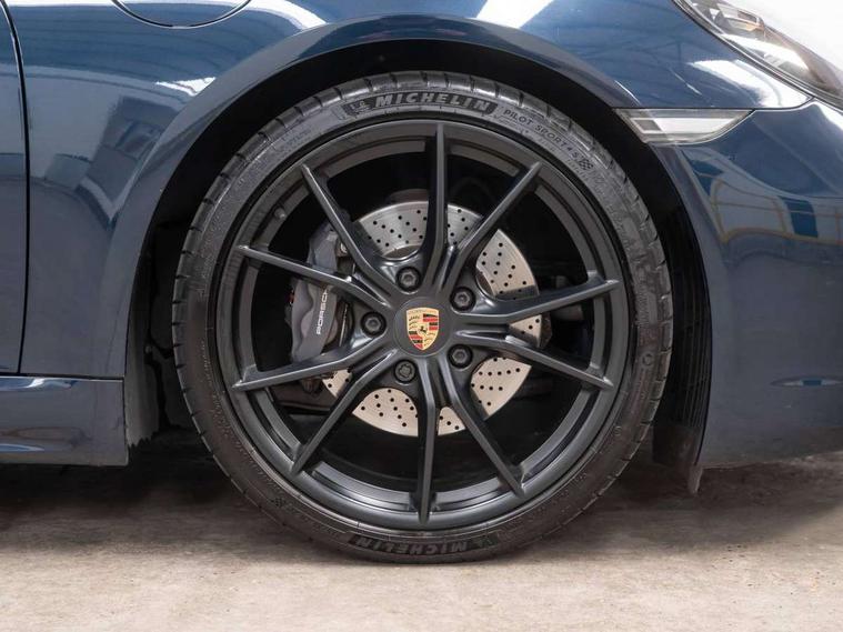 Connect Plus, Apple CarPlay, telephone module, wireless internet access, carfinder, remote vehicle status, remote service, vehicle track, Digital displays for vehicle speed, chosen gear, odometer, trip odometer and clock, Instrument cluster with central rev counter and high-resolution 4.6 inch colour display, Porsche Communication Management (PCM) including online navigation module, mobile phone preparation, audio interfaces and voice control system, 4 valves per cylinder, Aluminium block and cylinder heads, Direct fuel injection (DFI), Gasoline particulate filter, Integrated dry-sump lubrication with an on-demand oil pump, Porsche Doppelkupplung (PDK), Porsche Stability Management (PSM), ABS with extended brake functions, Turbocharger with intercooler, VarioCam Plus variable valve timing and switchable valve lift, Water cooled with thermal management, DAB Digital radio, Integrated compatible SIM including Porsche Connect Services, Wifi and music streaming, Aerodynamic wipers, Automatic headlight activation including welcome home lighting, Automatically extending rear spoiler, Body colour bumpers, Electrically adjustable heated exterior mirrors on door waist rails, aspherical on driver's side, Green tinted heat insulating glass, Heated rear windscreen, Intelligent lightweight body in Aluminium/Steel composite construction, Porsche logo on trim strip and model designation on rear apron in high gloss silver colour, Power windows with one touch operation and door seal protection, Separate auxiliary lights in the front end with LED indicators and position lights, Top tinted windscreen, Twin tract sports exhaust system with central tailpipe in stainless steel, Wide opening rear hatch with heated screen, Windscreen washer system with two wiper speeds and washer jets, 12V sockets in passenger footwell and centre console storage compartment, Adjustable fan with air recirculation and defroster functions, Clothes hooks on front seat backrests, Elevated centre console with uncovered storage compartment and closed storage compartment, Front and rear luggage compartments, Front headrests, LED reading lights, orientation, ignition lock, additionally luggage compartment and glove compartment lighting, Smooth finish leather on steering wheel rim, gear lever and door handles, SPORT button to activate dynamic driving settings for engine, transmission (with PDK), Storage compartments in each doors, Three way catalytic converter and on board diagnostics for monitoring emission control system, Two individual cup holders (integral to dashboard trim strip), Electrically controlled parking brake, Front and rear 4 piston aluminium monobloc fixed calipers, disc internally vented and cross drilled, front/rear disc diameter, brake calipers in black, Front and rear lightweight spring strut axle, Full size driver and passenger airbags, Porsche side impact protection doors with thorax airbag in outer backrest side bolster and head airbag for driver/passenger in door panel, Tyre pressure monitoring system, Alarm system with interior surveillance, Anti-theft wheel bolts, Auto start/stop function including coasting (in connection with PDK), Engine immobiliser with in key transponder, central locking and remote control, Tyre sealing compound and electric air compressor kit,