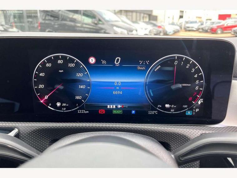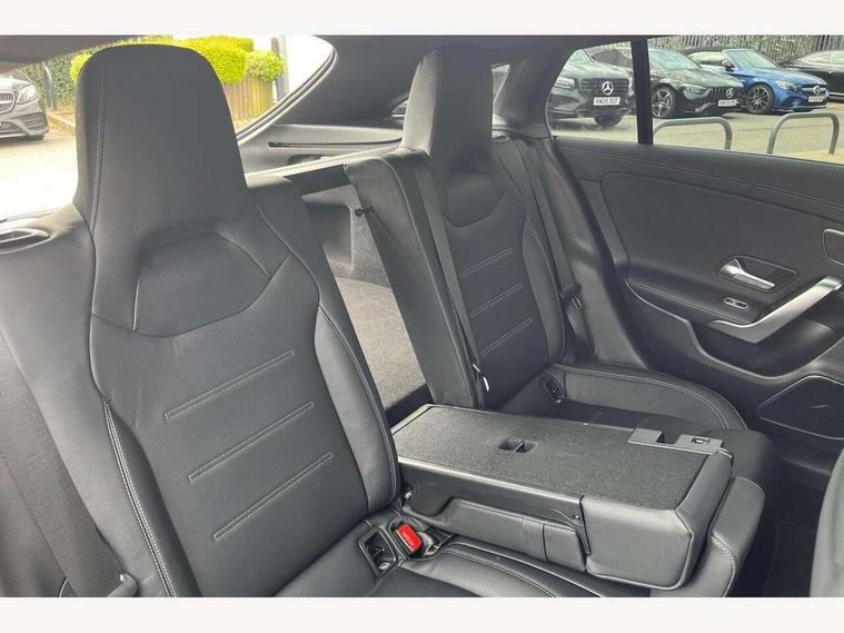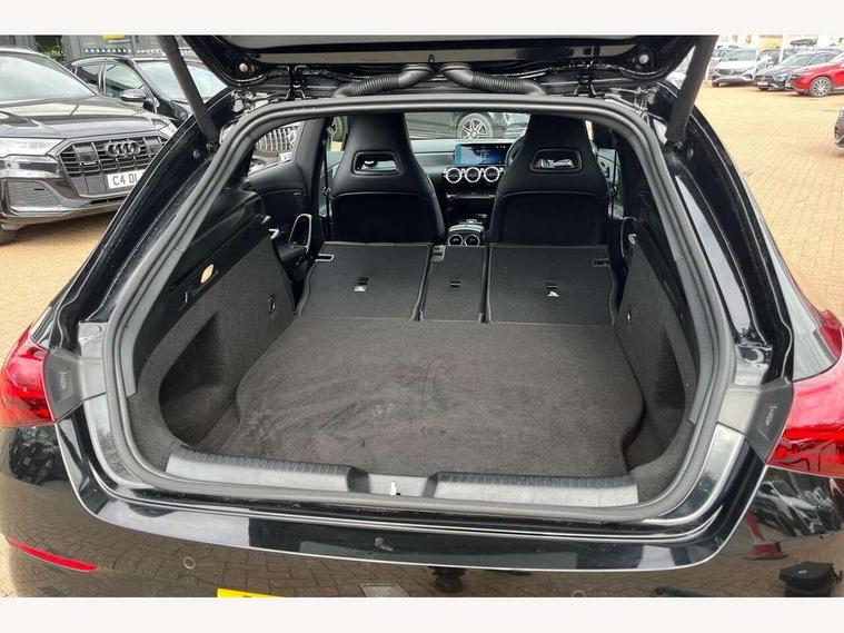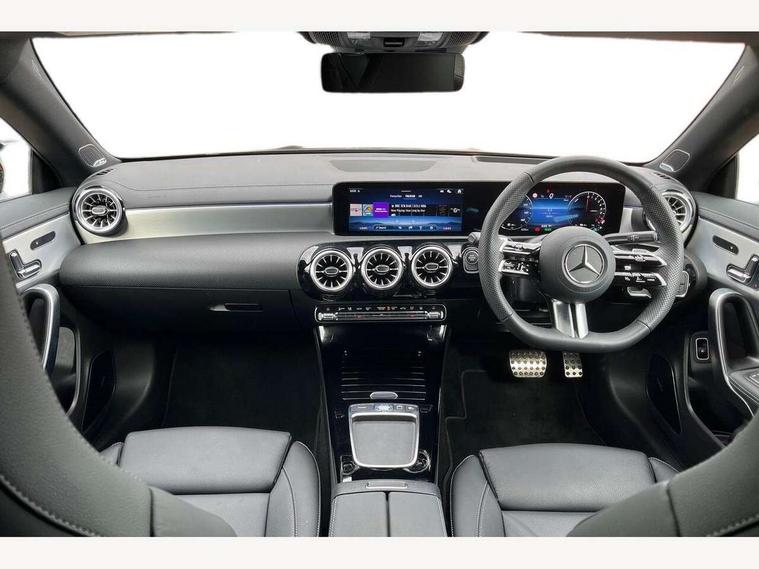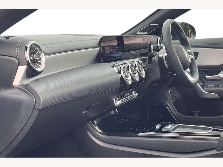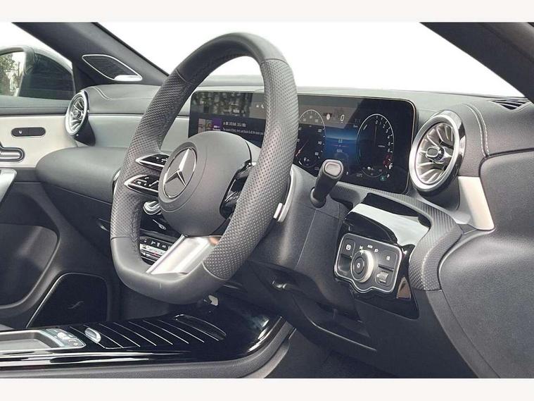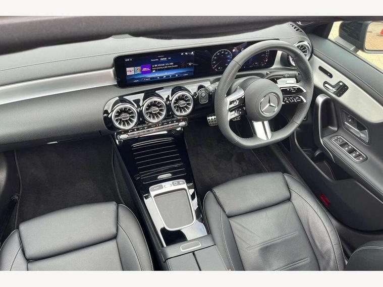 10.25 inch Instrument display with digital cockpit, 10.25 inch touchscreen central media display, Acoustic ambient protection, Active lane keeping assist, Attention assist - Monitors steering behaviour and long journey fatigue, Bluetooth connection, Car wash mode, Cruise control with limiter, Direct steer system, DYNAMIC SELECT with a choice of driving modes (ECO, Comfort, Sport and Individual), ECO start/stop function, Fluid level warning indicator for fuel, oil, coolant and washer fluid, Hard-disk navigation, Head up Display, Hey Mercedes Voice activation, Lamp failure indicator, Mercedes me connect including emergency call system, accident recovery, breakdown and maintenance management, Mercedes me remote and charging services plus, Outside temperature gauge, Owners manual in English, Pre-installation of private car share, Radio aerial integrated into front and rear windshields, Service indicator (ASSYST), Smartphone integration with Apple CarPlay and Android auto, Tailgate, Traffic sign assist, Trip computer in multifunction display with current consumption indicator, Wireless charging in the front centre console, Charging system - AC charging system rated at 11kW, Charging system - DC charging system rated at 22kW, Comfort suspension, Mode 3 charging cable for wallbox and public charging stations with 5m upto 11kW, Rear axle torsion beam, Burmester lettering on the speakers, Burmester surround sound system (710W) with dolby atmos, speakers - 1 central, 1 woofer, 1 tweeter, 1 subwoofer with 60W, 2 in C pillar, DAB digital radio tuner, MBUX multimedia system, Pre installation for Mercedes Benz Link, Adaptive brake lights, AMG body styling with AMG front apron and rear apron and visible exhaust tailpipe in chrome trim elements, Body colour door handles, Electric panoramic sunroof with automatic tilt and convenience closing fuinctions, rain sensor auto closing and electronic roller sunblind, Electric windows, Electrically adjustable and heated door mirrors with integrated LED indicators, Exhaust system with 2 Visible tailpipe trim elements and rear apron with trim in chrome, Hand free access, Headlamp assist automatic headlamp activation, Heated glass rear windscreen + timer control, High level LED third brake light, Integrated LED daytime running lights, Interior mirror with black reading lamps and frameless, LED tail lamp, Multibeam LED headlamps with adaptive highbeam assist plus, Privacy glass with dark tinting on rear side windows and rear window, Radiator grille with Mercedes-Benz pattern in chrome and central Mercedes star, single louvre in high-gloss black with chrome inserts, Rain sensing windscreen wipers with two sensitivity settings, Rear fog lamp, Rear side wing doors, Rear wiper, Variable front intermittent wipers, 3 seat bench in 2nd row, 3 twin spoke flattened multifunction steering wheel in nappa leather - horizontal twin spoke in high gloss black, vertical twin spoke in silver chrome, 40:20:40 split folding rear seat backrests, Air conditioning - Two zone thermotronic luxury automatic climate control with display, Air vents with surround in silver chrome, Artico man-made leather/Microcut microfibre upholstery, Automatic child seat recognition sensor, Black roof lining, Brushed stainless steel sports pedals with rubber studs, Charging socket, Electrically adjustable front memory seats including 4 way lumbar support, Floor mats with stitched AMG lettering, Fluorescent jacket, Front centre armrest with stowage, Galvanished gear shift paddles in silver chrome, Interior lighting - 64 colour Ambient lighting, Luggage net on driver/front passenger seat backrest, Manually height and reach adjustable steering column, Pre-entry climate control, Rear armrest with two integral cup holders for drinks, Rear head restraints, Single front passenger seat, Sport seats with fixed head restraints, Stowage compartment in centre console with retractable cover, Sunvisors with illuminated vanity mirrors, Twin front cupholders, Two outer rear seat isofix and top tether child seat fixing points, Drive parking assist pack with 360 degree camera - CLA, Keyless go comfort pack - CLA with easy pack tailgate, Light and sight pack - CLA, Mirror pack - CLA, Night package - CLA, Seat comfort pack - CLA, USB package plus - CLA, Winter pack - CLA, Active bonnet pedestrain safety measure which detects an impact and raises bonnet by 65mm, Adaptive brake assist with hold function and hill start assist, Anti lock braking system (ABS) with brake assist, Black seat belts, Bonnet with power domes, Brake calipers with Mercedes-Benz lettering, Brake pad wear warning indicator, Childproof locks manually operated for rear doors and electrically operated for rear power windows, Crash responsive emergency lighting, Driver and front passenger head and sidebags, Driver and front passenger windowbags, Drivers knee airbag, Dual stage driver and front passenger airbags, Electric parking brake, Electronic stability programme with acceleration skid control, ESP curve dynamic assist, Exit warning, Front and rear seatbelt reminder, Front passenger seat occupancy sensor, Perforated front brake discs, Radar-based recuperation, Sports braking system, Three point rear seat belts, Tyre pressure monitoring system, Warning triangle and first aid kit, Alarm system with immobiliser and interior protection -Thatcham category 1, Guard 360 deg vehicle protection - tow away protection with visual, acoustic warning, interior monitoring, preinstallation for parking damage, Remote central locking and crash sensor with emergency opening function, Light aluminium with longitudinal grain interior trim, 19" AMG multi-spoke black painted light alloy wheels with high sheen rim flange, Summer tyres, Tirefit tyre sealant kit,