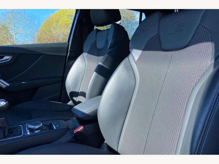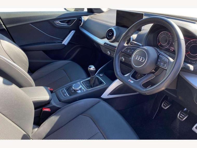 Audi connect navigation and infotainment includes innovative services, Audi connect remote and control connects your vehicle to your smartphone, Audi drive select: power steering assistance + engine (modes: comfort, auto, dynamic, efficiency, individual), Audi smartphone interface - Apple carplay/Android Auto, USB connect, 2xSDXC card readers, voice control for navi, telephone, music and 3rd party apps, Audi virtual cockpit, Automatic start/stop system with recuperation, Bluetooth interface includes bluetooth audio streaming, Cruise control, E-call, MMI navigation plus with MMI touch, Power operated tailgate, Progressive steering, Rear parking sensors, Sport suspension, 6 passive loudspeakers, DAB Digital radio, Audi beam, Auto dimming rear view mirror, Black window trims, Bumper in full body colour paint finish, Electrically adjustable, folding, auto dimming and heated door mirrors with integrated LED side indicators, Front windscreen with grey tinted sunband, LED daytime running lights, LED headlights with dipped beam, high beam, position lights, indicators, LED rear lights, LED third brake light, Privacy glass - dark tinted rear and rear side windows from B-pillar backwards, Rear side wing doors, Rear wiper, Variable front intermittent wipers, Wheel arch trims in manhattan grey, 12v socket in front, 3 seat bench in 2nd row, 3 spoke flat bottomed multi-function leather sport steering wheel, 4-way electric lumbar support for front seats including manual seat height adjustment for both front seats, 60/40 split folding rear seat bench, Black cloth headlining, Front and rear head restraints, Front centre armrest, Front sport seats, Front/rear floor mats, Height/reach adjust steering wheel, Illuminated door sill trims with S logo, ISOFIX child seat mounting in front passenger and rear outer seats, Manual air conditioning, Single front passenger seat, Stainless steel pedals, Tool kit, Black styling pack - Q2, 3x3 point rear seatbelts, 6 airbags - Front, curtain and front side airbags, Electromechanical parking brake, Electronic stabilisation control including ABS, ASR and EDL, Front passenger airbag deactivation, Hill hold assist, Pre-sense front with pedestrian recognition, Seatbelt monitoring, Tyre pressure warning light with visual and acoustic warning, Warning triangle and first aid kit, Anti theft alarm, Anti theft wheel bolts, Electronically operated child locks, Remote central door locking, Aluminium interior element, Matt brushed aluminium trim inlays,