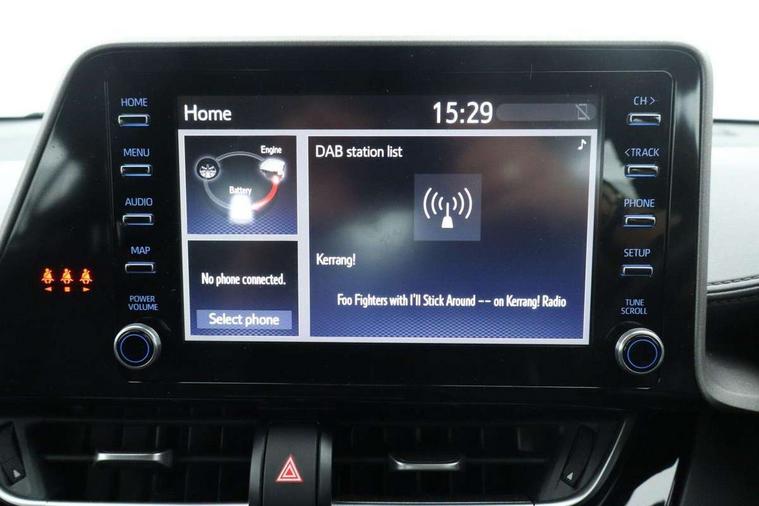 4.2" coloured TFT screen for multi-information display, Adaptive cruise control, Apple car play and Android auto, Bluetooth connectivity, E-call, Electric power steering, Hybrid system indicator, Lane departure alert with steering control, Lane trace assist, Push button start, Push button tailgate release, Remote boot door release in cabin, Remote boot door release in key, Reversing camera, Road sign assist - RSA, Smart voice assist, Trip computer, Voice recognition, Vehicle Stability Control (VSC), 6 speakers, AM/FM radio, DAB Radio (Digital Audio Broadcasting), Toyota touch 2 multimedia system with 8" display, USB connector, Wi-fi connectivity, Anti-jam protection on power windows, Auto high beam, Auto up and down function on all power windows, Automatic headlights, Automatic headlights cut-off, Black and body coloured rear bumper, Black lower front grille, Black upper front grille, Body colour door handles, Body colour door mirrors, Body colour front spoiler lip, Body coloured front bumper, Boot door release with push button, Electric heated door mirrors, Follow me home headlights, Front and rear power windows, Front fog lights, Headlight cut off reminder, Honeycomb lower front grille, LED daytime running lights, LED High mounted stop light, LED rear brake lights, LED rear combination lights, Manual headlight levelling, Manually retractable door mirrors, Noise reduction layer on front windows and windscreen, Power adjustable door mirrors, Rear side wing doors, Rear spoiler, Rear tailgate, Rear window defogger, Rear window wiper, Reflective LED headlights, Shark fin antenna, UV-filter on driver and passenger windows, UV-filter on rear windows, Variable front intermittent wipers, 12v power outlet - front, 3 rear headrests, 3 seat bench in 2nd row, 3 spoke leather steering wheel, 60/40 split folding 2nd row rear seats, Adjustable rear headrests, Adjustable speed limiter switch on steering wheel, Assist grips front and centre pillar, Audio and telephone switches on steering wheel, Black front door assist grips, Boot light, Chrome interior door handles, Cloth upholstery, Driver and front passenger personal light, Driver and front passenger Whiplash Injury Lessening seats, Dual zone automatic air conditioning, Floor mats, Front cupholders, Front head restraints, Front sports seats, Glovebox with internal light, Hard tonneau cover, Hooks for luggage holding net, Humidifying Nanoe air purifier, Illuminated entry system, Isofix attachments on outer rear seats, Leather gearshift, Light on driver sun visor, Light on passenger sun visor, Manual telescopic steering wheel, Manual tilt steering wheel, Manually adjustable lumbar support on driver seat, Manually height adjustable driver seat, Manually height adjustable front passenger seat, Manually reclining driver seat, Manually reclining front passenger seat, Manually sliding driver seat, Manually sliding front passenger seat, Microphone on front personal light, Mirror on driver sun visor, Mirror on passenger sun visor, Multimedia switches on steering wheel, Pollen filter, Shopping bag hooks, Single front passenger seat, Slow opening on lower glovebox, Voice recognition switch on steering wheel, 16 Disk front wheel brake, 3x3 point rear seatbelts, ABS+EBD+Brake assist, Electronic parking brake, Front and rear seatbelt reminder, Front passenger airbag on/off switch, Hill start assist control (HAC), Pre collision system with pedestrian detection, Pre-tensioners and force limiters, Rear door child safety locks, SRS Airbags - Driver + Front passenger, front side, front and rear curtain and driver's knee airbags, Toyota safety sense, Tyre pressure monitoring system, Tyre pressure warning system, Acoustic vehicle alert system (AVAS), Glass-breaking alarm sensors, Immobiliser, Intrusion alarm, Intrusion sensor, Motion sensor alarm, Power door locks, Power passenger window lock, Remote central locking, Black lower dashboard, Black upper dashboard, Grey deco line on upper dashboard, Matte black centre console, Tyre repair kit,