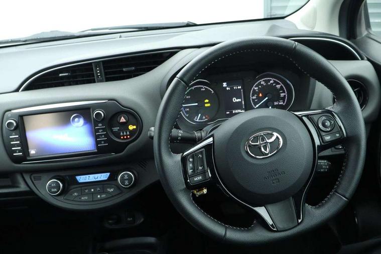 Bluetooth system, Cruise control, External temperature gauge, Fuel indicator with low level warning, Lane departure warning system, Lights on warning, Multi-information display, Power Steering, Push button starter, Rear parking sensor, Rear view camera, Road sign assist - RSA, TFT display screen, Touch 2 Go navigation system, Trip computer, 6 speakers, Auxiliary input socket, DAB Digital radio, Steering wheel mounted audio/telephone controls, Touch 2 touchscreen Radio with iPod connectivity, USB connection, 2 speed front wipers + intermittent wipe, Auto high beam, Auto up and down function on drivers window, Body colour bumpers, Body colour door handles, Body coloured door mirrors, Chrome fog light surround, Daytime running lights, Door mirror integrated indicators, Drivers window one touch up/down, Electric adjustable heated door mirrors, Electric front windows, Follow me home headlights, Front fog lights, Green tinted glass, Heated rear windscreen, Projector headlamps, Rain sensitive windscreen wipers, Rear wiper, Turning signal integrated indicators in door mirrors, 3 spoke leather steering wheel, 60/40 split folding rear seat, Active headrests, Boot light, Cloth upholstery, Driver seat height adjust, Driver/passenger vanity mirrors with covers, Dual zone automatic climate control, Front cupholders x 2, Front map reading lights, Front seats with lumbar support, Glovebox, Height adjustable front head restraints, Height adjustable rear seat head restraints (x3), Isofix system on outer rear seats, Leather gear knob, Leather parking brake handle, Rear cupholder, Removable rear parcel shelf, Sliding front seats, Tilt/telescopic steering column, 3 point seatbelts on all rear seats, ABS+EBD+Brake assist, Collision mitigation braking system, Curtain airbags, Driver and passenger airbags, Drivers knee airbag, Emergency brake light system (EBS), Front passenger airbag on/off switch, Front seatbelt reminder, Front side airbags, Height adjustable front seatbelts with pre-tensioners and load limiters, Hill start assist control (HAC), Passenger airbag deactivate switch, Rear child proof door locks, Rear seat belt reminder, Road sign information display, Seatbelt warning lamp and buzzer, Toyota safety sense including Road sign assist, Pre collision system, auto high beam and lane departure alert), Tyre pressure monitoring system, Vehicle stability control VSC + traction control, Engine immobiliser, Remote central locking, Instrument panel in grey, Space saver spare wheel,