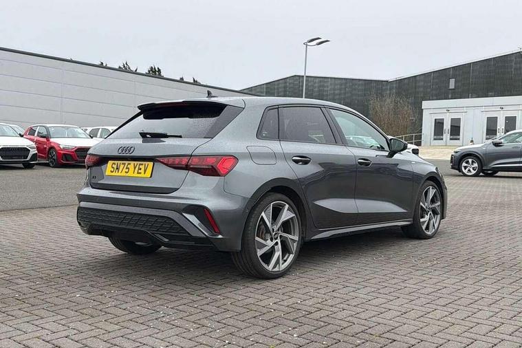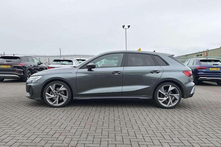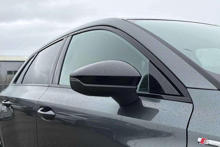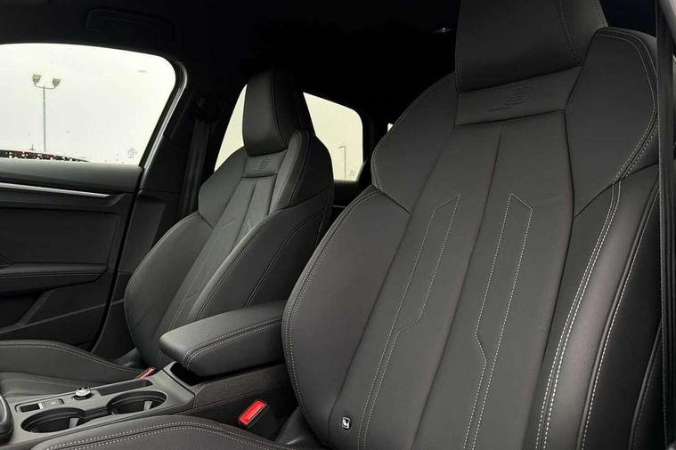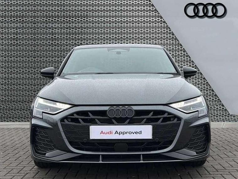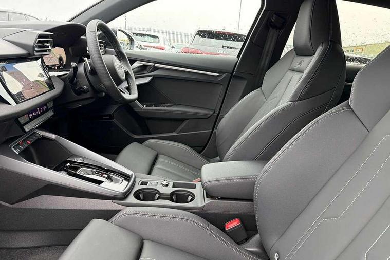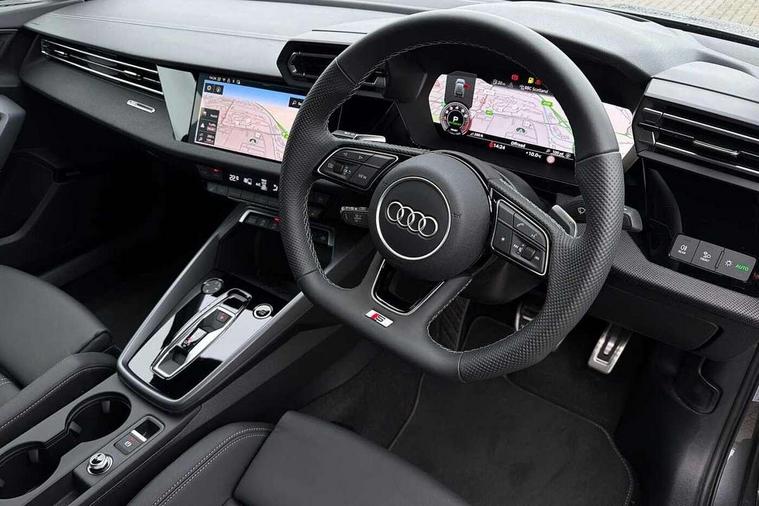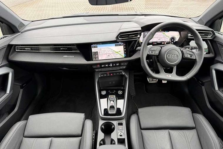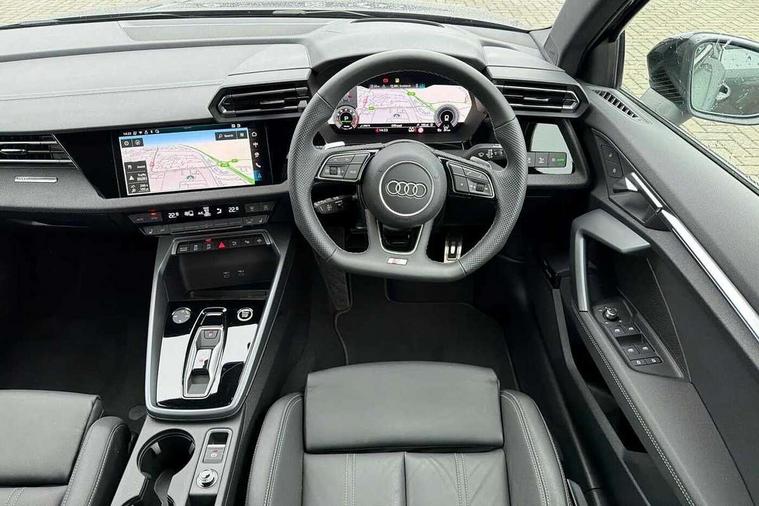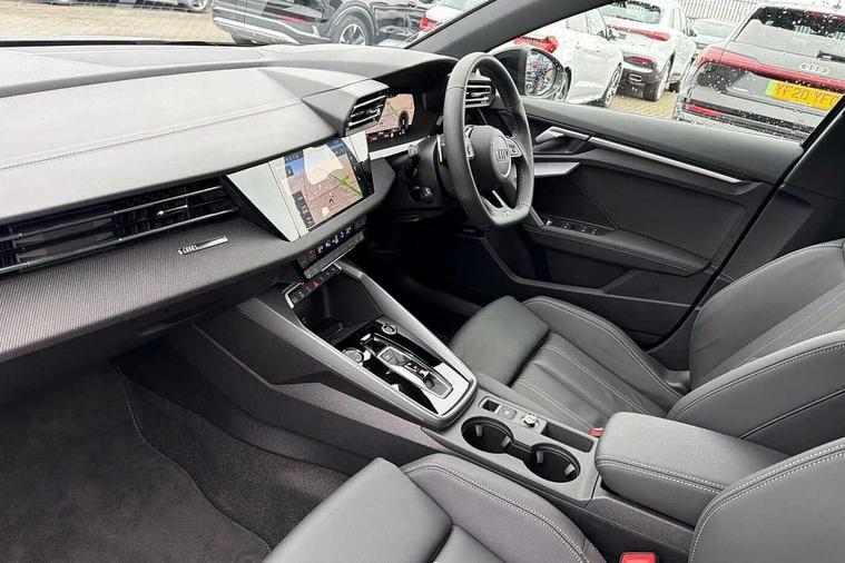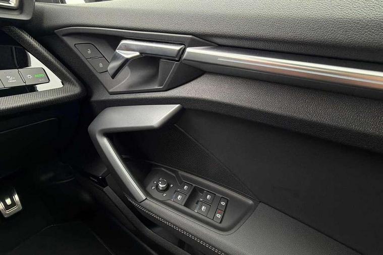 Adaptive cruise control (ACC), Adjustable speed limiter, Audi drive select (Auto, Comfort, Dynamic, Efficiency and Individual), Audi virtual cockpit plus - 12.3" full HD resolution dynamic digital instrument cluster, Automatic start/stop system with recuperation, Bluetooth interface, Camera based traffic sign recognition, Collision avoidance assistant, Driver attention and fatigue detection, e-Call (emergency call), Electromechanical power speed sensitive steering, Emergency assist, Intersection assist, Lane departure warning system, MMI Navigation Plus with high resolution 10.1" colour touch screen display, Park Assist with parking system Plus, Reversing camera, Service indicator, Smartphone interface with app store includes wireless Apple carplay, Android auto and Amazon alexa integration, Trip computer, Voice control system with natural language interaction, Sports suspension, Audi Phonebox light with wireless charging, Audi sound system - 10 loudspeakers including centre loudspeaker and subwoofer, DAB Digital radio, USB ports with charging function in the rear, Acoustic glass windscreen, All weather light, Anthracite grey Audi rings (front and rear), Audi beam uses LEDs to project the Audi logo onto the ground as you exit your A3, Auto dimming frameless rear view mirror, Automatic dynamic range control, Black accents front and rear bumpers, Black accents in the area of the Audi single frame grille, Black accents window trims strips, Dipped beam, main beam, position light and turning light, Electrically adjustable/heated/folding/auto dimming door mirrors with integrated LED indications + kerb view function for passenger side, Exterior model badging, Front and rear side air inlets in grained matt black with dark liquid chrome frame, Front electric windows, Front radiator grill in high gloss dark chrome, Heat insulating glass windscreen, Illuminated door sills with aluminium inserts at the front with S logo, Intersection light, LED 3rd brake light, LED brake lights, LED daytime running x3, LED headlights with LED rear lights and dynamic rear indicators, LED rear number plate lights, LED reverse light, LED tail lights, Light and rain sensors, Manoeuvring light, Motorway light, Privacy glass - dark tinted rear window, rear door and side windows, Rear diffuser and grill in grained matt black with inlay in dark liquid chrome, Rear electric windows, Rear side wing doors, Rear wiper, S roof spoiler, Side sill trim in dark liquid chrome, Static cornering light, 12V socket and storage compartment in front centre console, 3 seat bench in 2nd row, 3 spoke flat bottomed leather multifunction sport steering wheel with gear shift paddles, 3-zone deluxe automatic air conditioning, 4 way electrically adjustable lumbar support for driver and front passenger, 40/20/40 split folding rear seat bench, Black cloth headlining, Black front and rear floor mats, Front and rear centre armrest in artificial leather with contrasting stitching on armrests and instrument panel, Front and rear headrests, Heated front seats, Height and reach adjustable steering wheel, i-Size child seat mounting on the front passenger side and outer rear seats, i-Size and top tether on the outer rear seats, Manual boot compartment lid, Manually adjustable front seats, Rear centre armrest with cupholder, S badging on the steering wheel, Seat side bolsters, Single front passenger seat, Stainless steel pedals and front footrest in black, Twin leather upholstery with front sports seats S embossed logo, Aluminium interior elements pack - A3, 3x3 point rear seat belts, Driver and front passenger airbag with passenger airbag deactivation, Electronic Stabilisation Control (ESC) including ABS, ASR and EDL, First aid kit with warning triangle and 2 safety vests, Front side airbags with head airbags and interaction airbag, Hill hold assist, Pre-sense front with pedestrian and cyclist detection, Seatbelt monitoring, Tyre pressure loss indicator, Anti theft alarm, Anti-theft wheel bolts, Electronically operated child locks, Immobiliser, Black dashboard,