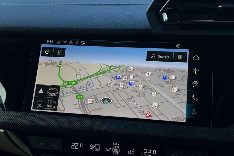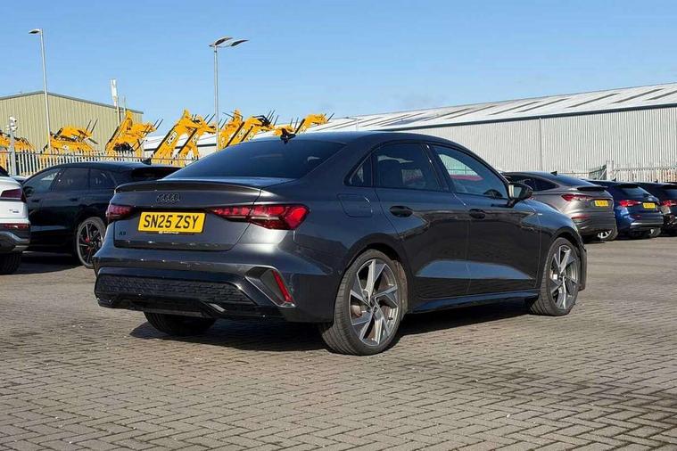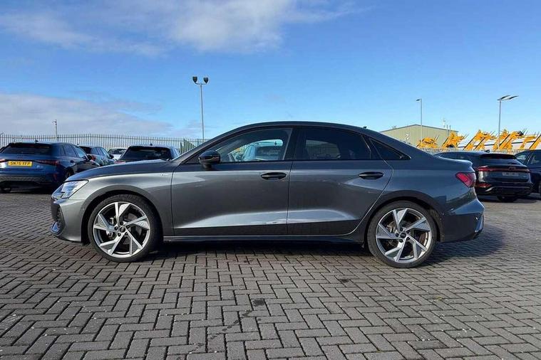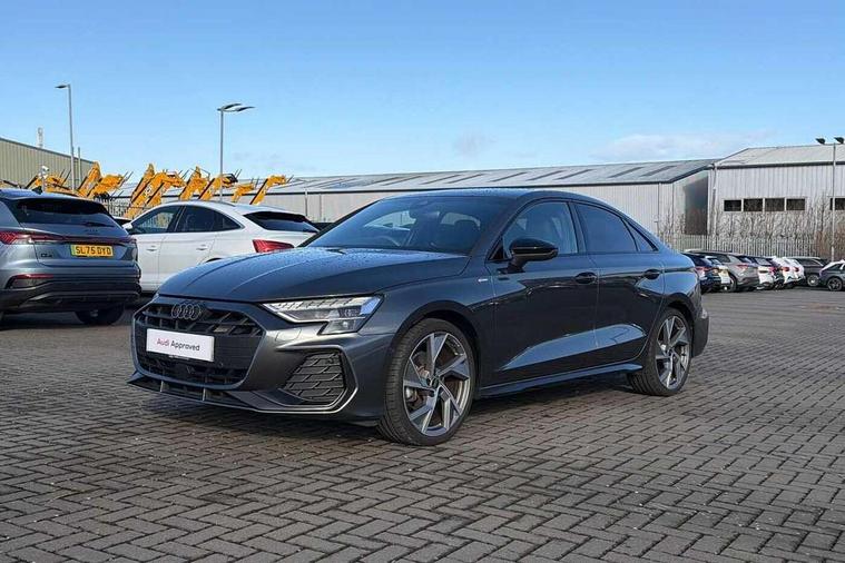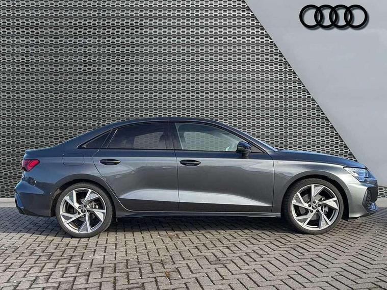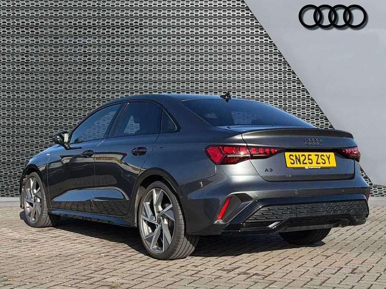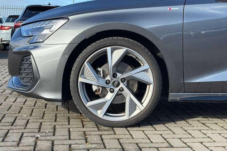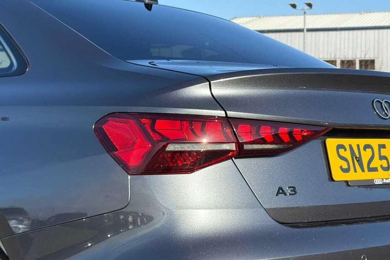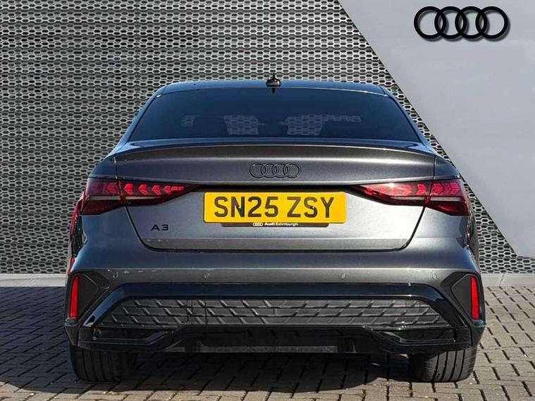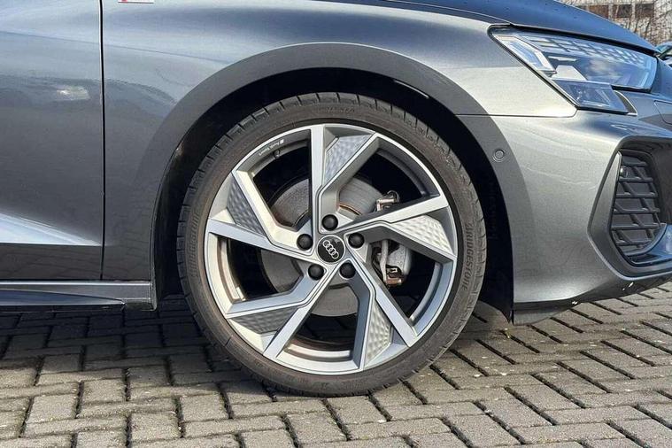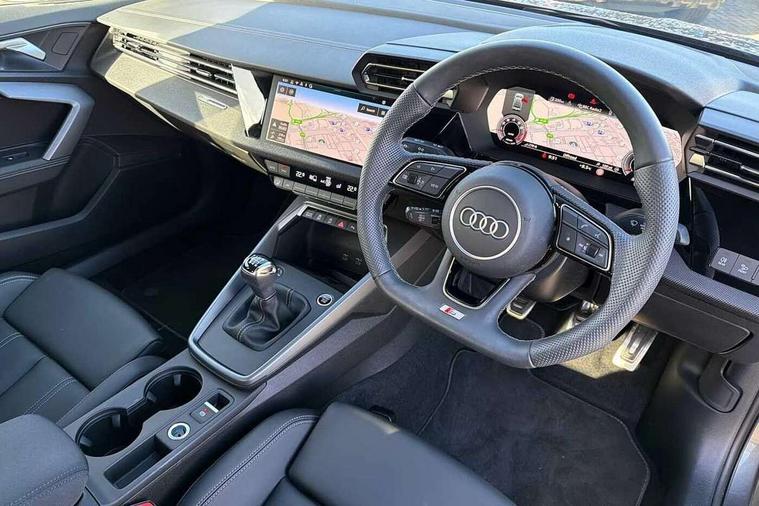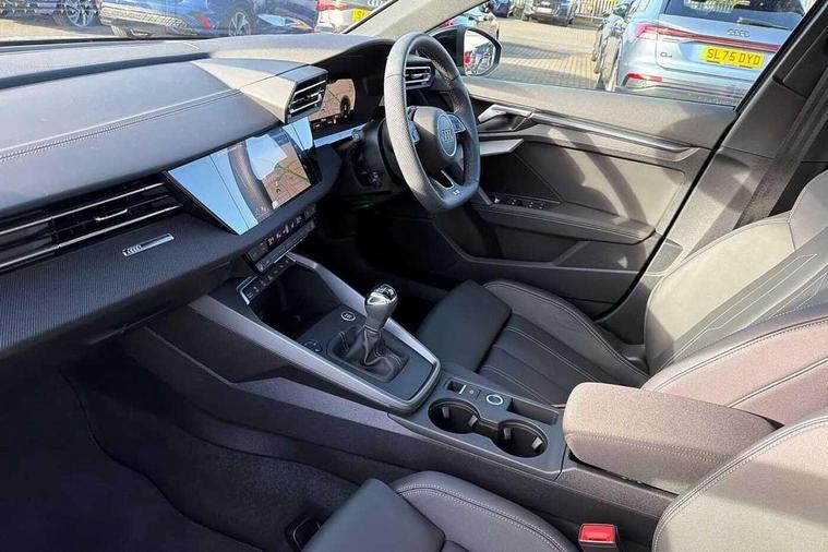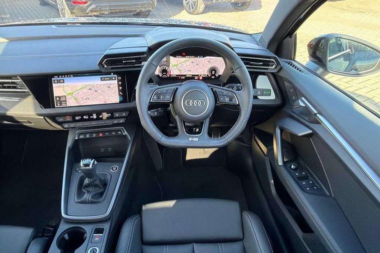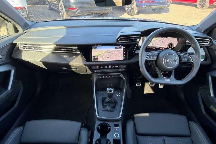 Adjustable speed limiter, Audi drive select, Audi smartphone interface with app store includes wireless Apple carplay, Android auto and Amazon alexa integration, Audi virtual cockpit plus - 12.3" full HD resolution dynamic digital instrument cluster, Automatic start/stop system with recuperation, Bluetooth interface, Camera based traffic sign recognition, Collision avoidance assistant, Cruise control, Distraction and Fatigue warning, e-Call (emergency call), Electromechanical power speed sensitive steering, Lane departure warning system, MMI Navigation Plus with high resolution 10.1" colour touch screen display, Park Assist with parking system Plus, Service indicator, Trip computer, Voice control system with natural language interaction, Sports suspension, Audi Phonebox light with wireless charging, Audi sound system - 10 loudspeakers including centre loudspeaker and subwoofer, DAB Digital radio, USB ports with charging function in the rear, Acoustic glass windscreen, Anthracite grey Audi rings (front and rear), Audi beam uses LEDs to project the Audi logo onto the ground as you exit your A3, Auto dimming frameless rear view mirror, Black accents front and rear bumpers, Black accents in the area of the Audi single frame grille, Black accents window trims strips, Electrically adjustable/heated/folding/auto dimming door mirrors with integrated LED indications + kerb view function for passenger side, Exterior model badging, Front electric windows, Heat insulating glass windscreen, Illuminated door sills with aluminium inserts at the front with S logo, LED 3rd brake light, LED daytime running lights, LED headlights with LED rear lights and dynamic rear indicators, Light and rain sensors, Privacy glass - dark tinted rear window, rear door and side windows, Rear boot, Rear electric windows, Rear side wing doors, 12V socket and storage compartment in front centre console, 3 seat bench in 2nd row, 3 spoke flat bottomed multi-function leather sport steering wheel, 3-zone deluxe automatic air conditioning, 4 way electrically adjustable lumbar support for driver and front passenger, 40/20/40 split folding rear seat bench, Black cloth headlining, Front and rear centre armrest in artificial leather, Front and rear centre armrest in artificial leather with contrasting stitching on armrests and instrument panel, Front and rear headrests, Front/rear floor mats, Heated front seats, Height and reach adjustable steering wheel, Manual boot compartment lid, Manually adjustable front seats, Rear cup holders, S badging on the steering wheel, Seat side bolsters, Single front passenger seat, Stainless steel pedals and front footrest in black, Twin leather upholstery with front sports seats S embossed logo, Aluminium interior elements pack - A3, Multi-coloured LED interior lighting package - A3 Black Edition, 3x3 point rear seat belts, Driver and front passenger airbag with passenger airbag deactivation, Electronic Stabilisation Control (ESC) including ABS, ASR and EDL, First aid kit with warning triangle and 2 safety vests, Front side airbags with head airbags and interaction airbag, Hill hold assist, Pre-sense front with pedestrian and cyclist detection, Seatbelt monitoring, Tyre pressure loss indicator, Anti theft alarm, Anti-theft wheel bolts, Electronically operated child locks, Immobiliser, Remote central locking with safelock, Inlays in black Impressum woven textile,