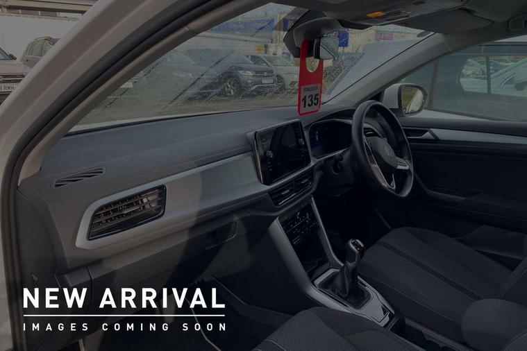 Bluetooth mobile phone interface, Driver alert system with fatigue detection, Driver tips and journey analysis, Emergency call service, Lane keeping system Lane Assist, Modified key software - reduce switch off time for key status change to Long no motion, Online services, Park assist including front and rear parking sensors, Power assisted speed sensitive steering, Service interval indicator, Tailgate/trunk lid release from outside, Think blue trainer driver tips and journey analysis, Warning sound and light for front seatbelts unfastened, Wireless app connect, Battery regeneration during braking, Front shock absorption, Rear shock absorption chassis with increased ride height, Start/stop function with battery regeneration, DAB Digital radio, Diversity antenna for FM reception, Front and rear 6 speakers, Music playback - MP3, WMA and AAC files, Premium USB cable in choice of either Apple or Android smartphone compatibility, SD card slot, Simultaneous pairing of 2 compatible mobile devices, Title and cover art display, We Connect and We Connect Plus functionality, 3rd brake light, Auto dimming interior rear view mirror, Automatic hazard lights activation under emergency braking, Automatic headlight control with LED separate daytime running lights with coming/leaving home function, Black roof rails, Body coloured bumpers and radiator grille with chrome trim and front fog lamps with chrome bezel, Body coloured exterior mirror housings and door handles, Extended roof spoiler, Exterior mirrors aspherical on driver side, convex on front passenger side, External USB type C socket and charging sockets, Front windscreen wiper with intermittent wipe and 4 position delay, Heated rear window, LED Headlights, LED rear combination lamps, LED rear number plate lights, LED tail lamp rear comination lamps, Power windows with comfort operation and circuit breaker, Rain sensor, Rear exhaust tailpipe, Rear fog light on one side and reversing lights on both sides, Rear side wing doors, Rear wash/wipe with intermittent wipe setting, Remote electrically foldable door mirrors, puddle lights and reverse activated passenger's door mirror, 12V power socket in centre console, 3 rear head restraints, 3 seat bench in 2nd row, 4 load lashing points in luggage compartment, Air care climatronic air conditoning system with active combination filter and 2-zone temperature control, Ambient lighting with mirror logo projection, Cloth upholstery, Door and side trim panel in cloth, Drawer under drivers seat, Driver/front passenger seat height adjustment, Front centre armrest, Front comfort sports seats, Front cupholders x 2, Front reading light, Instrument lighting, white adjustable panel illumination, Interior light delay, Isofix child seat preparation, Leather gearshift handle, Load-through provision with cup holder when folded down ('Unsplit rear seat bench, split folding backrest, with centre armrest), Luggage compartment lighting, Lumbar support for driver's and front passengers seat, Non-folding front passenger seat backrest, Single front passenger seat, Storage compartment in left and right luggage area, Storage compartment in rear doors, Storage compartments in driver and front passenger doors, Sunvisors with illuminated vanity mirrors, Variable boot floor, height adjustable and removable, Driver assistance pack without proactive passenger protection - T-Roc, 3 point height adj front seatbelts + pretensioners, 3 point seatbelts in outer rear with ECE label, ABS, Child locks on rear doors, Driver and front passenger airbag with front passenger airbag deactivation, Driver and front passenger safety-optimised head restraints, Drivers seatbelt reminder, Electronic parking brake, Electronic Stability Control (ESC) inc EDL (Electronic Differential Lock) and ASR (Traction Control), Front and rear passengers curtain airbag system including front side airbags, Front assist with city emergency braking and pedestrian monitoring, Front disc brakes, Front seat side impact airbags, Hill start assist, Predictive pedestrian protection, Rear disc brakes, Single tone horn, Tyre pressure loss indicator, Volkswagen roadside assistance, Alarm with interior protection, Anti-theft alarm system with interior monitoring, backup horn, and towing protection, Remote central locking with SAFELOCK, radio remote control with 2 remote control folding keys, Pewter matt decorative inserts for intrument panel, centre console and door panels at the front, Trims for alloy wheels,