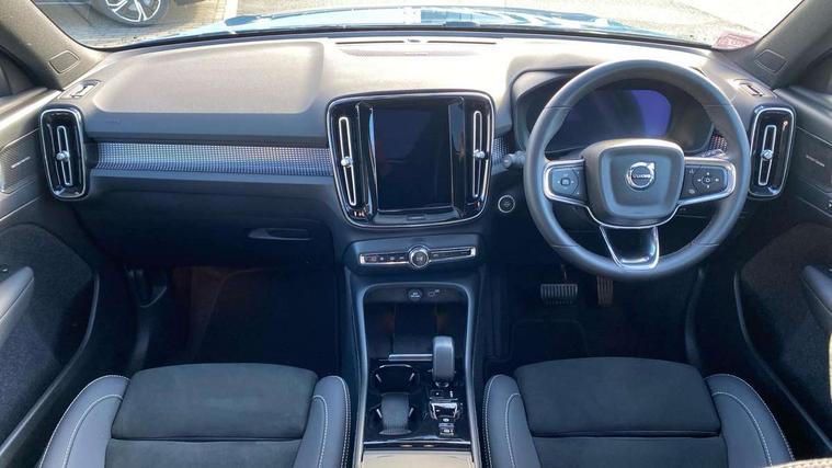 12.3" Progressive Driver Display, 360 degree surround view parking camera with side proximity sensors, 9" centre console portrait touch screen, Adjustable steering wheel force, Bluetooth hands free telephone kit, E-call, Front park assist, Google automatic services - Nav with google maps, apple carplay/android auto, voice recognition with google assistant, Hands free power tailgate, Lane keep assist with driver alert control, Oncoming Lane Mitigation, Rear park assist, Speed limiter, Speed sensitive steering, Wireless/Inductive Mobile Phone Charging, Dynamic chassis, DAB Digital radio, Premium Sound by Harman Kardon, Dolby Pro Logic II Surround Sound, Dirac Unison, 12 speakers/600W and subwoofer, Steering wheel mounted remote controls, Active bending pixel LED headlights with adaptive shadow technology, Active high beam incorporating daytime running lights, Adaptive brake lights with high level LED brake lights, Auto dimming interior mirror, Automatic headlamp levelling, Dark tinted windows for rear door side windows and cargo compartment, Front aluminium tread plates, Front and rear electric windows, Headlight cleaning system, High gloss black front and rear skid plate, High gloss black mesh front grille with high gloss black surround, High gloss black window trim, Home safe and approach lighting, Integrated roof rails in high gloss black, LED front fog lights, Power glass tilt and slide panoramic sunroof with sun curtain, Puddle lights, Rain sensor with automatic windscreen wiper activation, Rear side wing doors, Rear wiper, Roof antenna, Roof spoiler, Visible VIN plate, 12V socket in front tunnel console and luggage compartment, 2-Zone electronic climate control with CleanZone air quality system and pollen filter, 3 seat bench in 2nd row, 3 Spoke tailored steering wheel with chrome trim, 60/40 versatile split folding rear seat, A-pillar parking ticket holder, Ambient front door and instrumental panel lighting, Centre console cupholders and storage, Flexible load floor and grocery bag holder, Floor mats, Front door pocket and front cupholder illumination, Front footwell illumination, Front headrests, Front reading light and theatre lighting, Front seat cushion extensions, Front tunnel pocket, Glovebox bag hook, Heated front seats, Height adjustable passenger seat, Height/reach adjustable steering column, High gloss centre tunnel deco, Illuminated glovebox, Illuminated luggage compartment, Illuminated tailgate, Illuminated vanity mirrors, Integrated waste bin, Isofix attachments on outer rear seats, Load protection net, Multi directional lumbar support, Power driver seat with memory + exterior mirrors memory, Power folding rear headrests, Power passenger seat, Rear armrest / integral cup holders / storage tray, Rear reading and courtesy lights, Single front passenger seat, Underfloor cargo storage, Climate pack without heated front seats - XC40, Driver assist pack - XC40, 3x3 point rear seatbelts, City safety with steering support with Pedestrian + cyclist + front collision warning with full auto brake and rear auto brake, Drivers knee airbag, Dual stage driver/passenger airbags, Electronic parking brake with auto hold, First aid kit, Front and outer rear seatbelt reminder and pretensioners, Front seats SIPS airbags, Hill descent control, Hill start assist, Inflatable curtain, Passenger airbag cut-off device, Power child locks on rear doors, Road sign information display, Run off Road Mitigation, Run off Road Protection, SIPS (Side Impact Protection System), Slippery road and hazard light alert, Stability and Traction Control with Spin control, Engine Drag Control and Corner Traction Control, Tyre pressure monitoring system, Vehicle deceleration control with Anti-lock Brake System, Electronic Brake Distribution and Emergency Brake Assist, Warning triangle, WHIPS whiplash protection system - front, Anti-theft alarm including immobiliser/volume sensor + level sensor, Key integrated remote control central locking + fuel flap with deadlocking system and auto open/close power windows, Keyless drive includes keyless entry and keyless start, Locking wheel nuts,